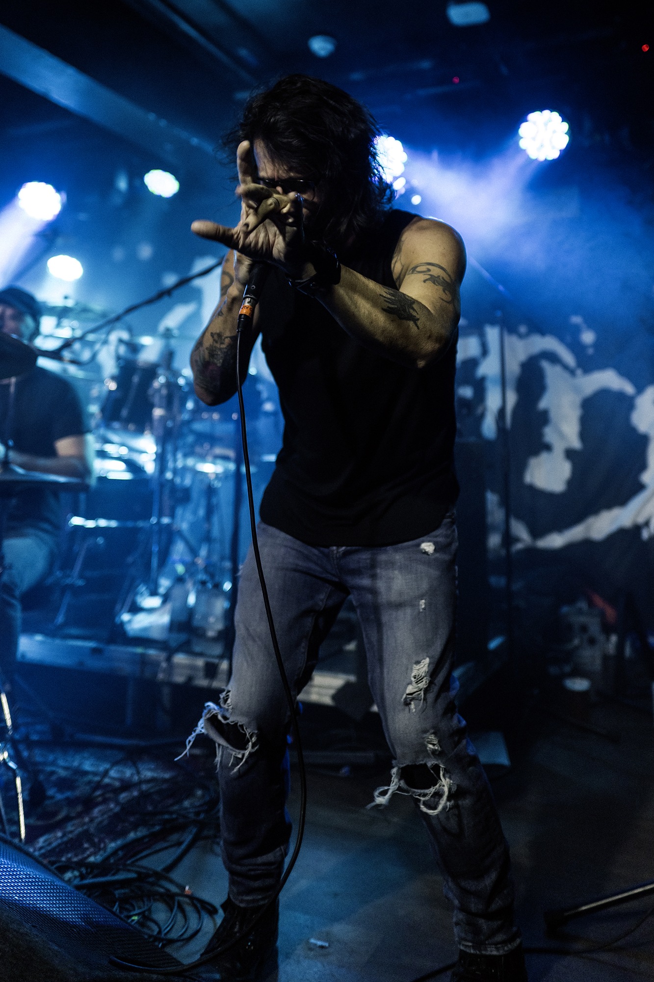 Next up is RUBIKON and they’re everything you’d expect from the US hard rock scene. Vocalist Jae Sims starts their set by walking onto the stage, taking off his shoes and diving headfirst into their opening song, The Gun. RUBIKON proceeded to unleash a relentless barrage of tunes, each one packed with infectious bass riffs that have since found a spot on our “tasty bass riffs” playlist. After 22 years on and off of being a band, the gratitude for finally hitting the UK shores was clear as day. Travelling across the pond from Boston, Massachusetts the five-piece served up a hefty dose of big bouncy guitar riffs, with groovy beats. Or, as Sims eloquently put it “funky grooves to fuck to”. Adding an extra layer of excitement to their performance, Sims chucks free t-shirts into the crowd, encouraging people to head over to merch for a chat and more free t-shirts. With a resume that includes sharing stages with heavyweights like DISTURBED and SHINEDOWN, it’s no surprise that RUBIKON know how to deliver the goods, despite the limited stage space available to them at the Club Academy. A powerful and punchy start to the evening.