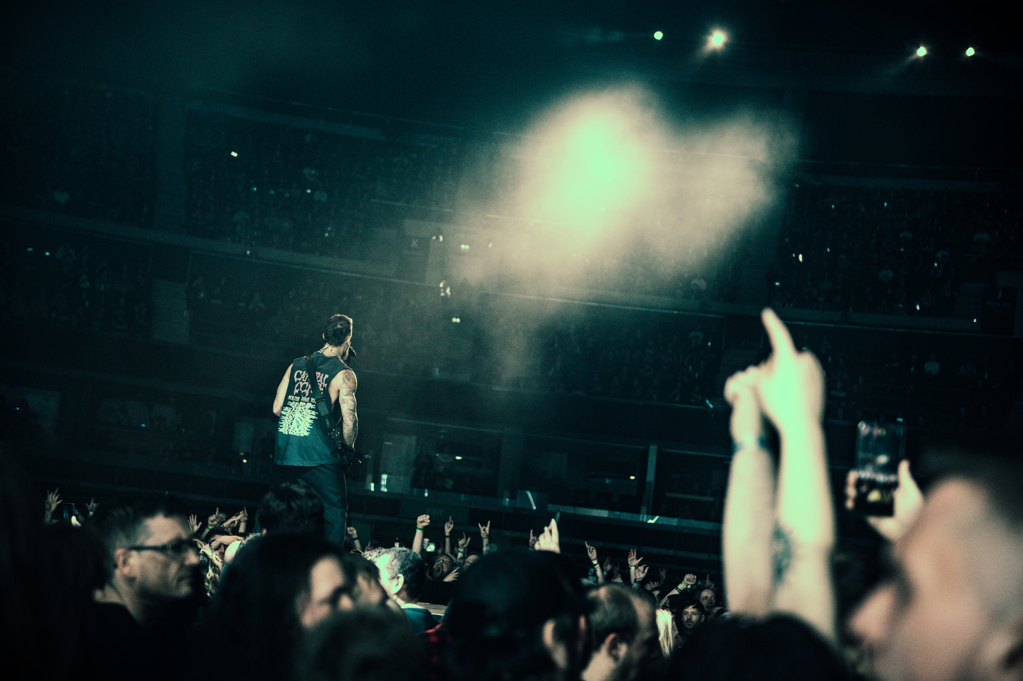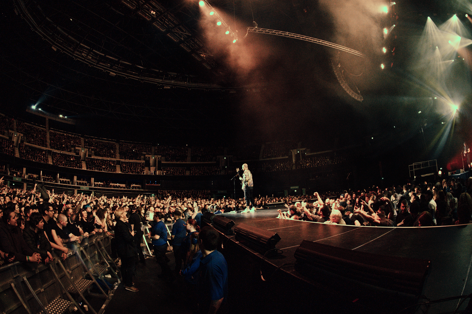 The division between both bands in 2005 is noticeable still: BULLET’s set is an ode to emotional adolescence, while TRIVIUM’s worships the canon of thrash and Swedish melodic death metal. TRIVIUM don’t have a Tears Don’t Fall, despite the respite of Dying In Your Arms, so it’s the chaos of late-record songs like The Deceived that elevate their set. In Scotland’s biggest arena, it sets multiple circle pits in motion and gets crowd surfers over the barrier again and again, while Heafy stands like a tattooed Spartan encouraging the melee.