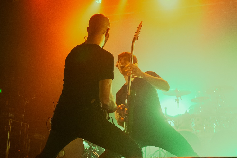 With less than a week’s notice before NOVELISTS accepted this monster of a tour they brought their A game for tonight despite the curveball thrown their way with vocalist Tobias Rische unable to make the UK leg of the tour. However, the band defeated the odds with SHIELDS‘ Sam Kubrick stepping in for what is undoubtedly the most exciting step in their career. The moment they stepped foot on stage they brought the energy to match those djent fused guitar riffs of Terrorist and Heretic that will demolish your braincells in those moshpits whilst Lost Cause has a melancholic ambience that draws you into the chaos with their intense breakdown with Kubrick’s vocals matching the intensity and smooth tones throughout the set. The star of the show is Florestan Durand’s whose solos are a breath of fresh air; they’re chaotic and emotional, capturing the essence of each song. As their set draws to a close it leaves us aching and longing for more; a bittersweet love letter before the storm erupts.
