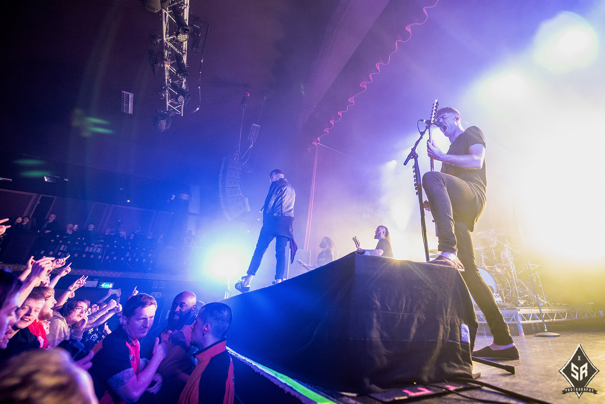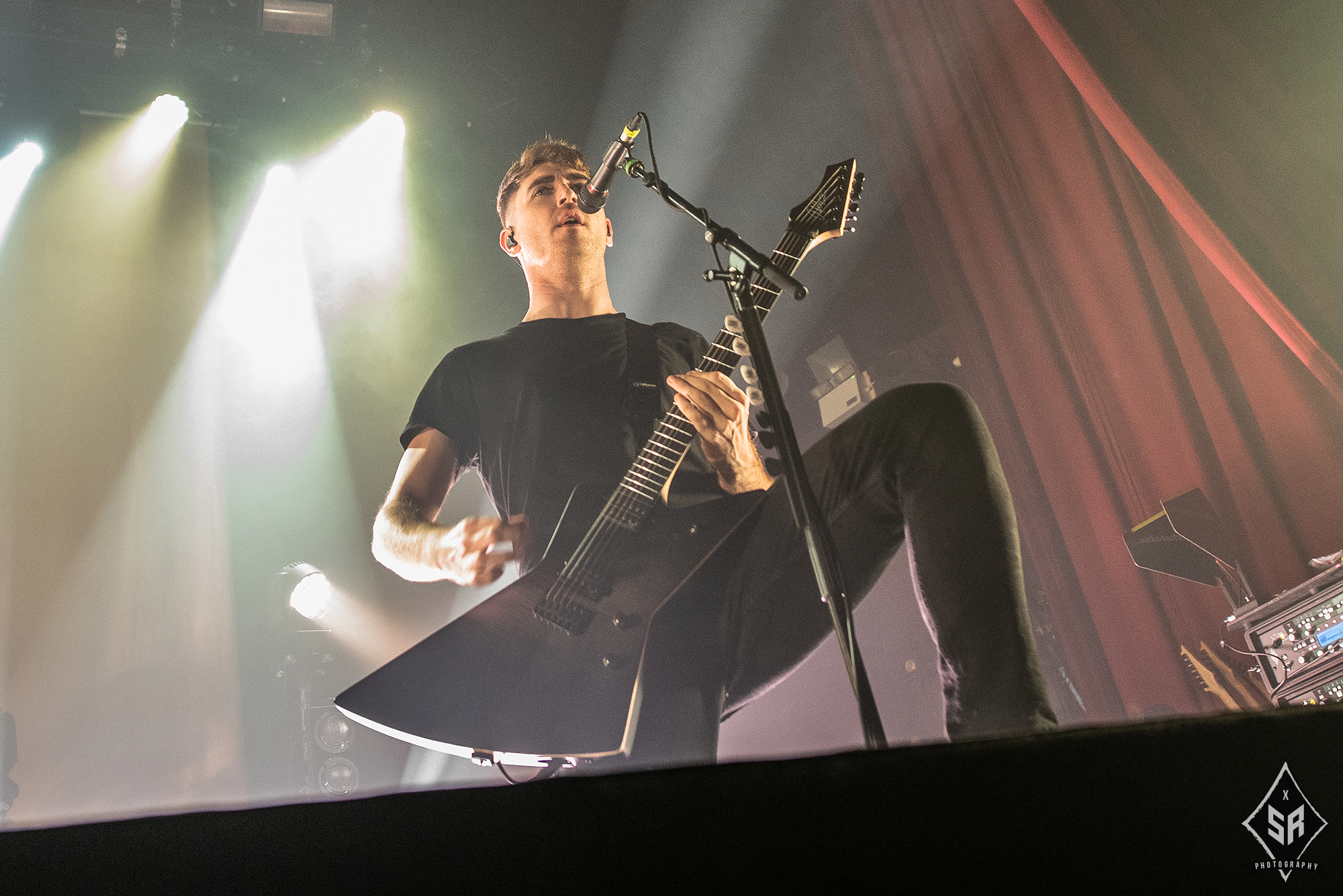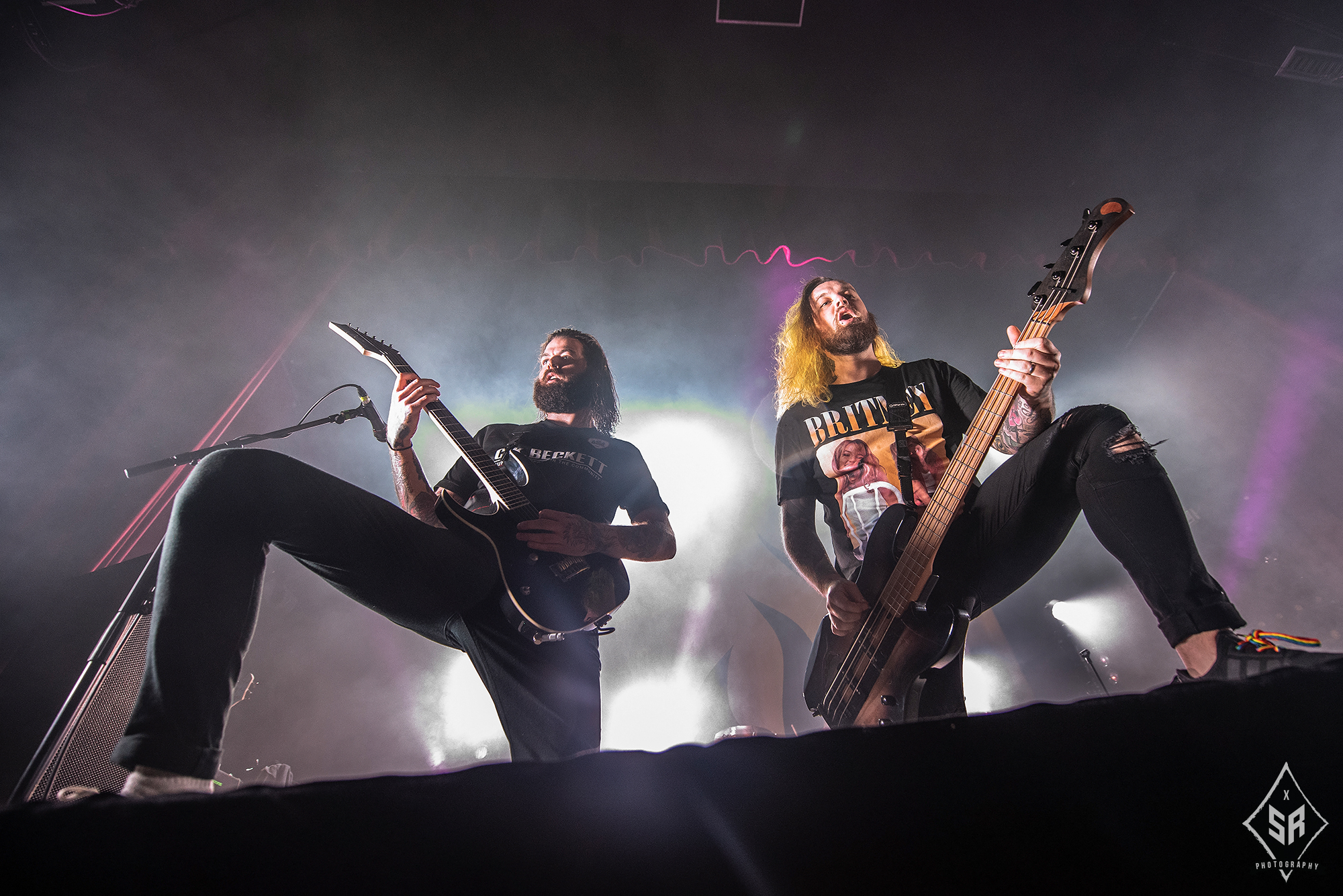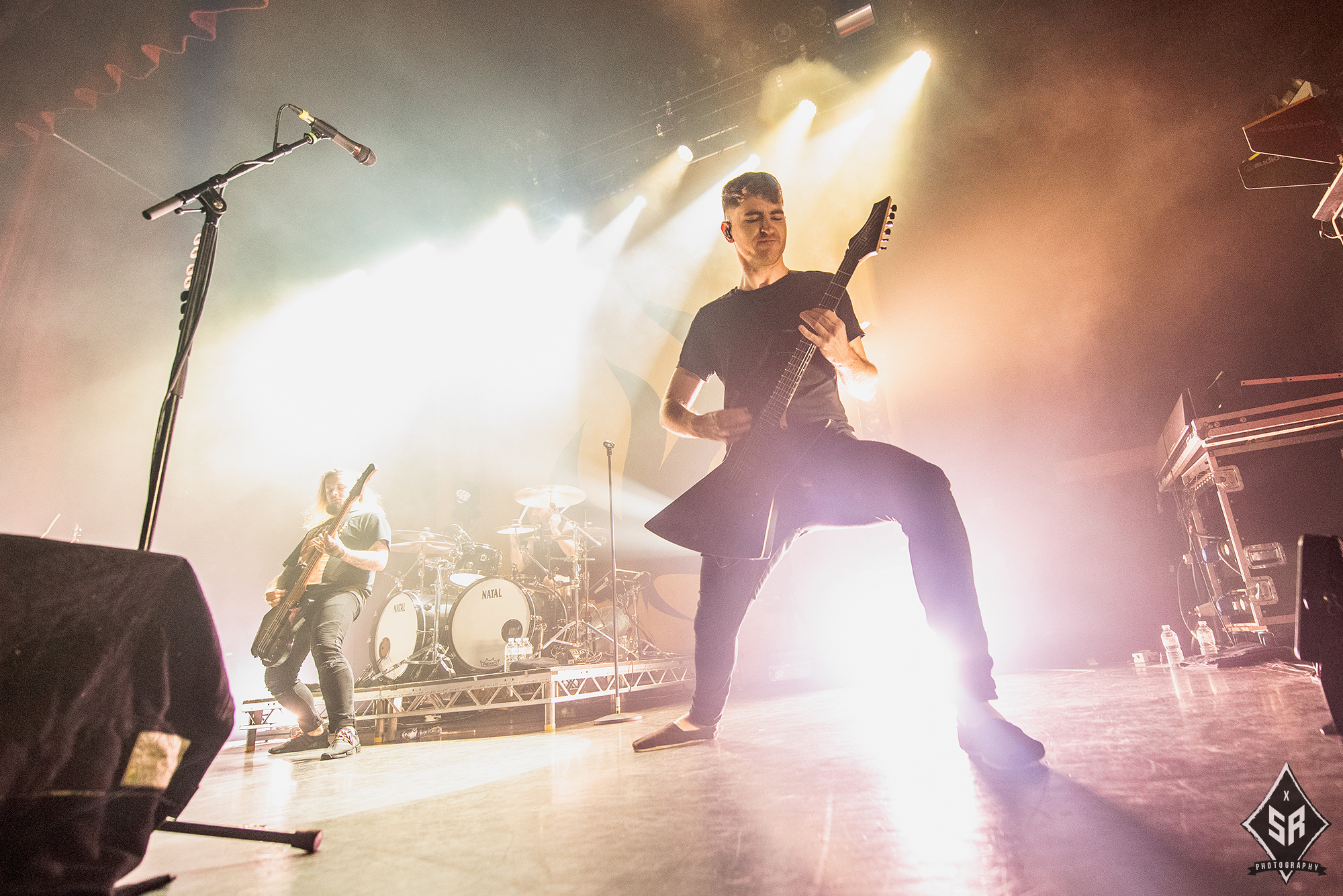 The screamed vocals of frontman Dani Winter-Bates were offset brilliantly by the clean chorus sections sang by guitarist Jason Cameron and this perfect back-and-forth created a unity which is unrivalled by most of their contemporaries. Passing the vocal duties between the two of them, each with their distinct vocal styles, gave the performance an edge which should be commended at every opportunity – this band is a close-knit unit, with each member standing at the forefront of their own respective fields. After the opening track, the band jumped right into some of their older material from the albums Earthbound and The Union of Crowns. By this time, the room was a sea of smiling faces singing along to some of their oldest and most cherished songs. At points it felt like the floor was going to give way from the weight of the capacity crowd jumping in unison, from wall-to-wall and front-to-back.
