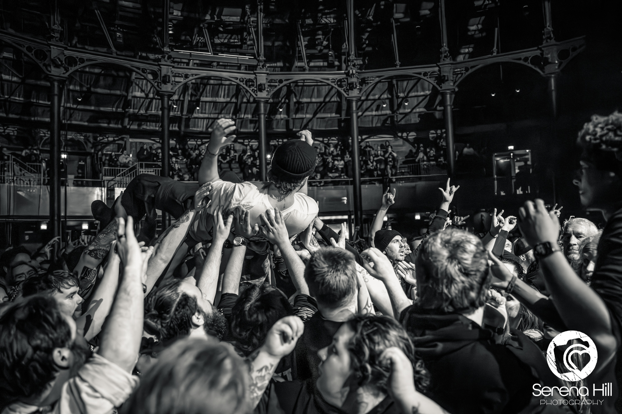 With The Roundhouse quickly filling, the 20 minute wait between bands flies by. In what feels like no time at all, THORNHILL stride on stage and launch into a viscous rendition of The Hellfire Club. Donning a hoodie, vocalist Jacob Charlton takes charge, ripping through Arkangel and Raw as if the rent’s due. THORNHILL are a well oiled machine at this point, brilliant at extracting what they want from an audience. They feed on the energy of smaller circle pits and pockets of bobbing heads. Ethan McCann’s riff work is simply sublime. THORNHILL work with a precision which demands attention and commands it in convincing fashion. While they run the risk of being sandwiched in the middle of this stacked bill, this was certainly a set that was not to be missed.