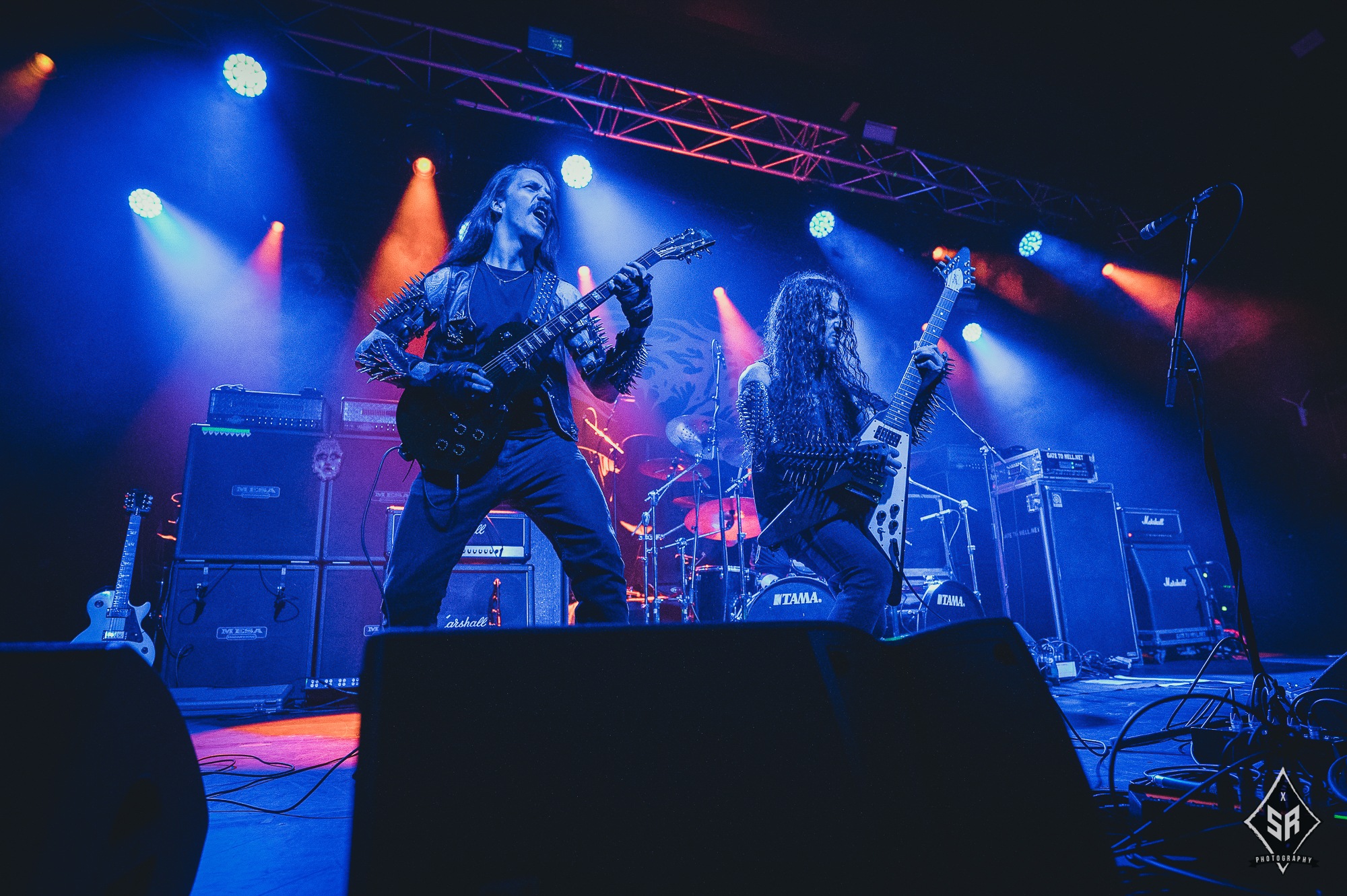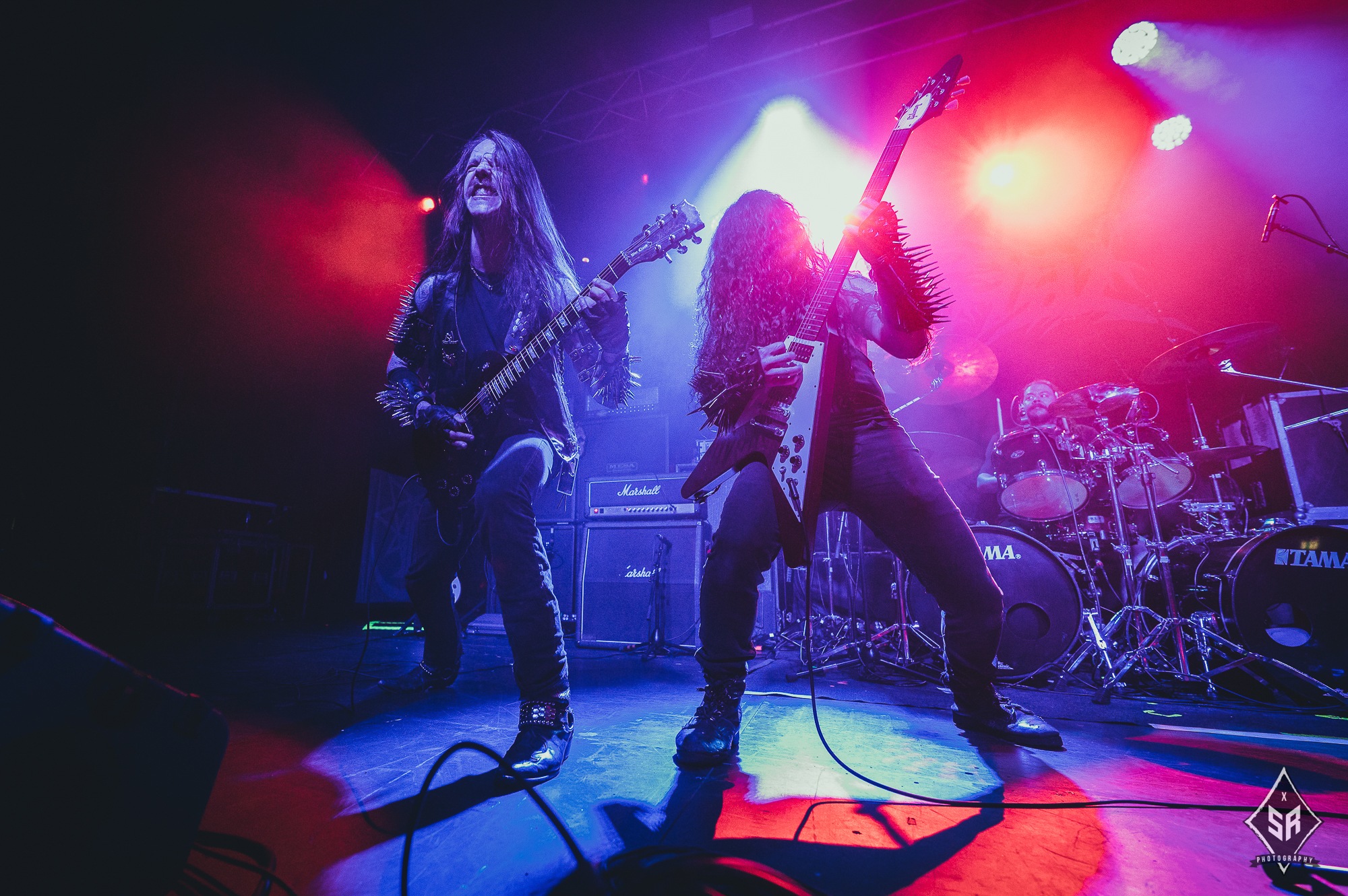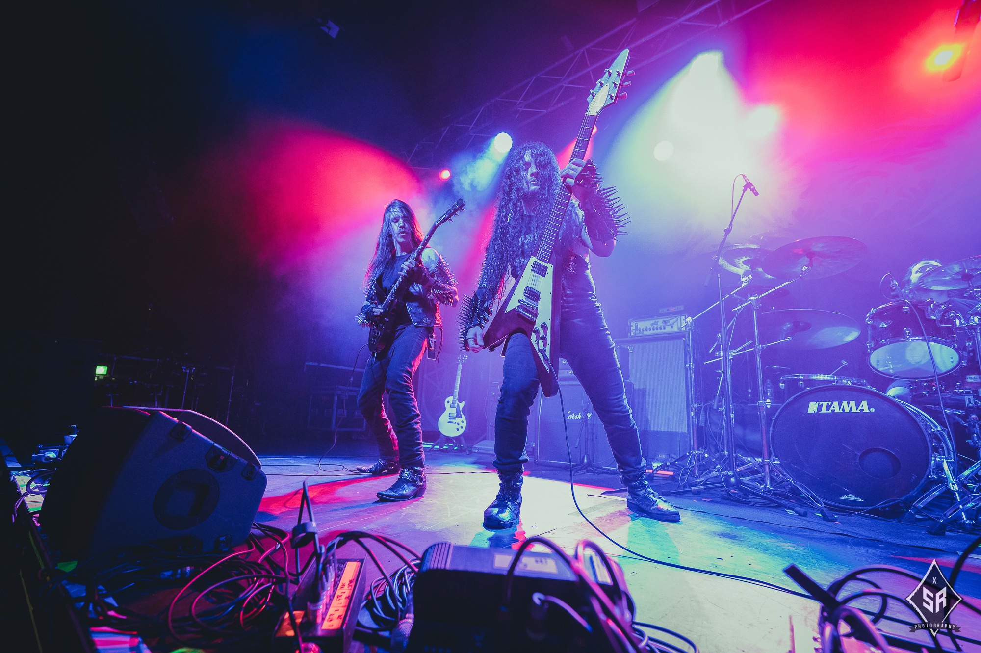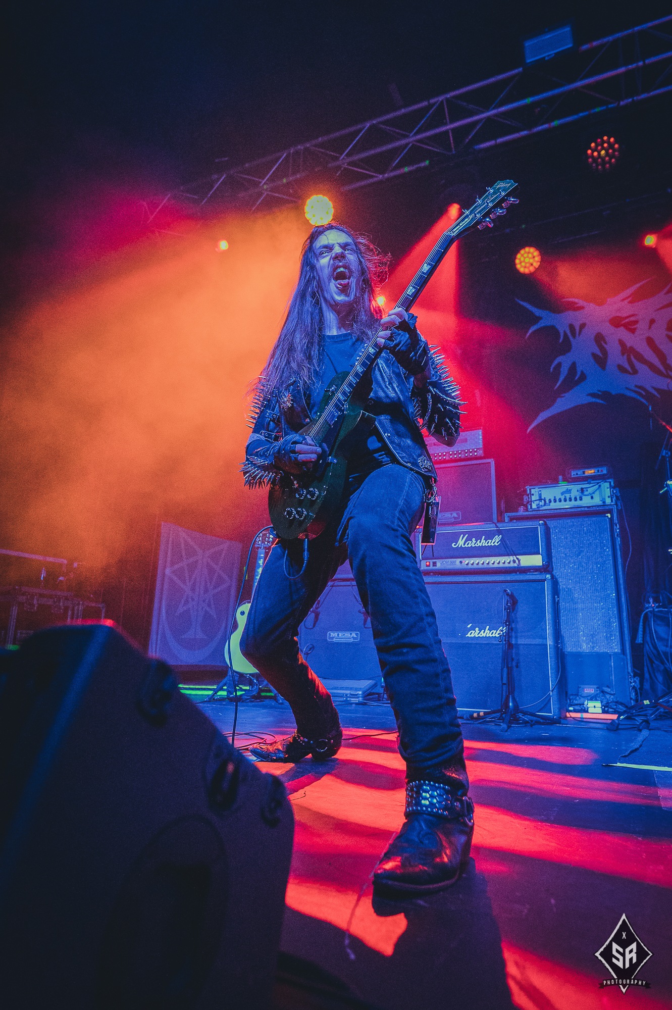Despite the early doors, there’s a healthy number of people awaiting openers STORMRULER. The St. Louis, Missouri-based black metal band have made ripples in the underground with 2021’s Under The Burning Eclipse and last year’s Sacred Rites & Black Magick, and in Manchester, the band showcase their craft with ample effect further bolstering their stock on our shores. Their take on black metal leans more towards accessibility as opposed to the brash vitriol of the genre’s more savage beasts, but this plays to their strengths as copious twin guitar harmonies and melodic passages wash over the crowd effectively and Jason Asberry‘s vocals cut through the mix rather well indeed. For their first time on our shores, STORMRULER are in prime position to bolster their influence opening a tour like this, and it’s fair to assume they will have won themselves numerous more fans following their outing in Manchester.