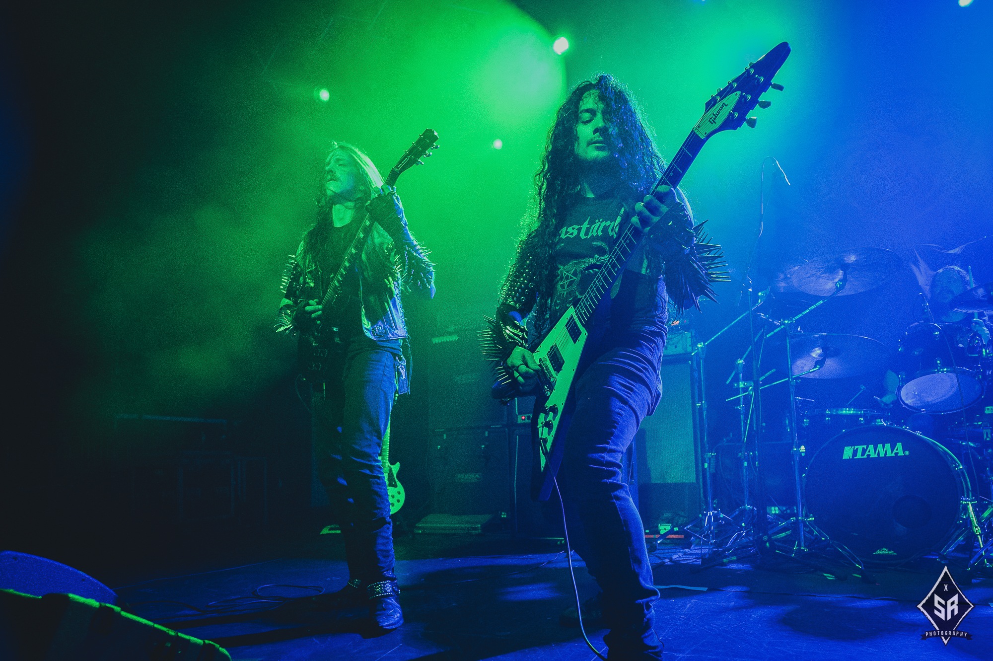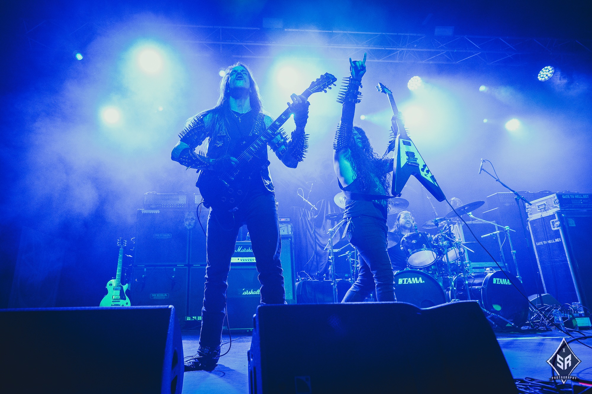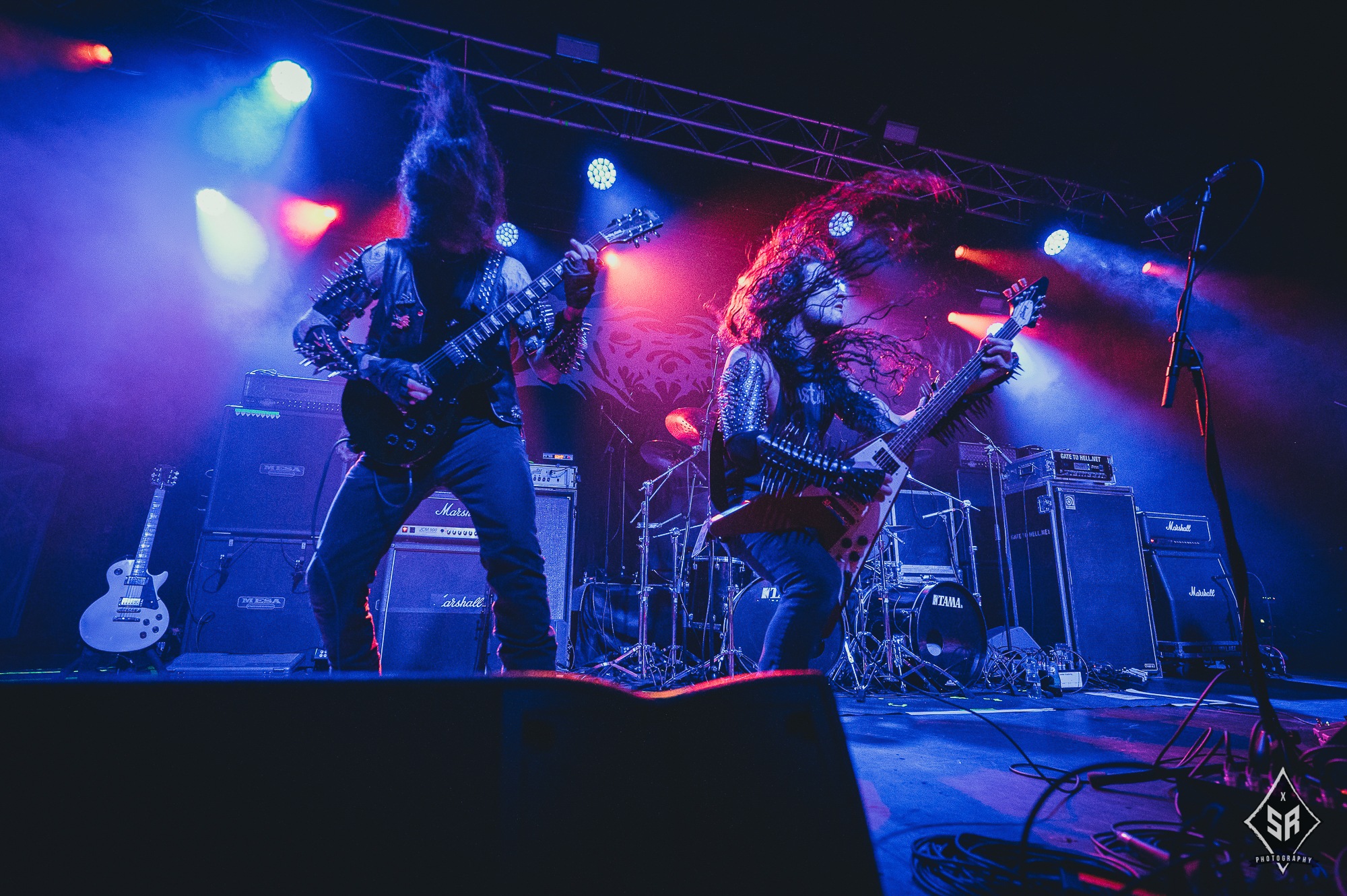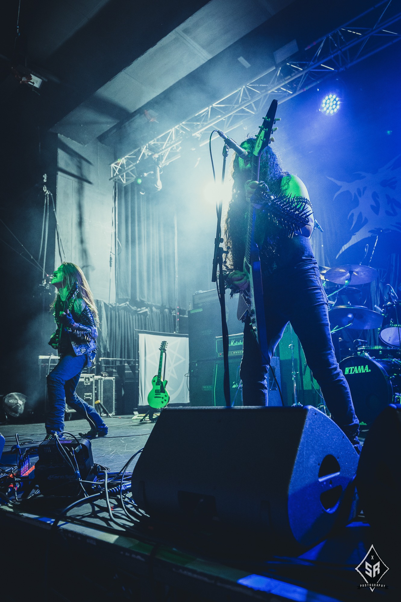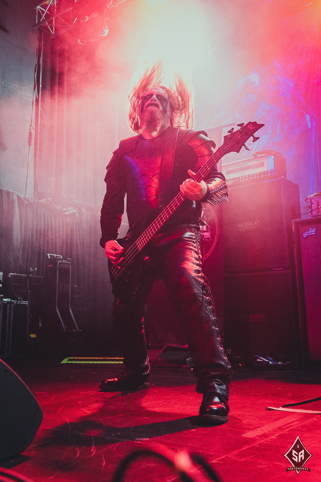 Despite the early doors, there’s a healthy number of people awaiting openers STORMRULER. The St. Louis, Missouri-based black metal band have made ripples in the underground with 2021’s Under The Burning Eclipse and last year’s Sacred Rites & Black Magick, and in Manchester, the band showcase their craft with ample effect further bolstering their stock on our shores. Their take on black metal leans more towards accessibility as opposed to the brash vitriol of the genre’s more savage beasts, but this plays to their strengths as copious twin guitar harmonies and melodic passages wash over the crowd effectively and Jason Asberry‘s vocals cut through the mix rather well indeed. For their first time on our shores, STORMRULER are in prime position to bolster their influence opening a tour like this, and it’s fair to assume they will have won themselves numerous more fans following their outing in Manchester.