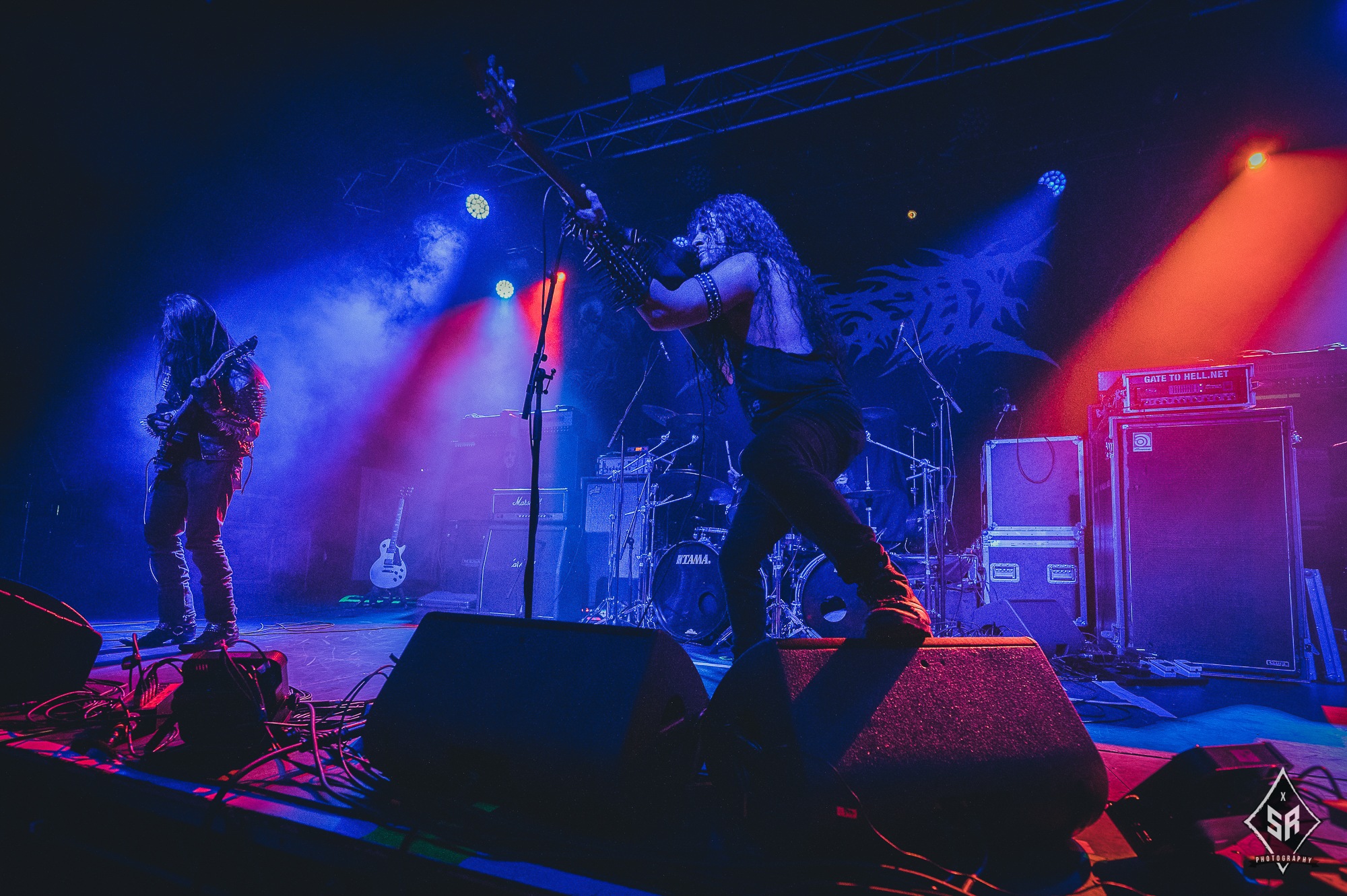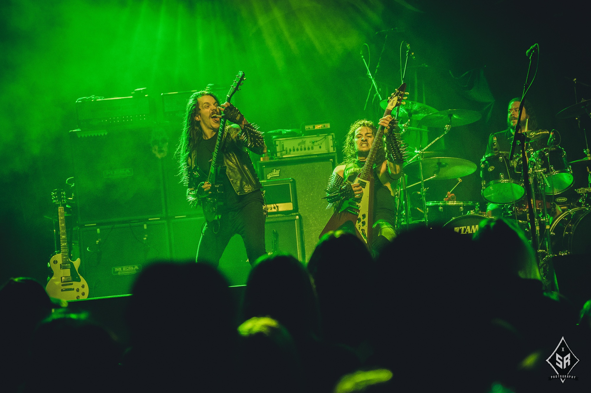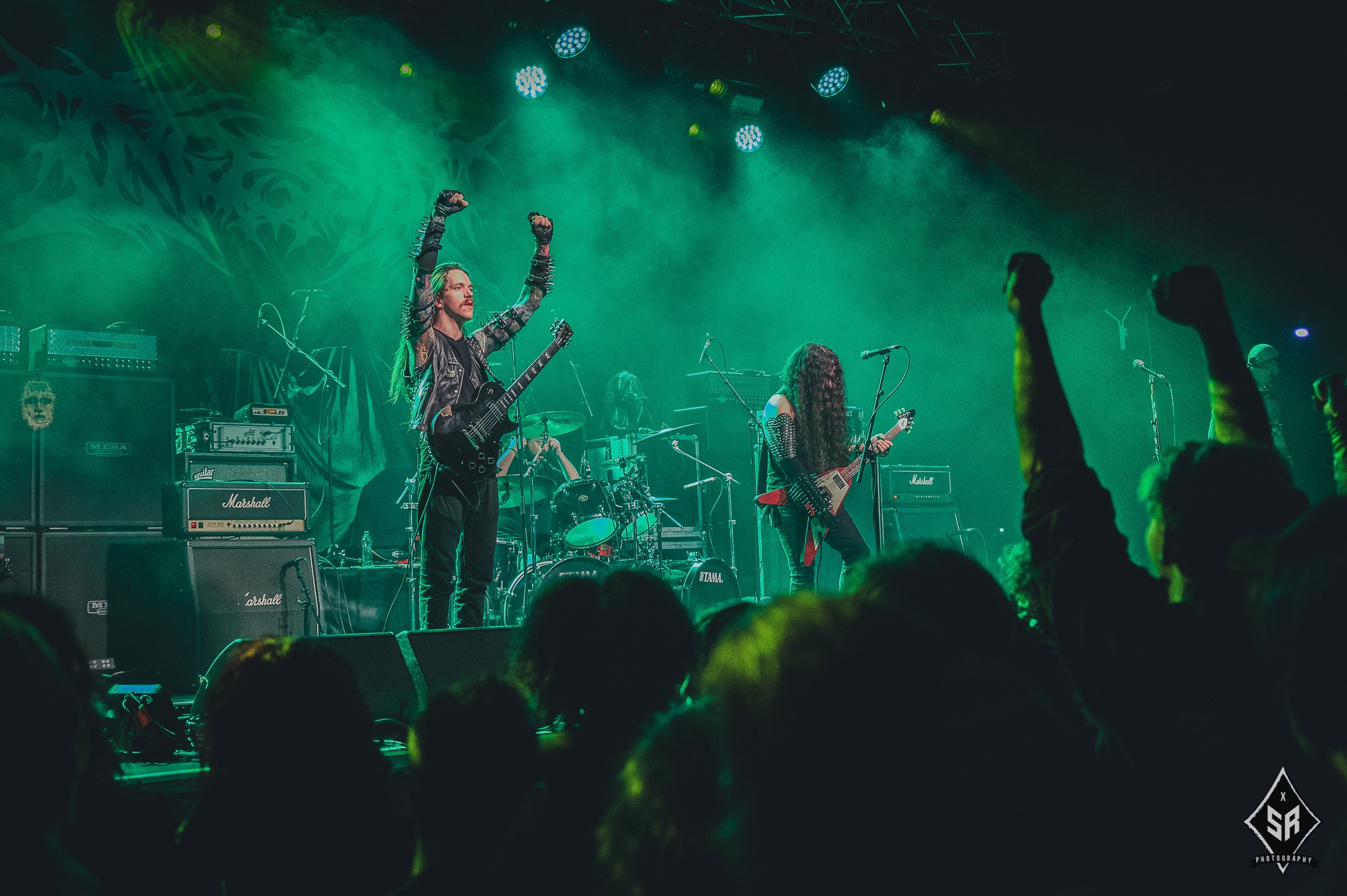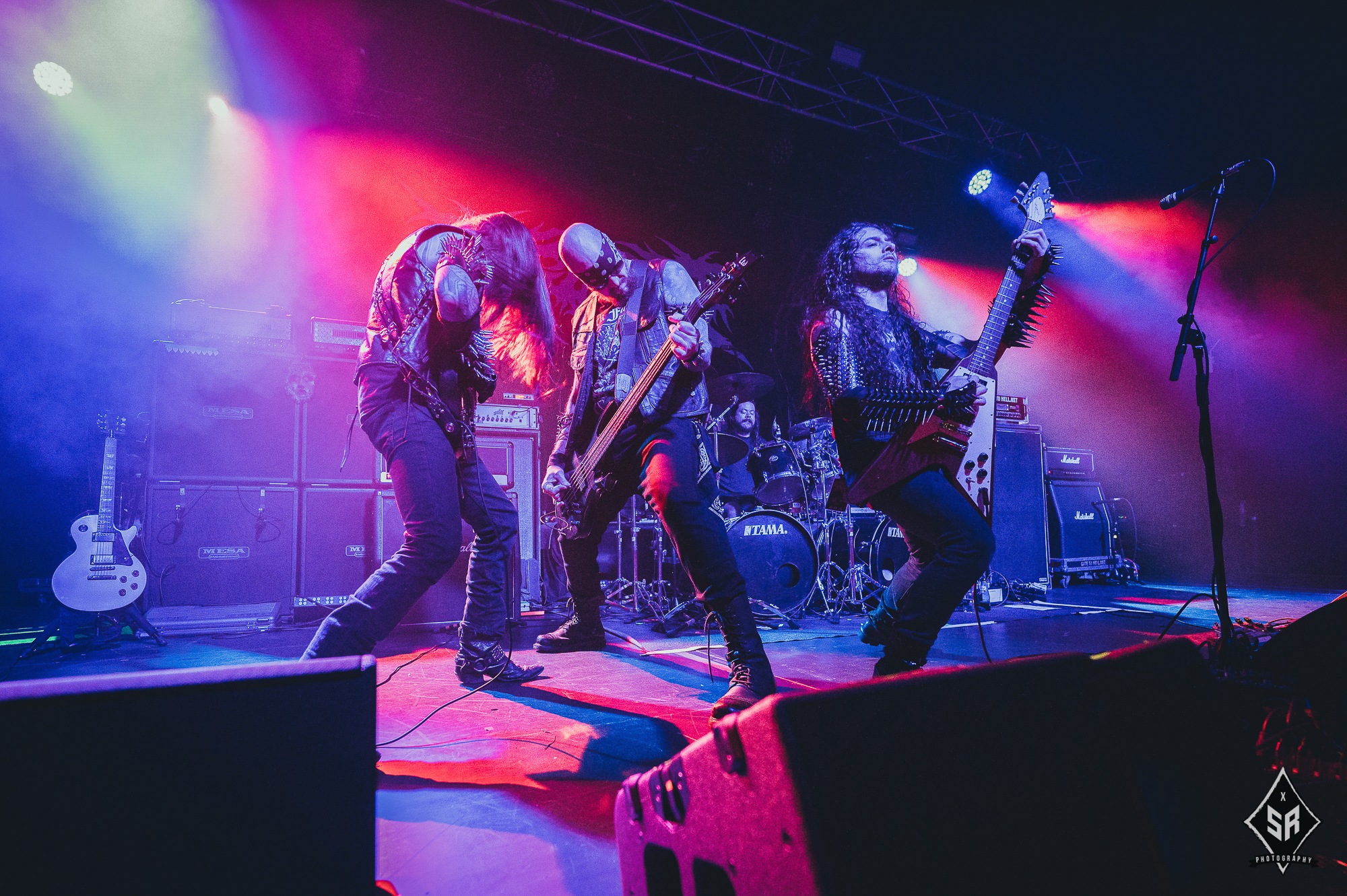 Despite the early doors, there’s a healthy number of people awaiting openers STORMRULER. The St. Louis, Missouri-based black metal band have made ripples in the underground with 2021’s Under The Burning Eclipse and last year’s Sacred Rites & Black Magick, and in Manchester, the band showcase their craft with ample effect further bolstering their stock on our shores. Their take on black metal leans more towards accessibility as opposed to the brash vitriol of the genre’s more savage beasts, but this plays to their strengths as copious twin guitar harmonies and melodic passages wash over the crowd effectively and Jason Asberry‘s vocals cut through the mix rather well indeed. For their first time on our shores, STORMRULER are in prime position to bolster their influence opening a tour like this, and it’s fair to assume they will have won themselves numerous more fans following their outing in Manchester.
