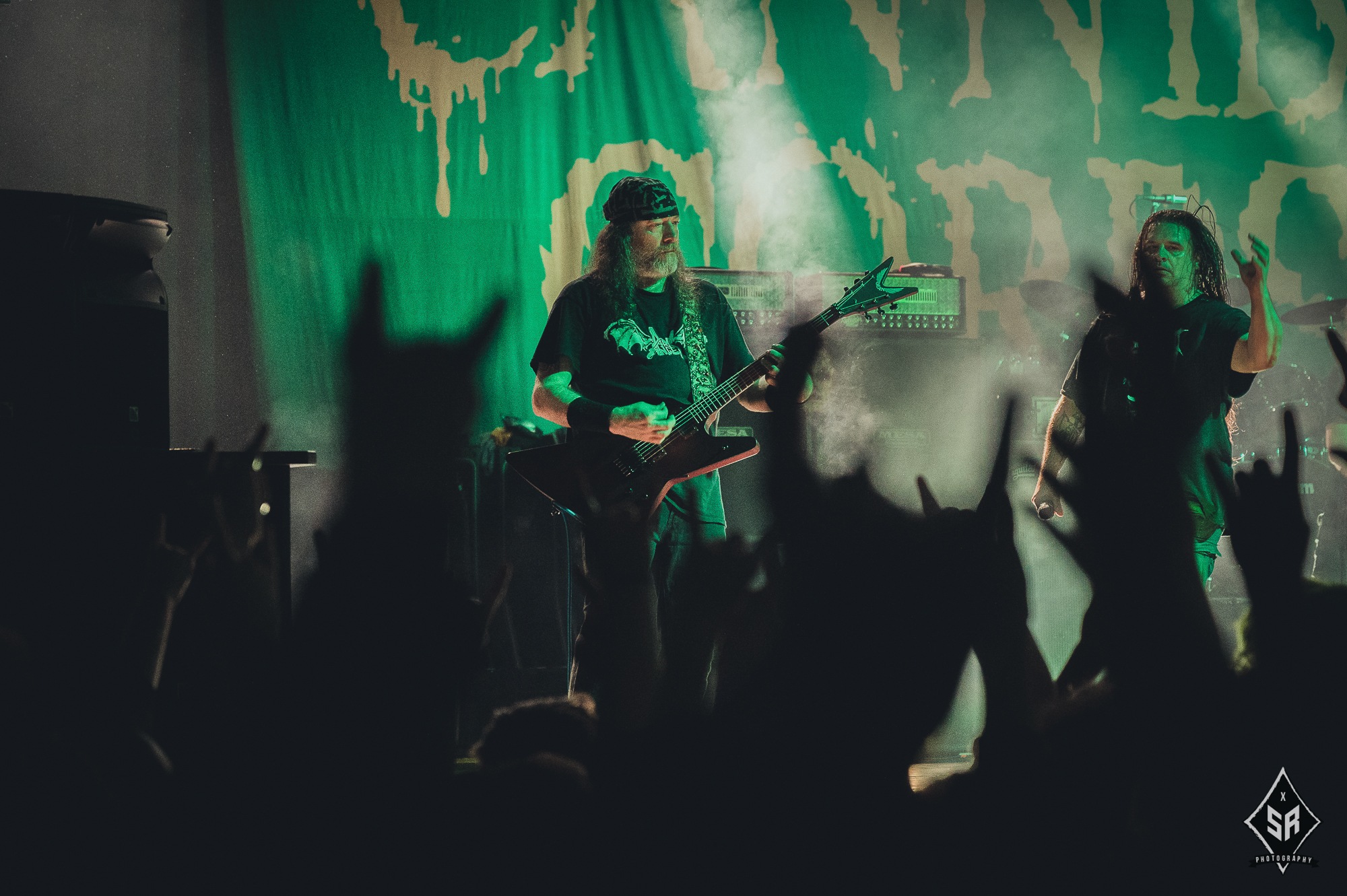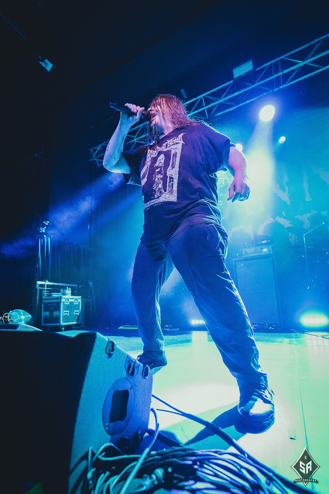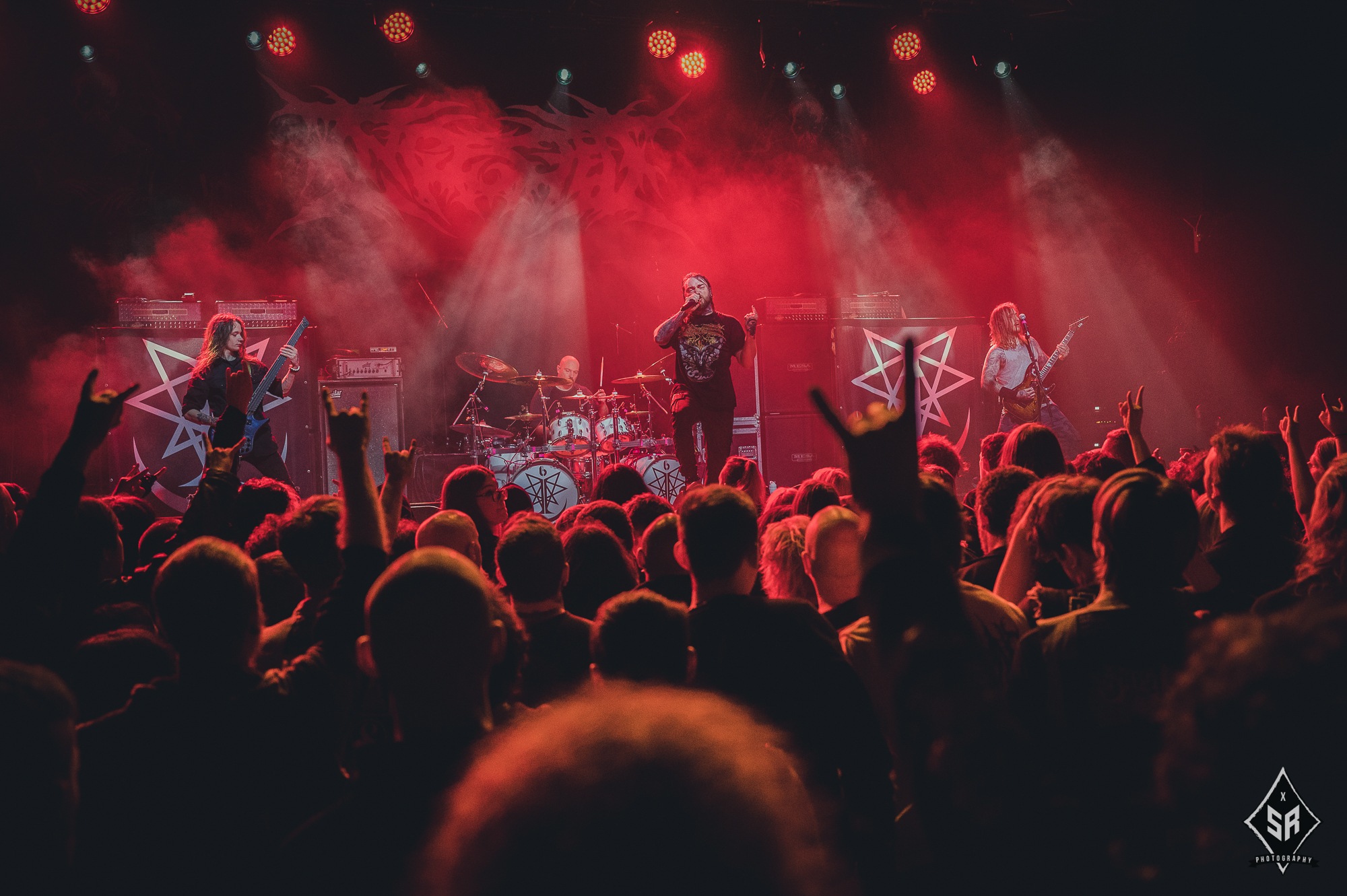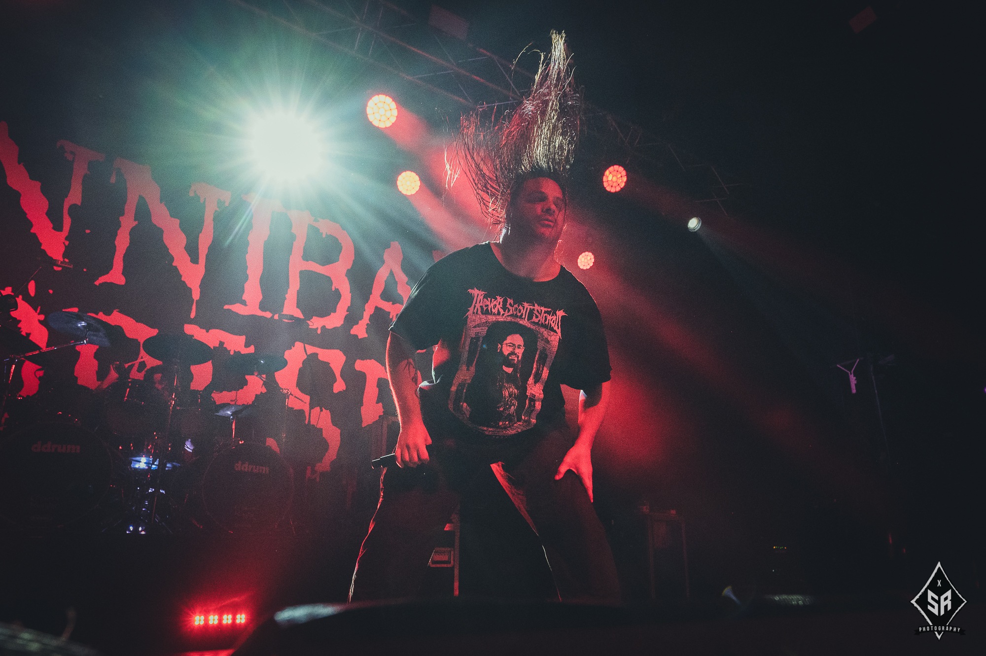 Death metal has undergone significant evolutions since its unholy inception forty years ago. What was once a small pocketed collection of bands pushing heavy music to unfathomable new depths, today, the scene is enormous with a large quota of killer bands deploying a host of varying soundscapes from death metal’s diverse sub-genres. For all the exciting new blood that is keeping the genre healthy, for CANNIBAL CORPSE, they remain one of death metal’s heaviest hitters. For all their sonic brutality, they sit in a unique position of being insanely popular, and as such, tonight’s sold-out show at the Academy in Manchester reflects just how much of a cultural phenomenon CANNIBAL CORPSE stand 32 years after Eaten Back To Life shook the foundations of our world to its rotten core.