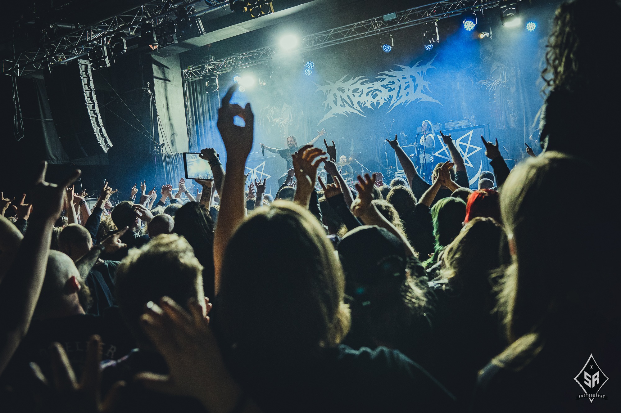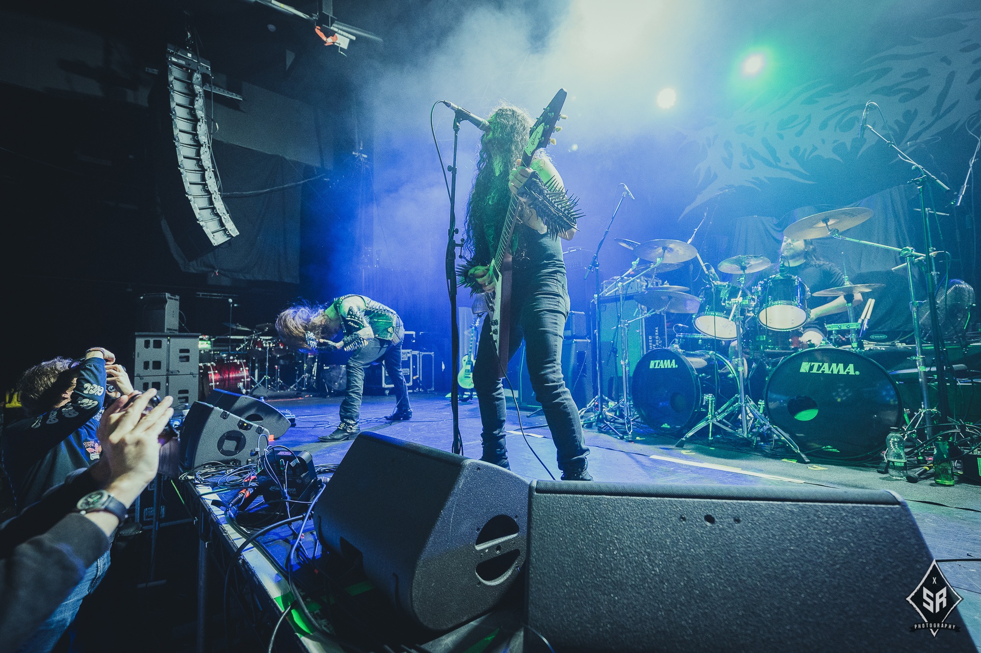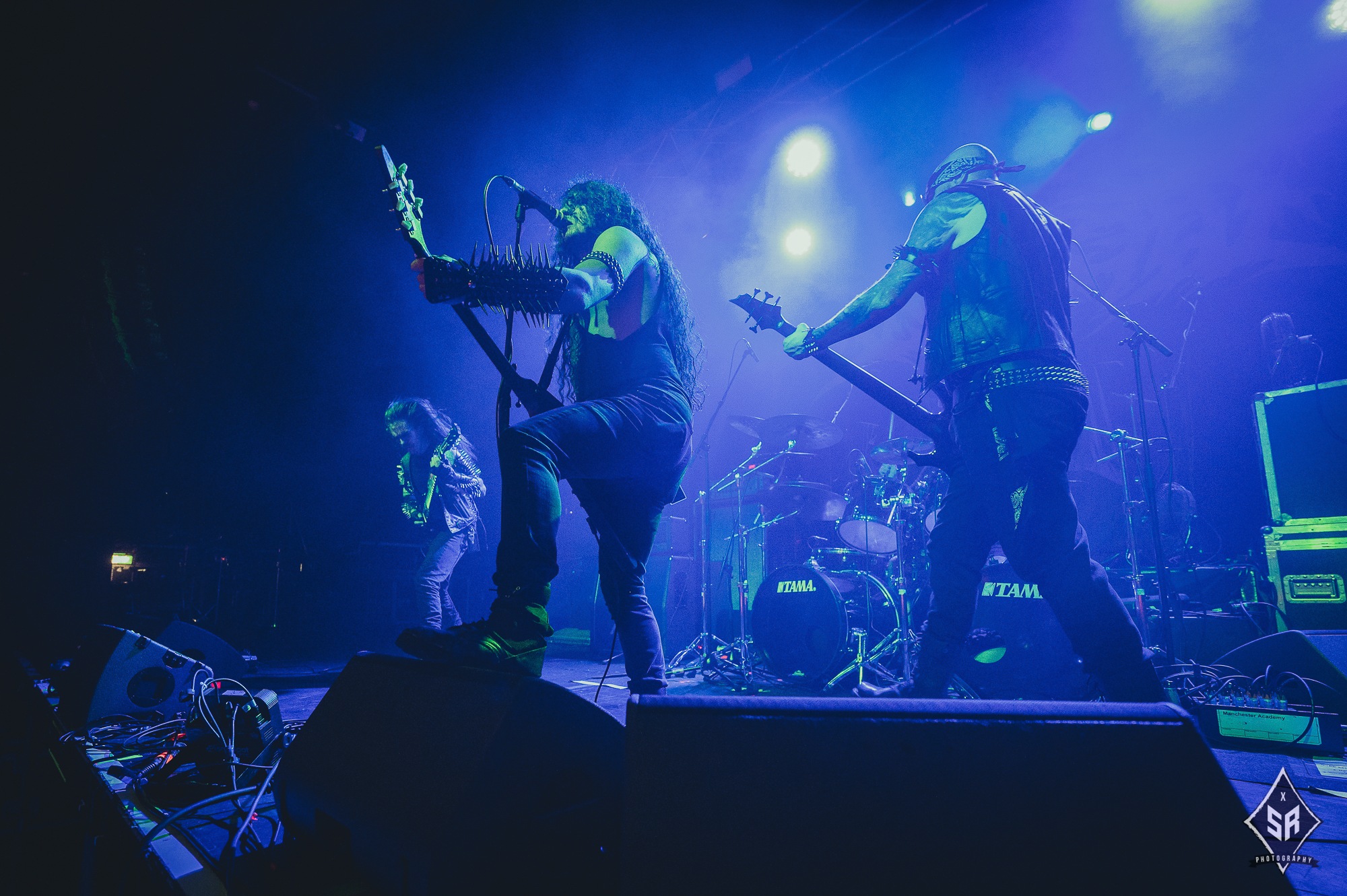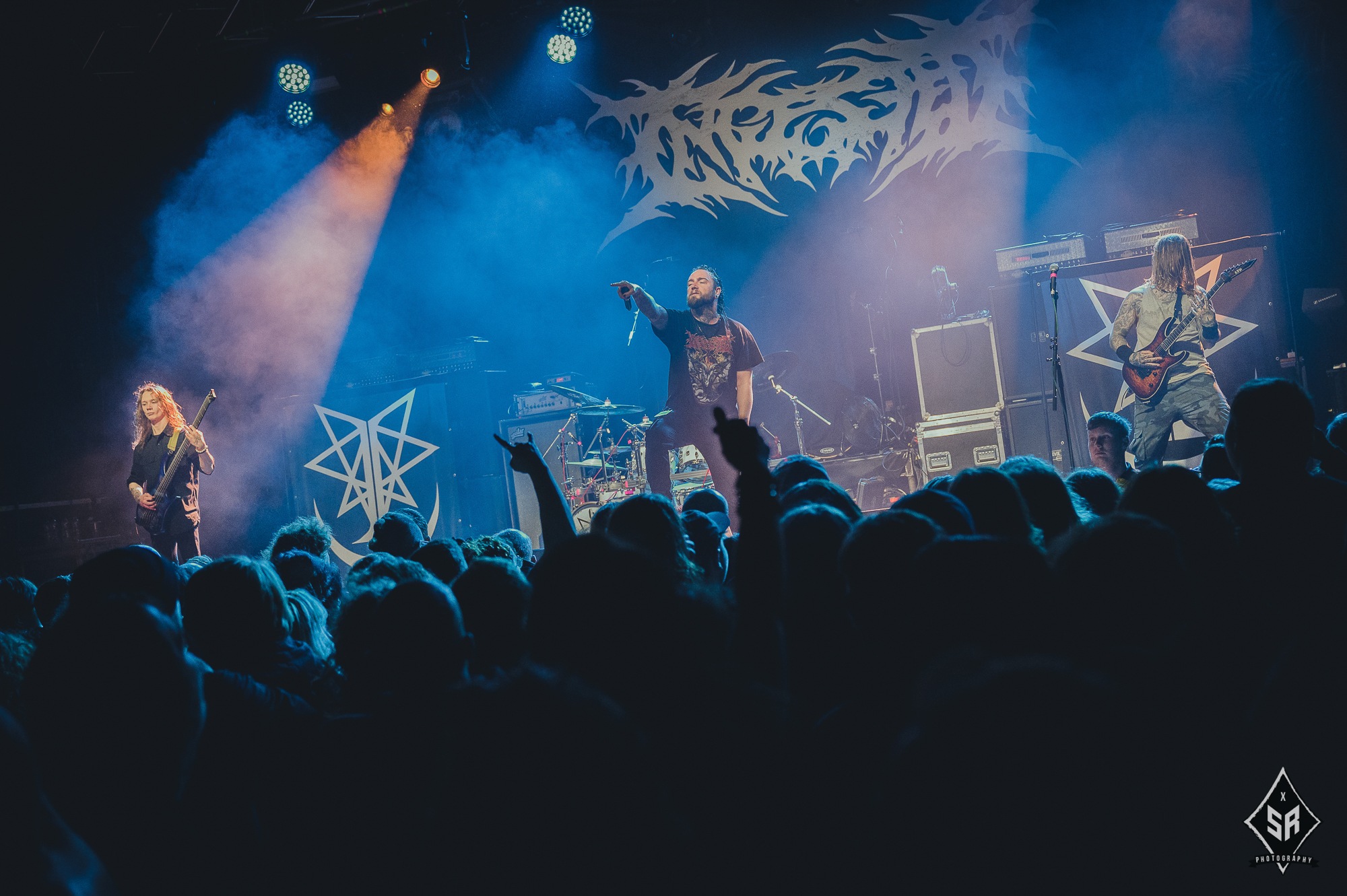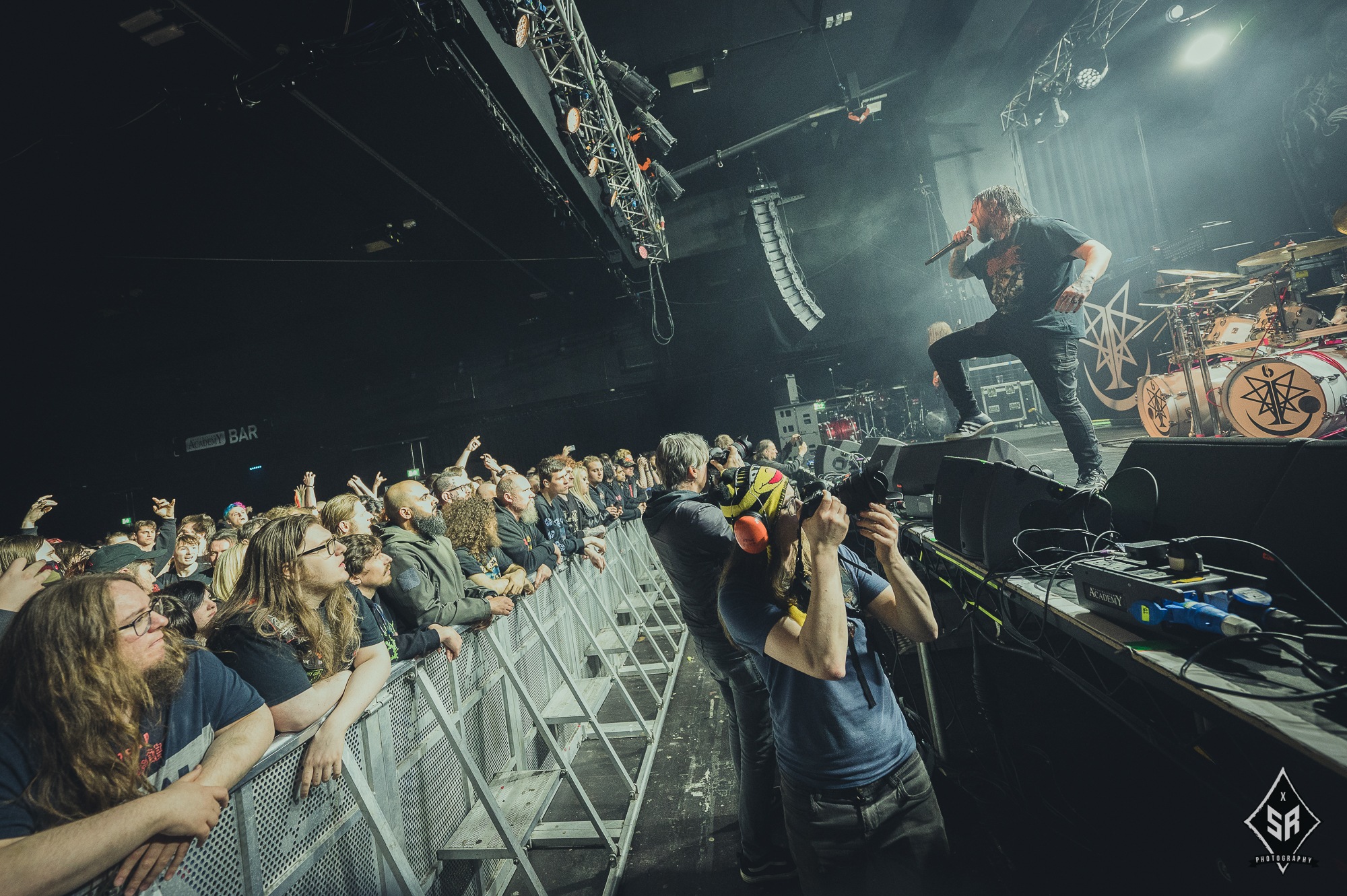 Death metal has undergone significant evolutions since its unholy inception forty years ago. What was once a small pocketed collection of bands pushing heavy music to unfathomable new depths, today, the scene is enormous with a large quota of killer bands deploying a host of varying soundscapes from death metal’s diverse sub-genres. For all the exciting new blood that is keeping the genre healthy, for CANNIBAL CORPSE, they remain one of death metal’s heaviest hitters. For all their sonic brutality, they sit in a unique position of being insanely popular, and as such, tonight’s sold-out show at the Academy in Manchester reflects just how much of a cultural phenomenon CANNIBAL CORPSE stand 32 years after Eaten Back To Life shook the foundations of our world to its rotten core.