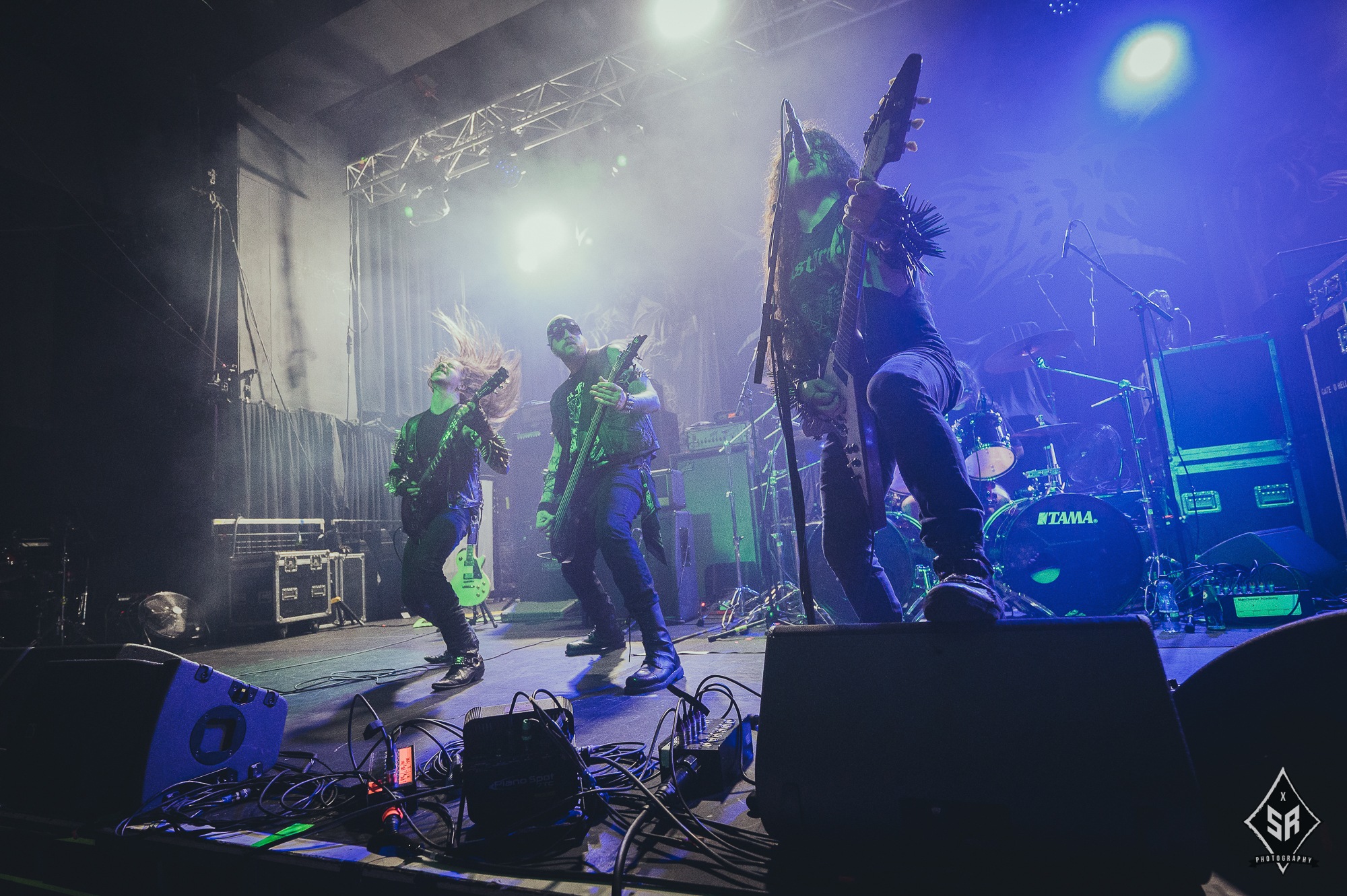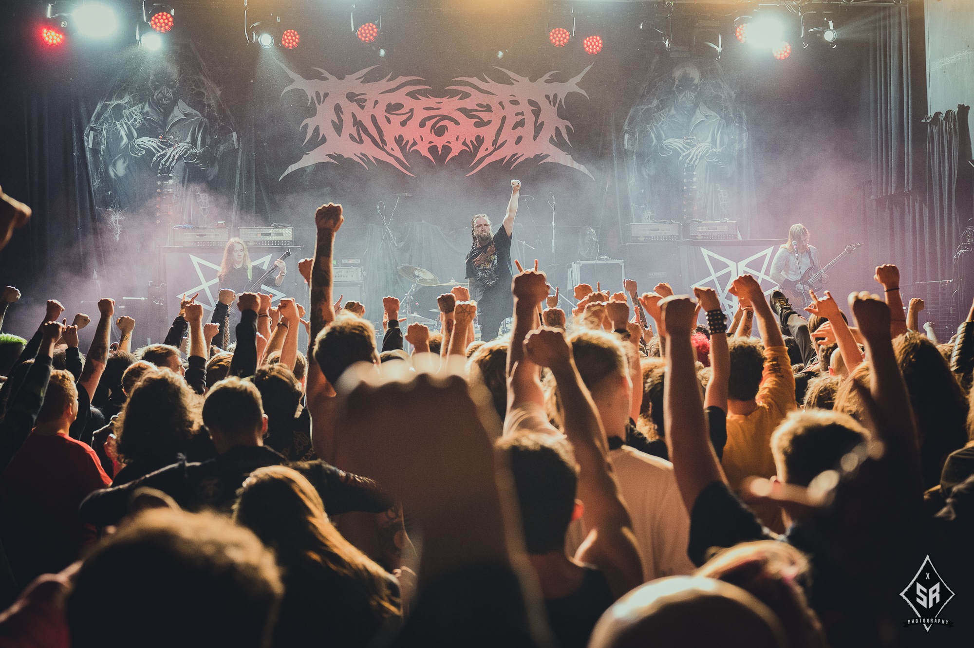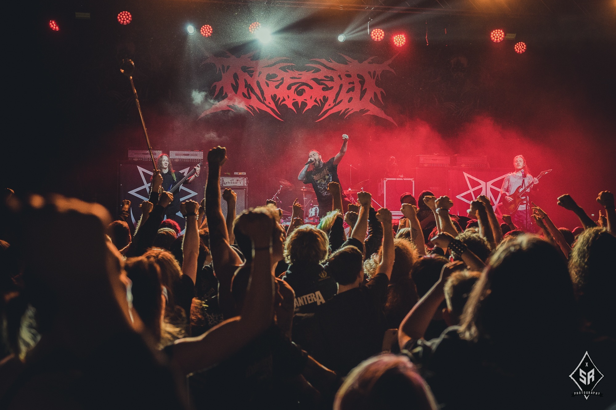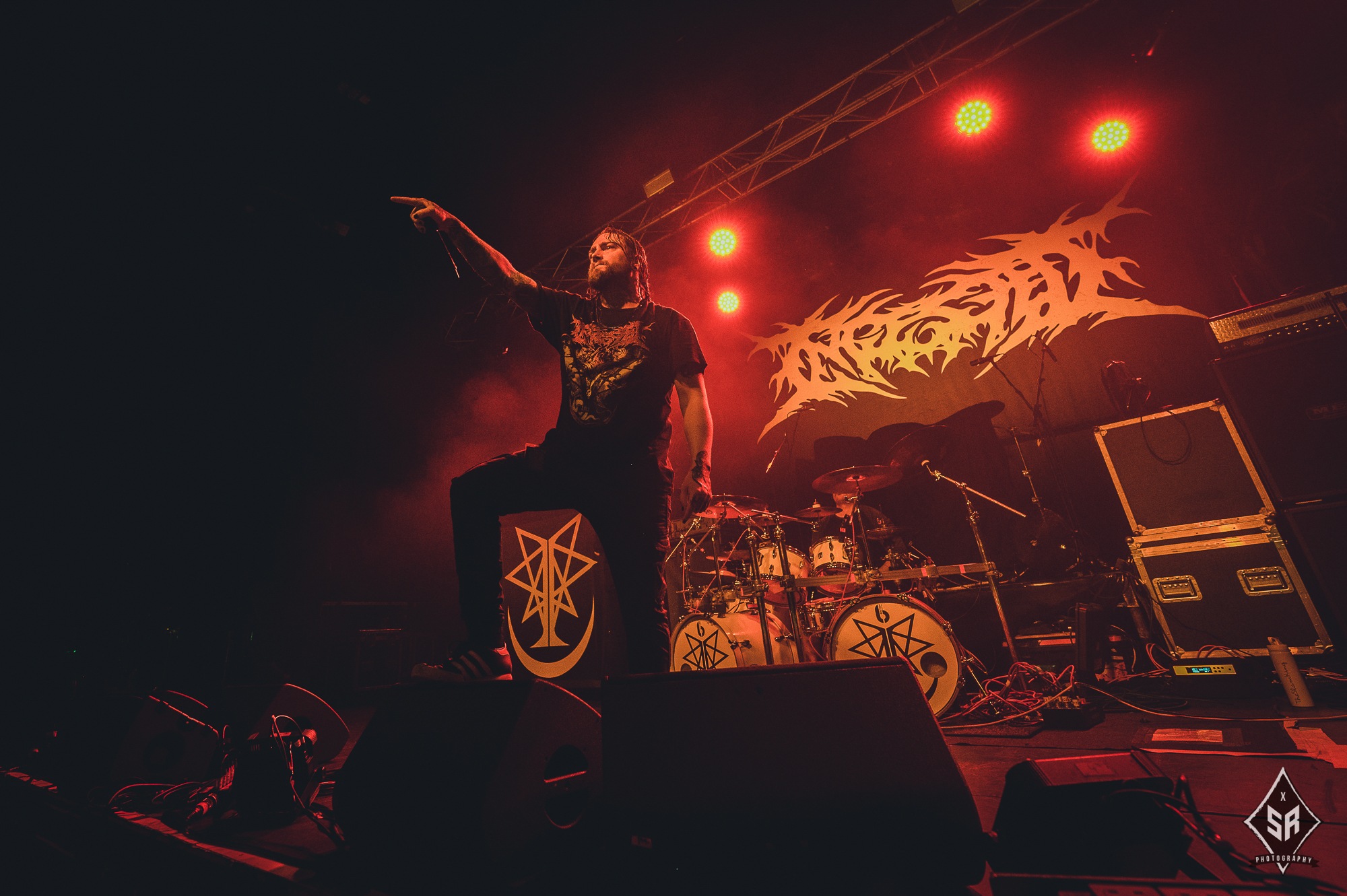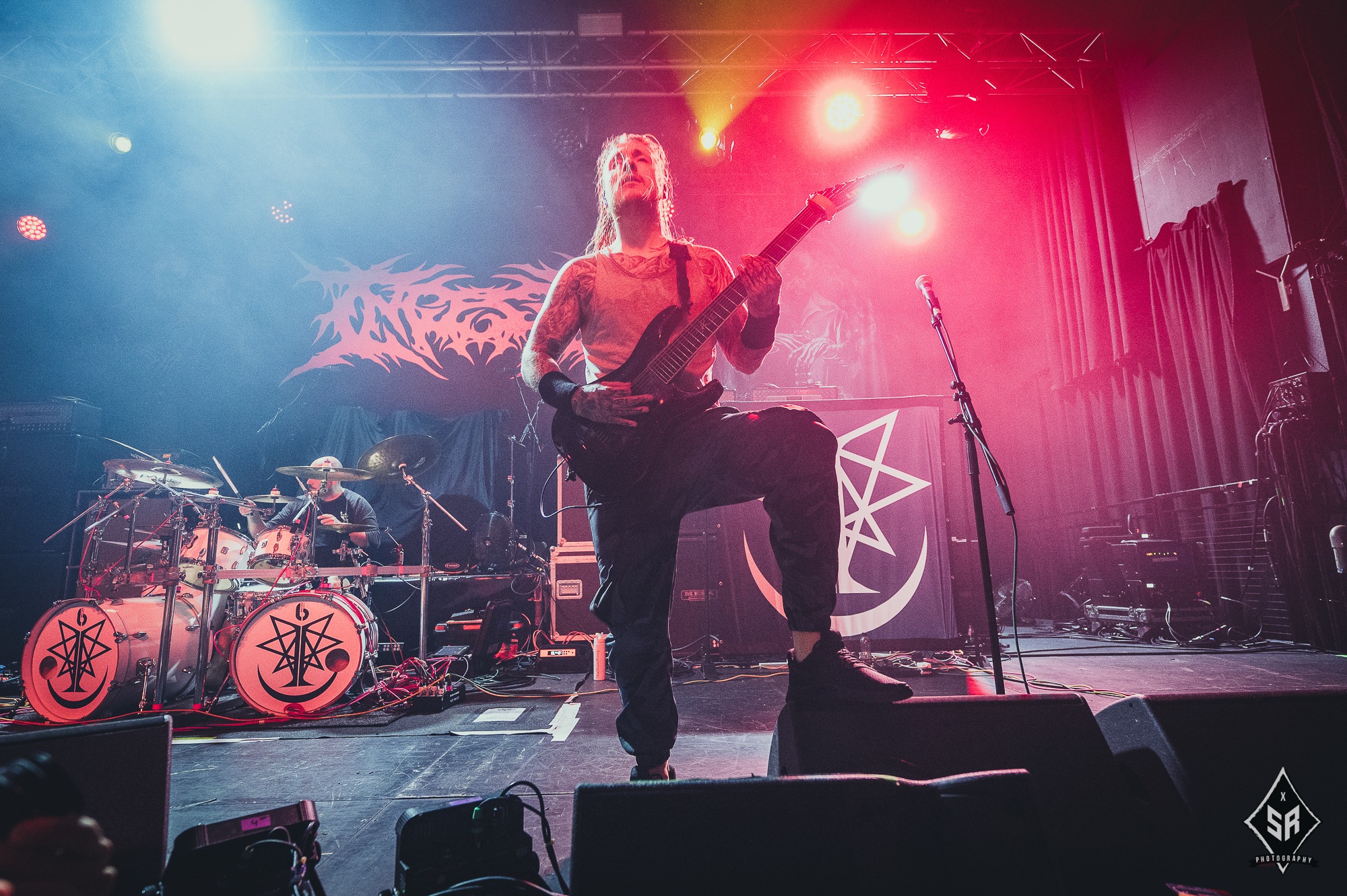 For INGESTED, tonight’s show is a homecoming affair as Jason Evans proudly declares the Northern powerhouse as “Slamchester”. Though they have evolved considerably into a more straightforward death metal band as opposed to 2009’s slamming Surpassing The Boundaries Of Human Suffering, their potency for delivering death metal that shakes the venue’s foundations to its core is just as strong. And this is clear as day as the band waste absolutely no time in levelling their hometown as a one-two punch of Rebirth and No Half Measures incites utter bedlam in the pit, whilst Shadows In Time and Echoes Of Hate (both pulled from last year’s Ashes Lie Still) sound utterly monstrous in the live environment. The riffs and slams are relentless and Evans‘ dispatches his monstrous growls and snarls with the utmost ease, all whilst displaying utter glee at the throng of people losing their minds to the band’s aural barrage. A homecoming show is always a treat, and it is clear evidence that INGESTED are one of the UK’s finest when it comes to death metal.