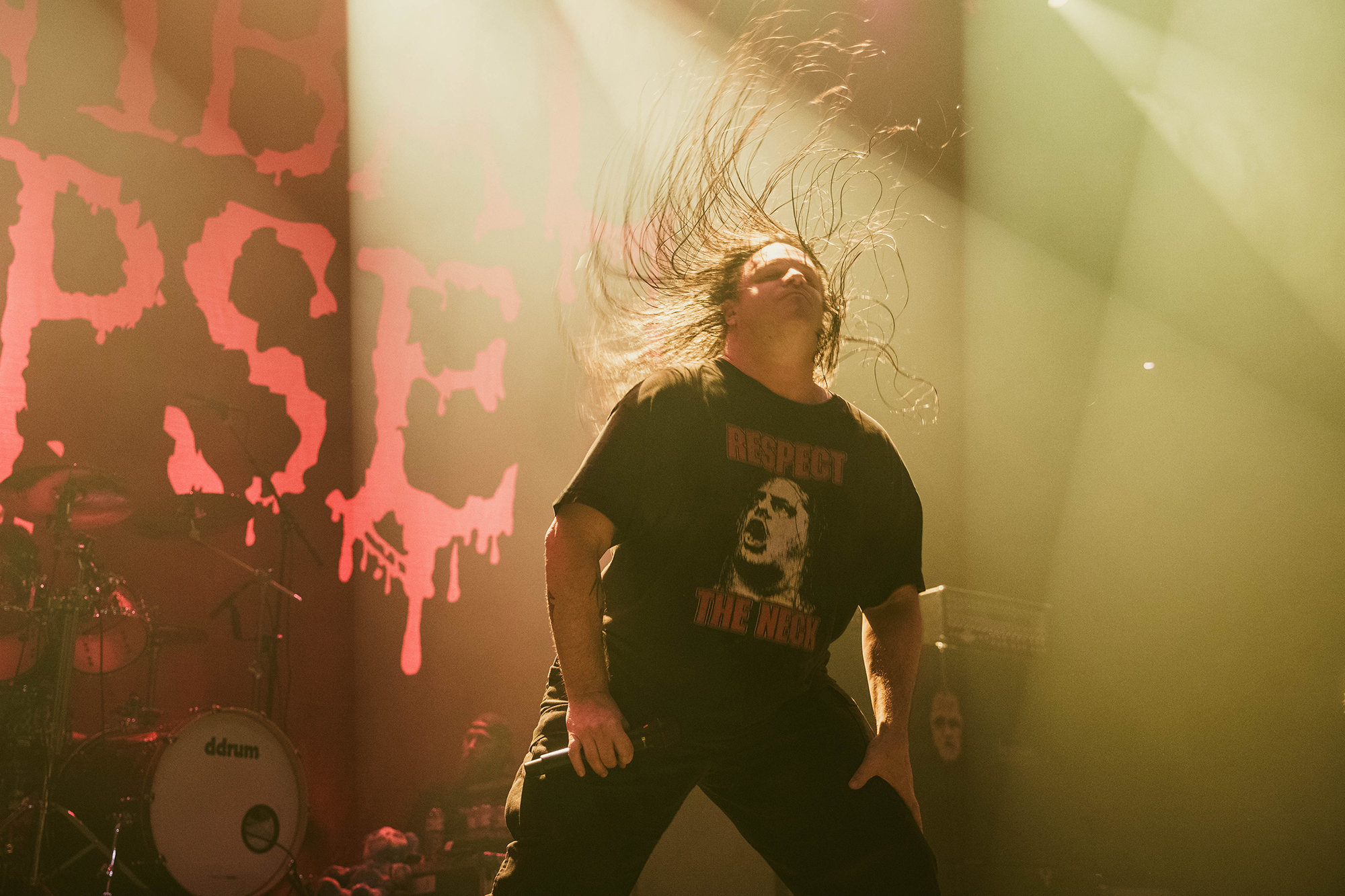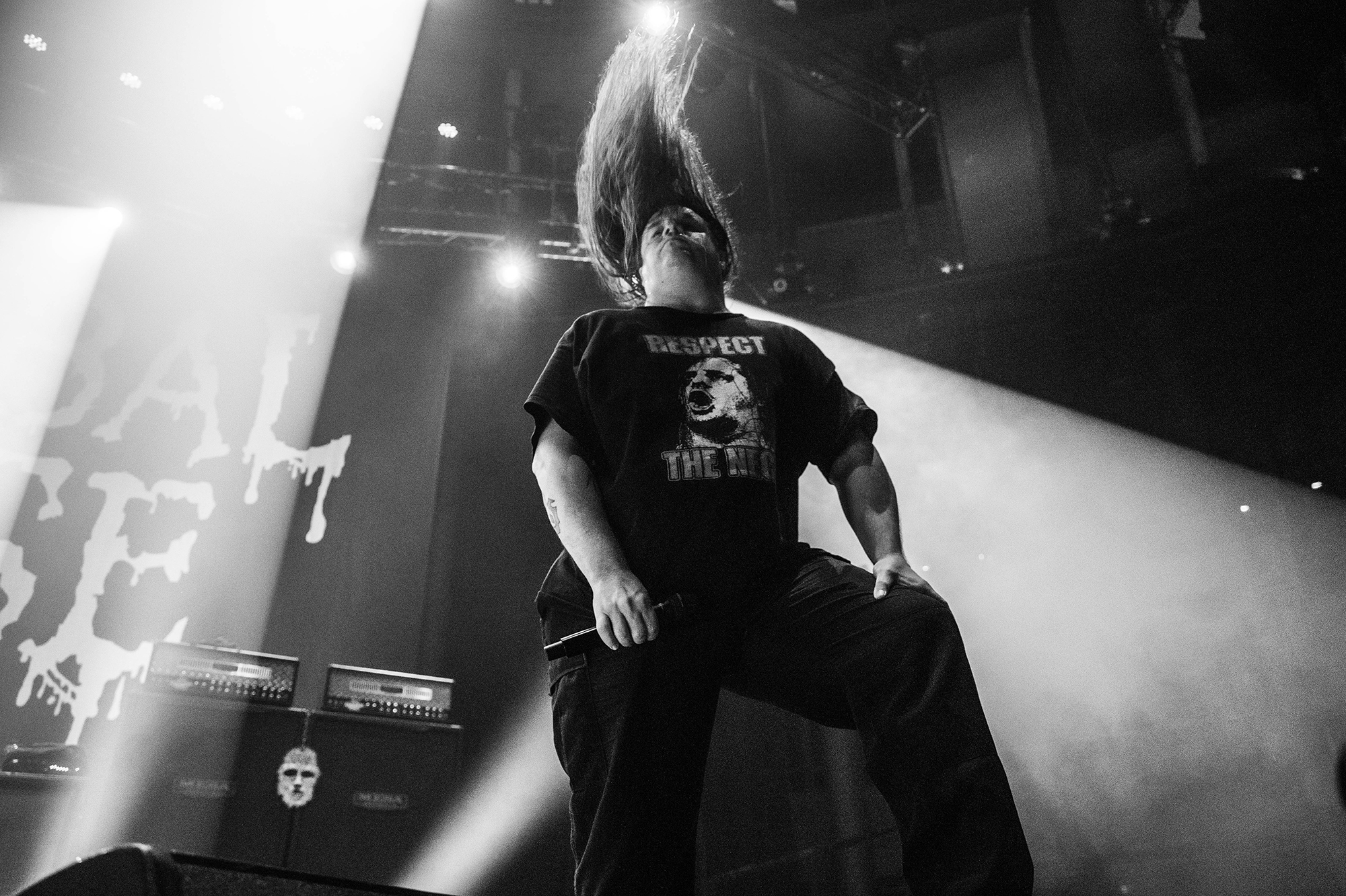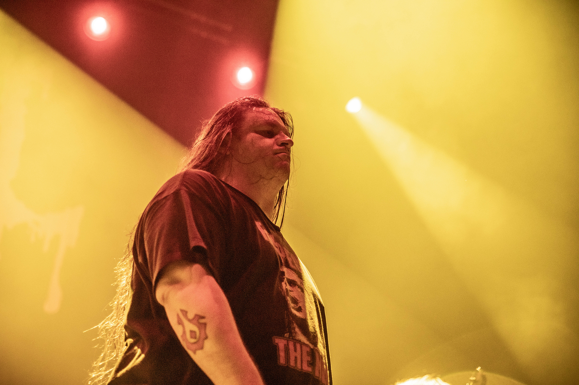 Closing the set, there’s a pit opening up as wide as possible, while George screams “I’m sure you know what this song is next, but I’m gonna tell you motherfuckers anyway” and as the intro of Hammer Smashed Face unleashes, the entire venue turns in crushing wave of bodies flying everywhere and into each other. A song so popular that it was played in mainstream movies. Chants of people singing along to the riffs echoes around The Roundhouse is a highlight to see and hear.