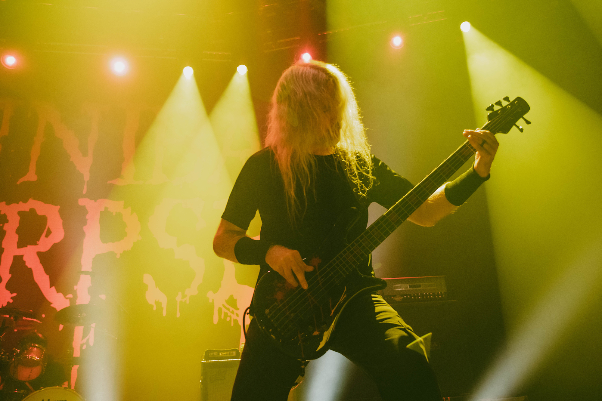 Death-meets-thrash metal band, SCHIZOPHRENIA open up as the first band of the evening, grabbing the attention of fans as they move and play effortlessly across the stage. Drummer, Lorenzo Vissol, stands out with the fact he hypes up the crowd as he plays and is constantly smiling throughout. SCHIZOPHRENIA showed that despite that they are a young band, they have the songs and stage presence to prove why they are on this bill with CANNIBAL CORPSE.
