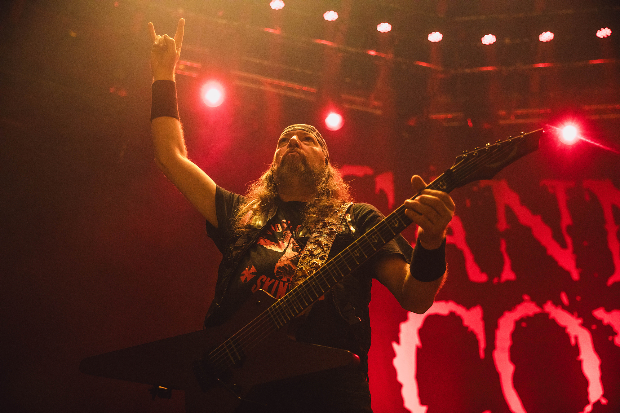 As a band with a long successful legacy, the setlist spanned material from across 11 of their albums, all flowing well in to each other. As George commands the crowd, the band keep the crowd on their toes and Fisher‘s relentless headbanging with every song encourages everyone to do the same, if they can keep up, is another story entirely. The funny moments of the set comes from when George talks to the fans, his humour to mess around, such as telling all the men off for screaming when he said the band wanted to dedicate a song to the women in the crowd.