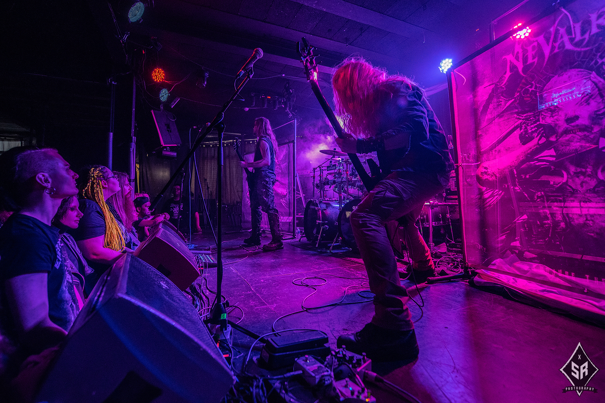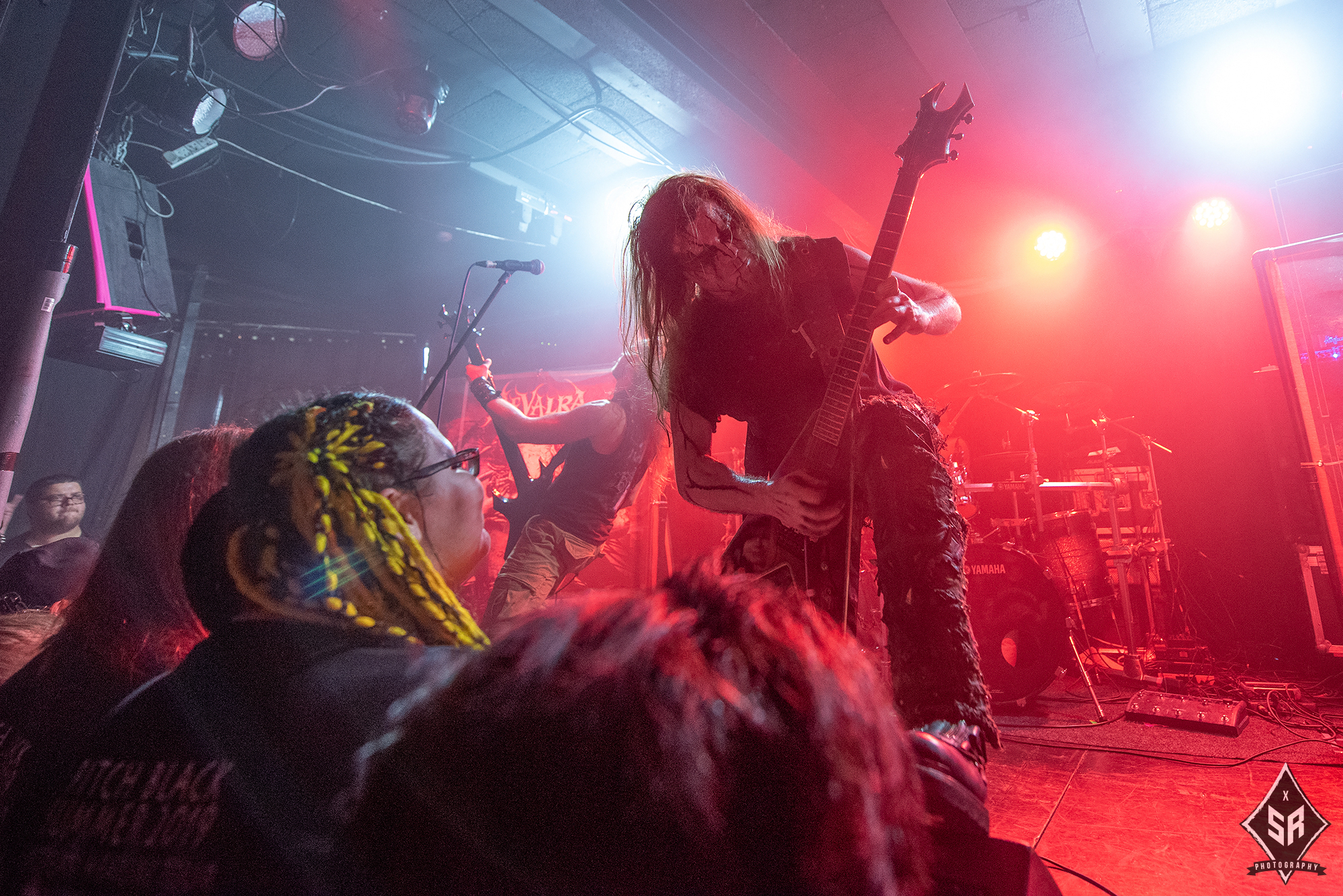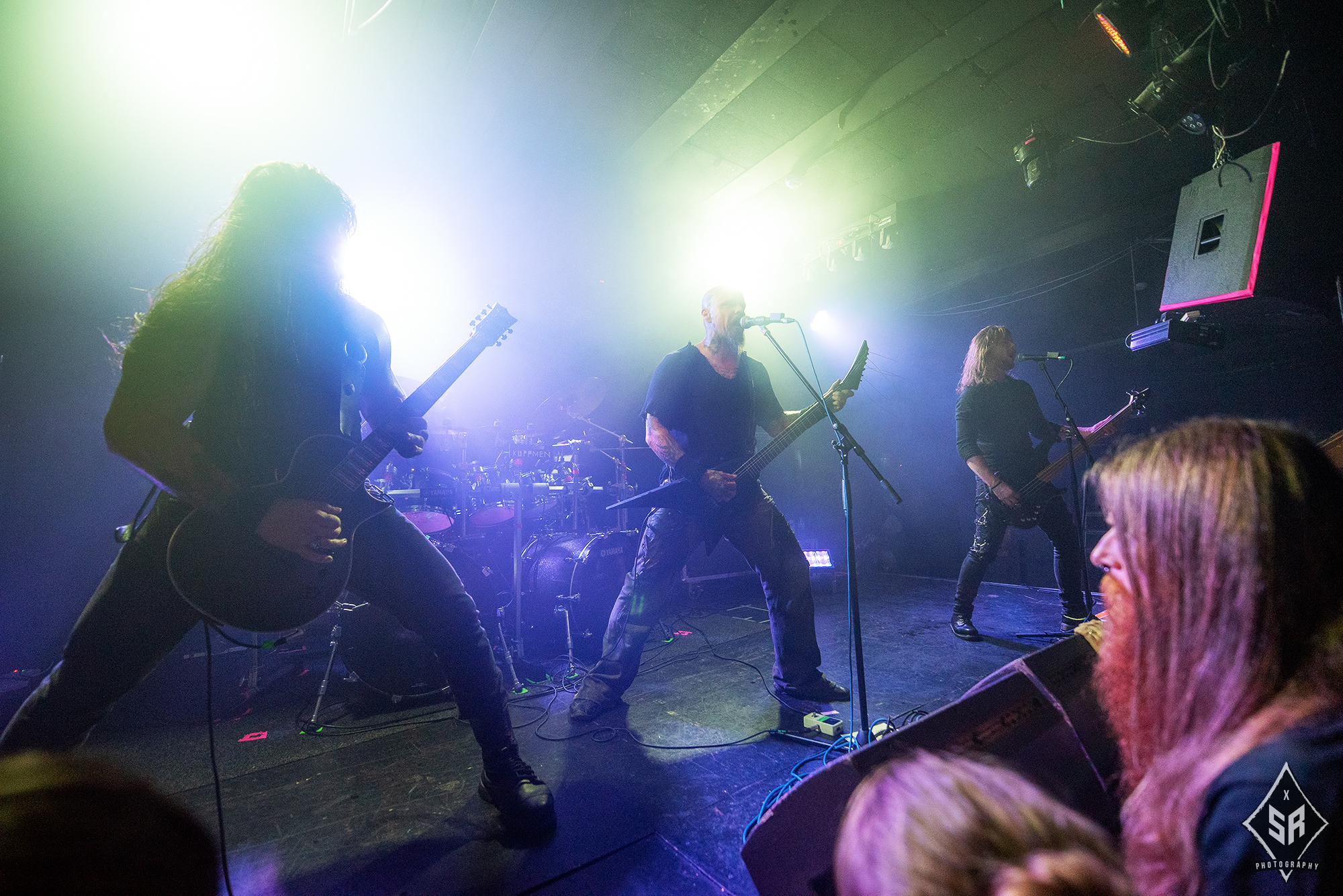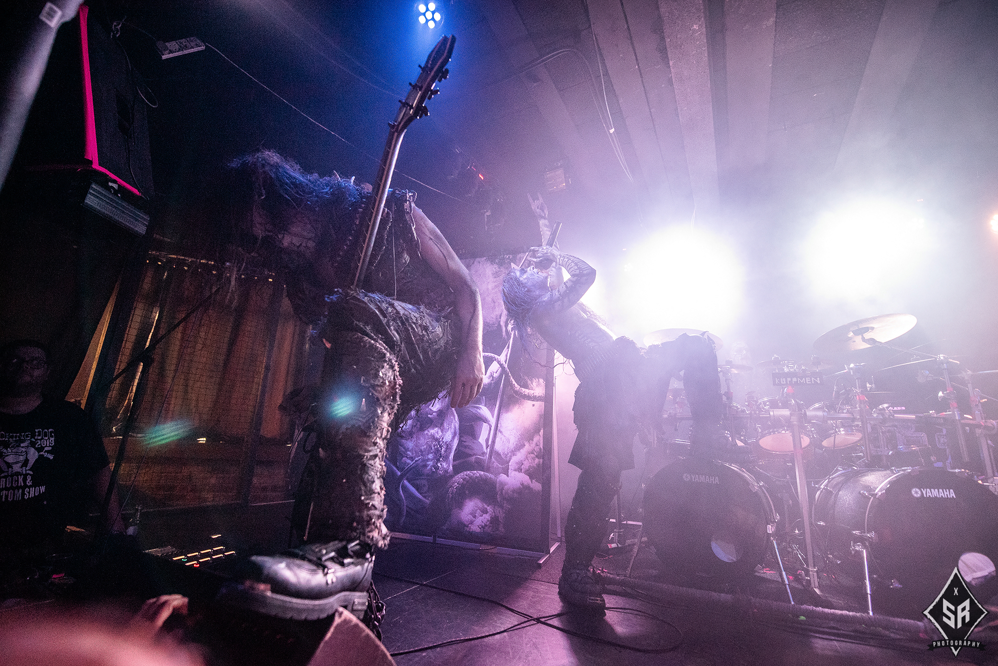NEVALRA have the task to kick off proceedings and despite hitting the stage an hour and a half after doors opening, the pitiful attendance isn’t a pretty sight for the US blackened melodic death metallers. However, this doesn’t phase the band in the slightest as they proceed to hurtle through their set at breakneck pace. With the bulk of their set comprised of material from this year’s debut full-length, Conjure The Storm, the trio display enough to keep the crowd entertained in their short time on stage. Zach Lindsey‘s drumming is utterly relentless and the splashes of melodic guitar-play from Scott Eames demonstrates the skill within their repertoire. However, Eames‘ vocals are often lost in the mix, making his growled vocals sound flat and difficult to hear clearly in the sonic maelstrom. Things do improve as the set continues but it dampens any overall lasting impact.