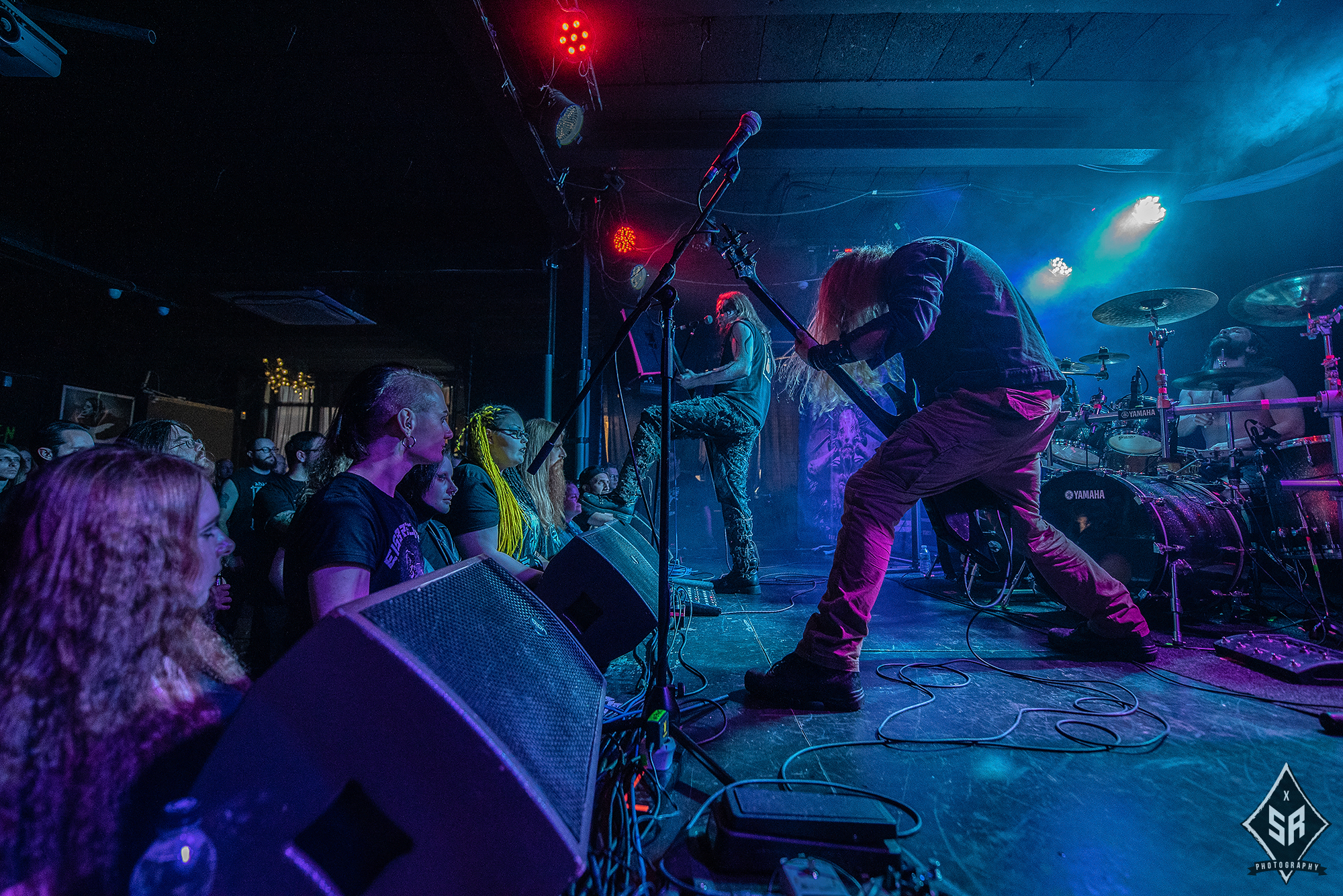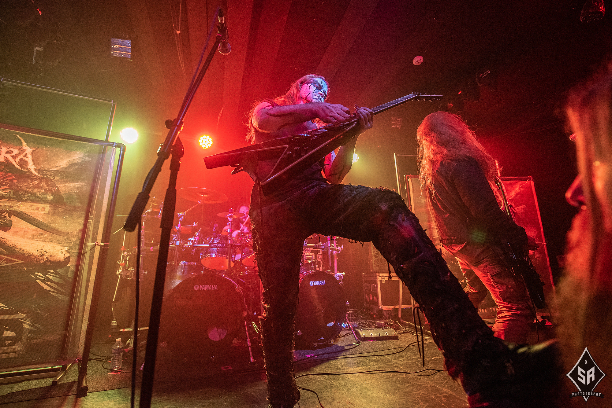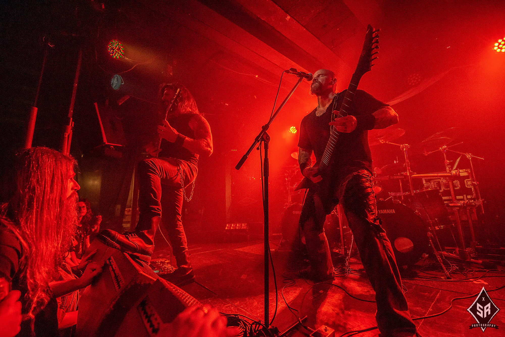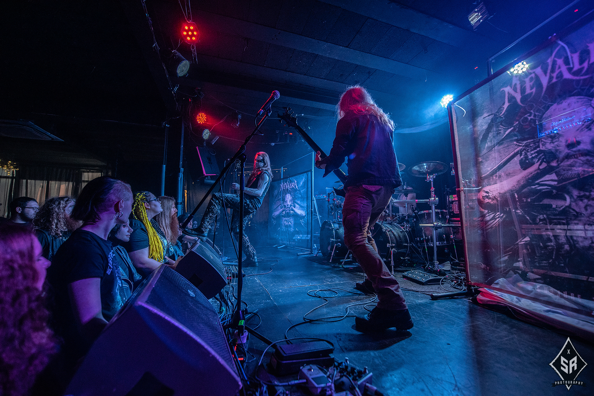 NEVALRA have the task to kick off proceedings and despite hitting the stage an hour and a half after doors opening, the pitiful attendance isn’t a pretty sight for the US blackened melodic death metallers. However, this doesn’t phase the band in the slightest as they proceed to hurtle through their set at breakneck pace. With the bulk of their set comprised of material from this year’s debut full-length, Conjure The Storm, the trio display enough to keep the crowd entertained in their short time on stage. Zach Lindsey‘s drumming is utterly relentless and the splashes of melodic guitar-play from Scott Eames demonstrates the skill within their repertoire. However, Eames‘ vocals are often lost in the mix, making his growled vocals sound flat and difficult to hear clearly in the sonic maelstrom. Things do improve as the set continues but it dampens any overall lasting impact.