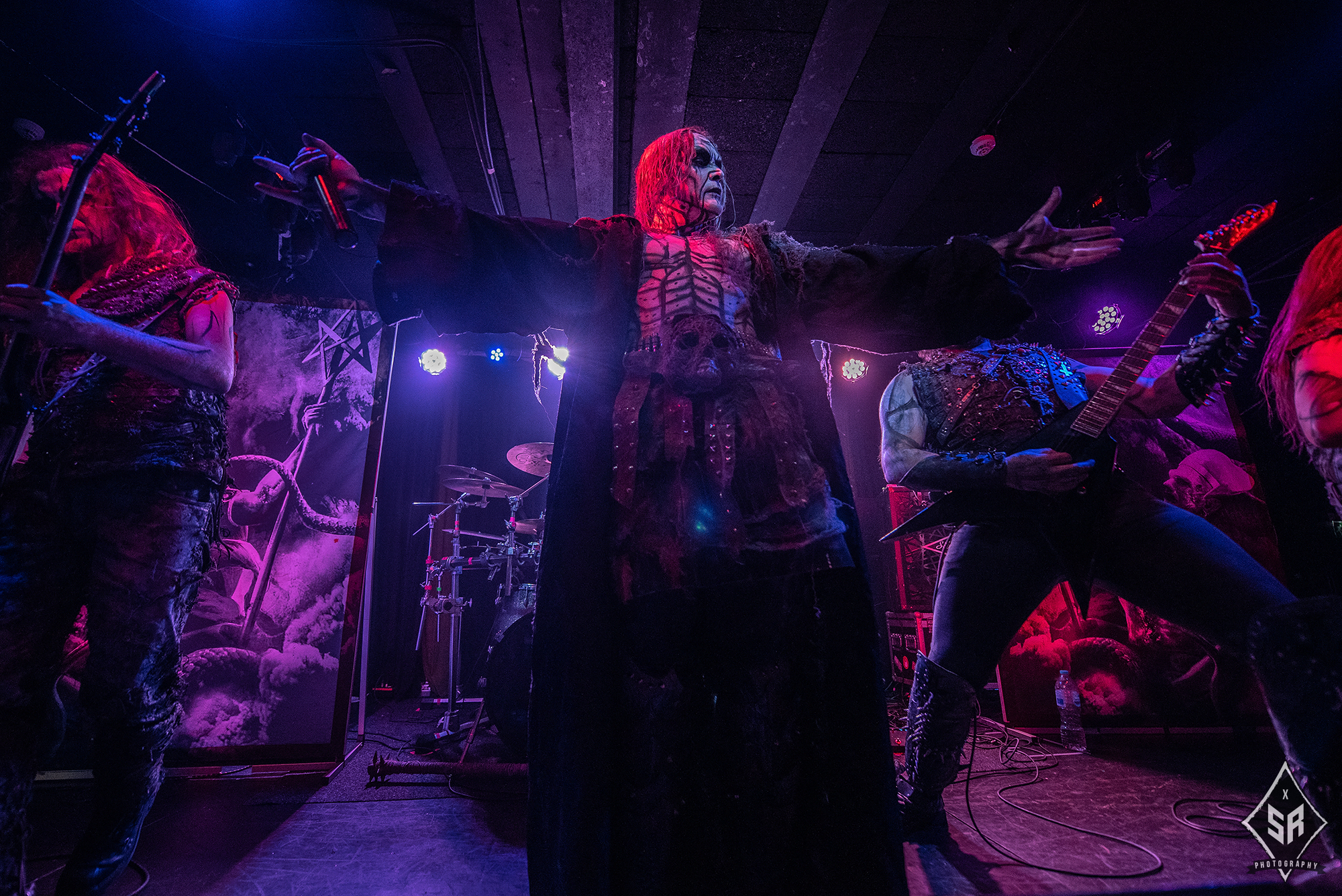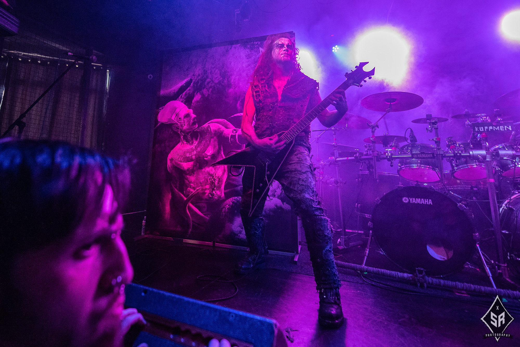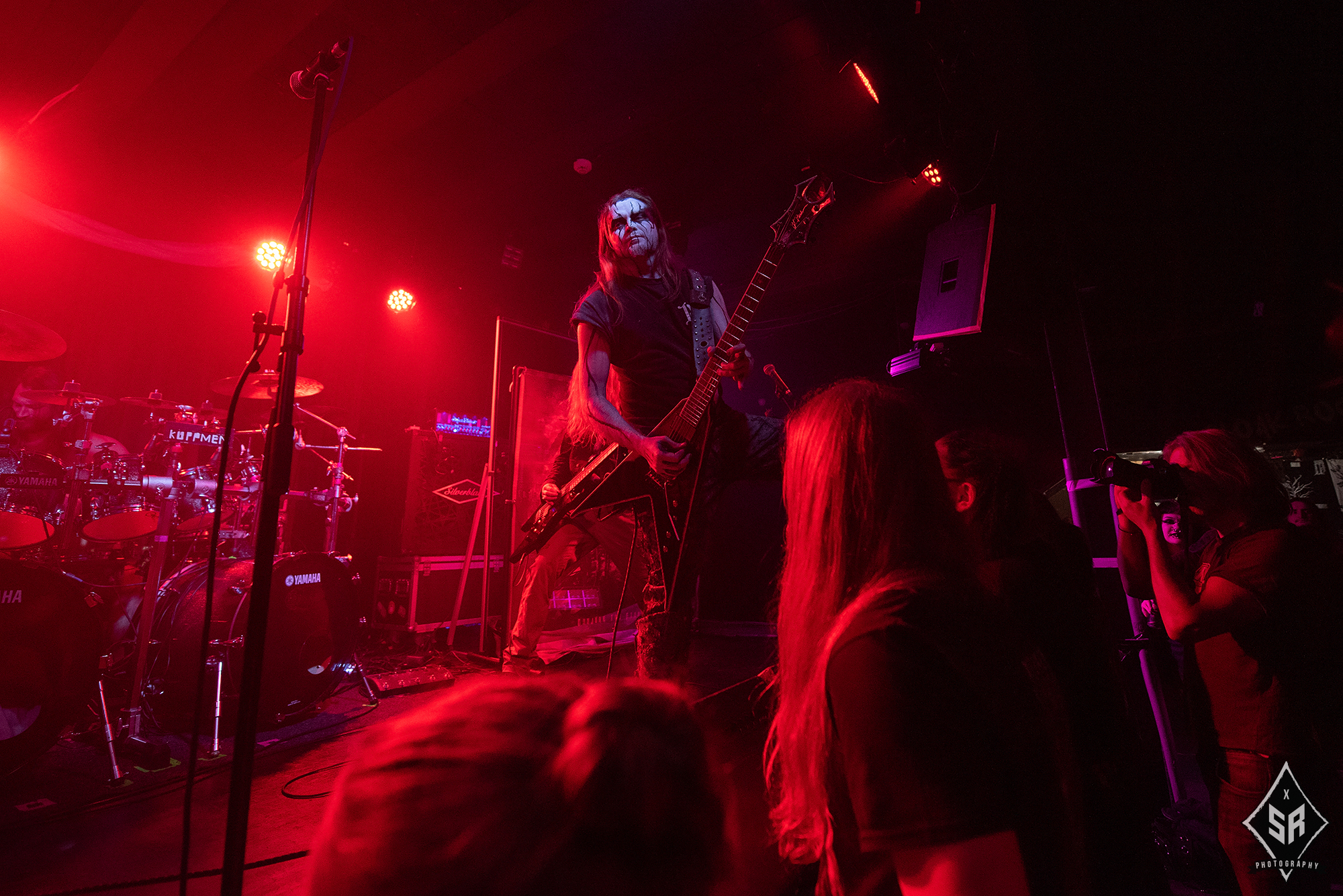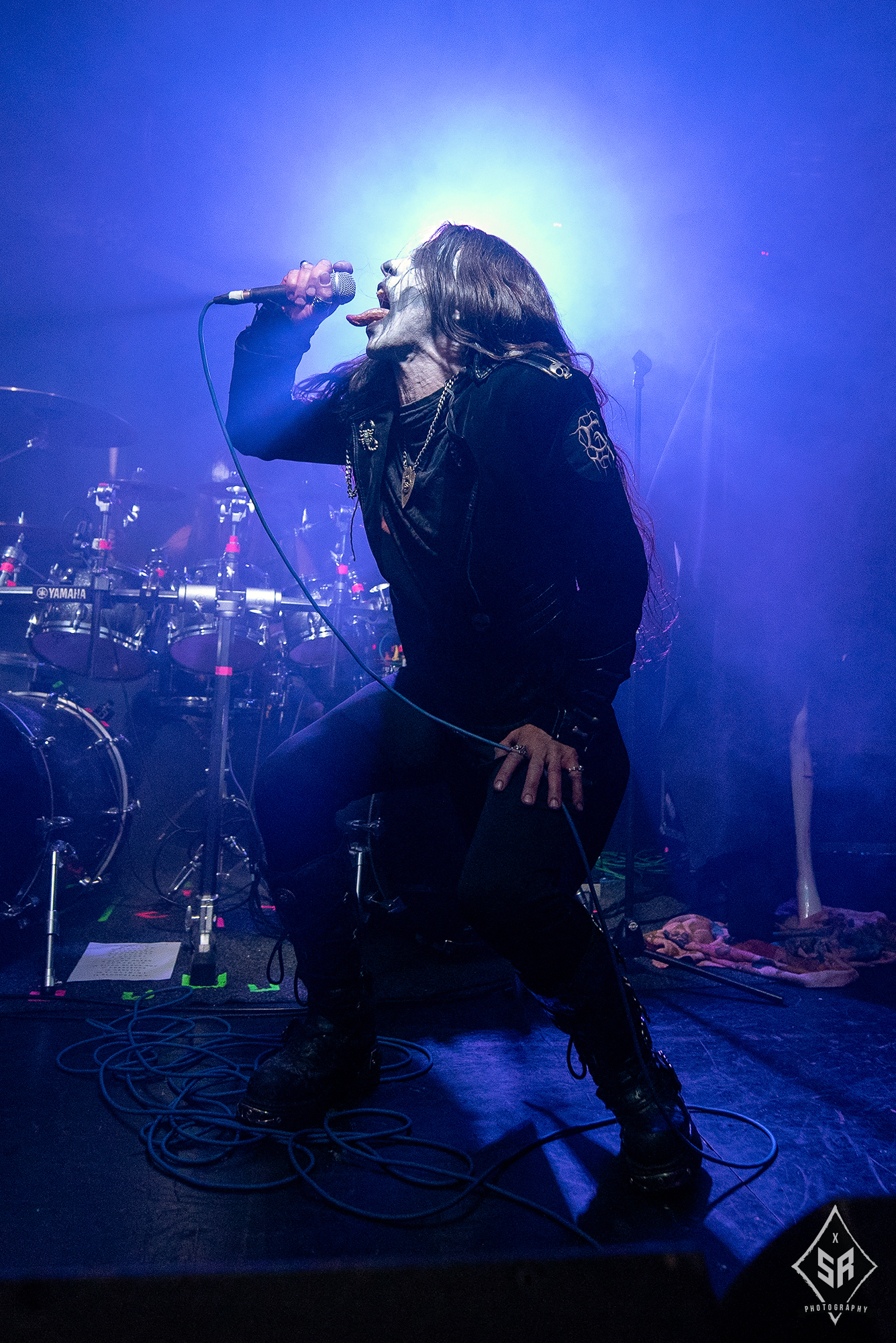 With the orchestration and symphonies maintained and executed to such a high standard, the band craft a nightmarishly wicked soundscape throughout their set and it’s captivating to say the least. The barraging drum-work from Namtar on opening number The Sighting Is A Portent of Doom is a sure fire way to incite chaos, and that it did, Blood Queen‘s theatrical nature showed frontman Seregor in his prime and the execution of Spectral Infantry Battalions sent shivers down the spine as Seregor commanded the stage, replicating a haunting military commander to wonderful effect.