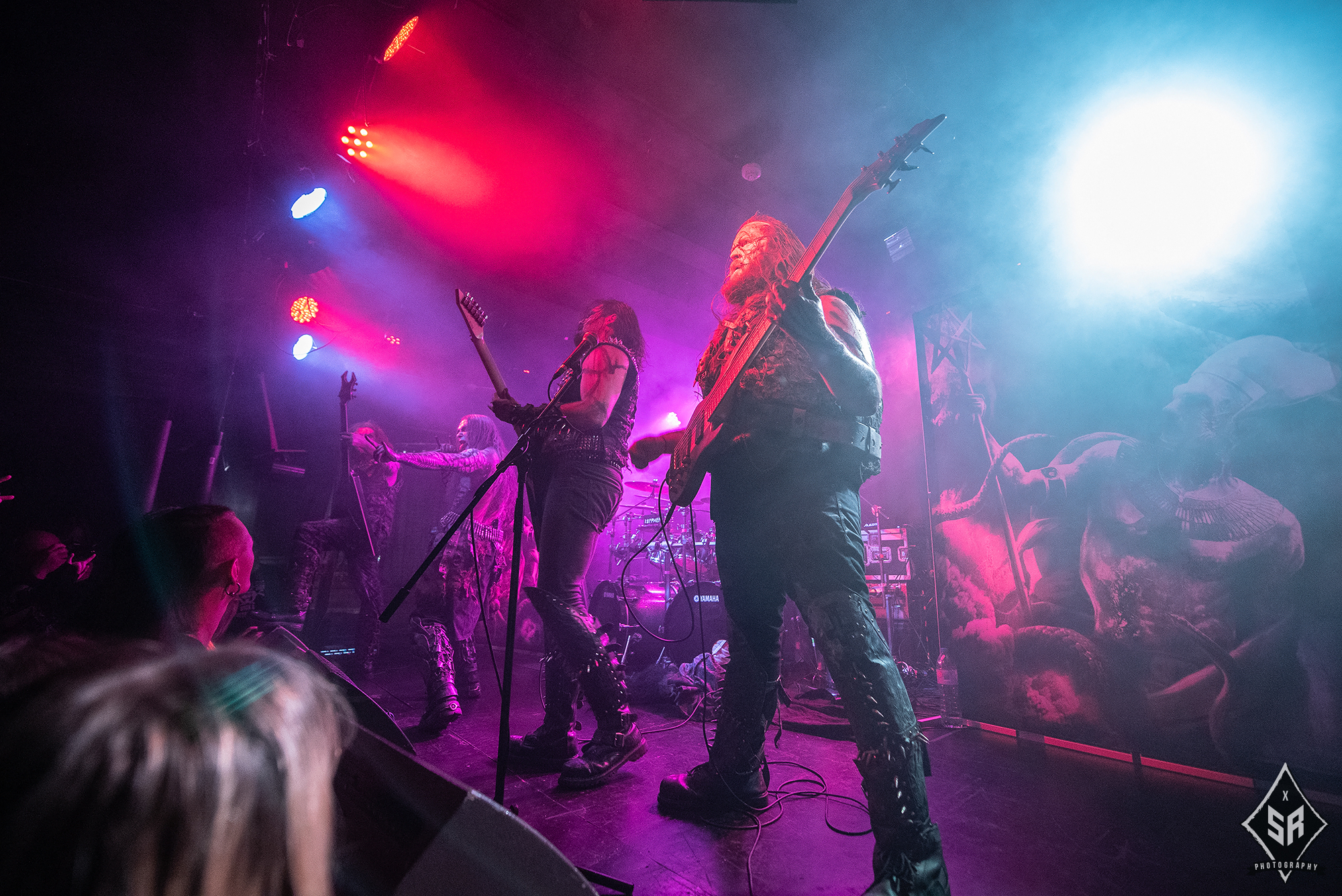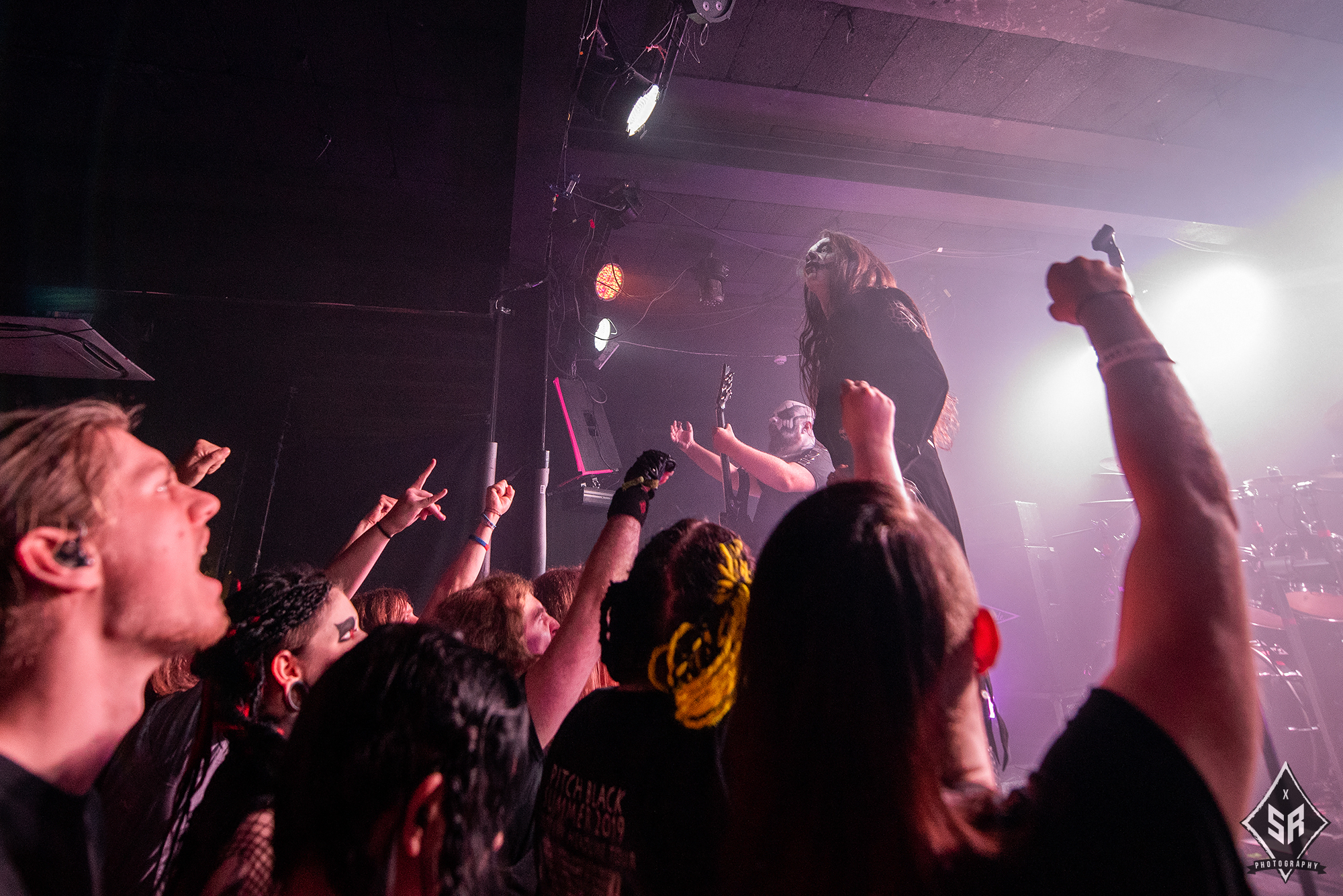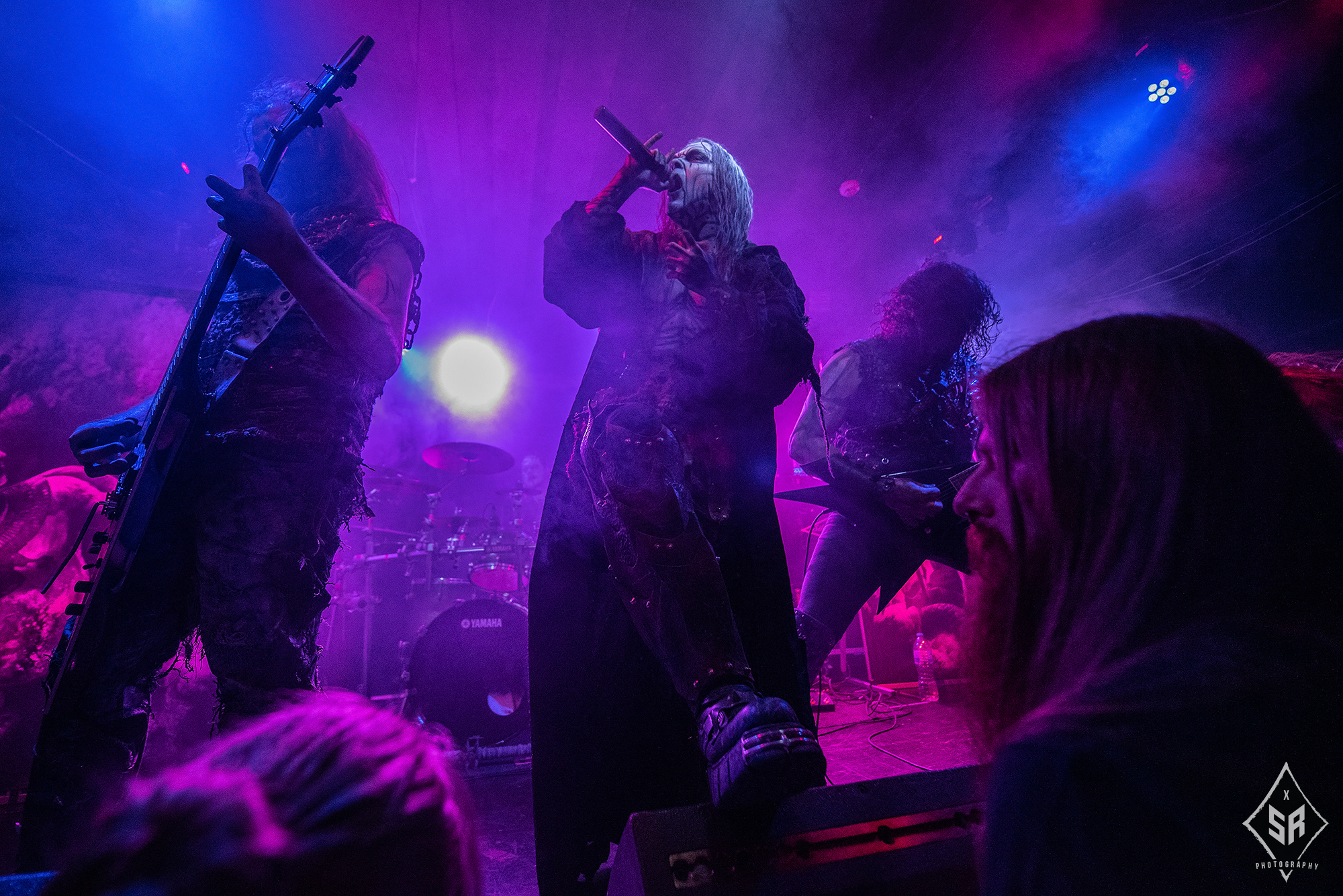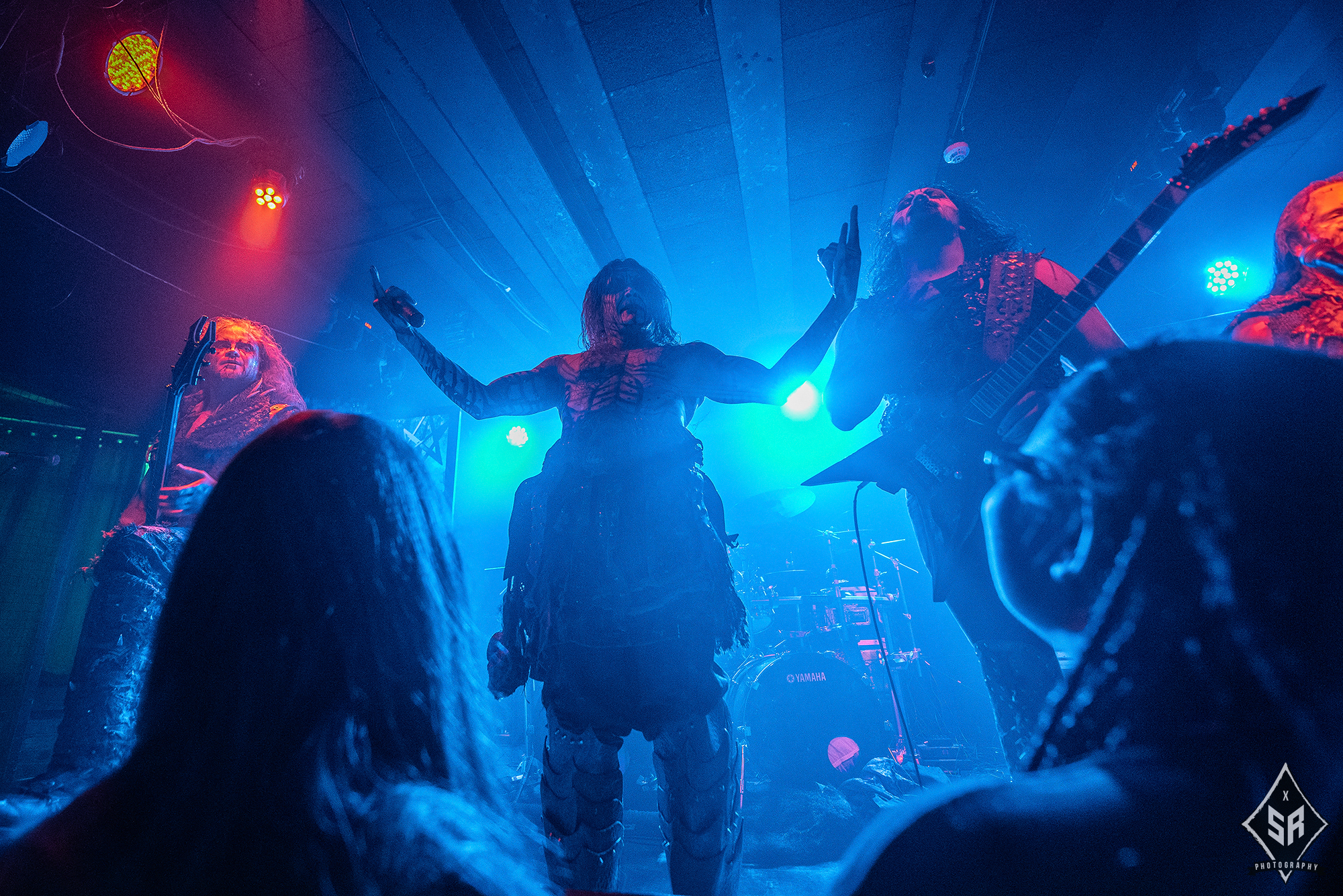 With the orchestration and symphonies maintained and executed to such a high standard, the band craft a nightmarishly wicked soundscape throughout their set and it’s captivating to say the least. The barraging drum-work from Namtar on opening number The Sighting Is A Portent of Doom is a sure fire way to incite chaos, and that it did, Blood Queen‘s theatrical nature showed frontman Seregor in his prime and the execution of Spectral Infantry Battalions sent shivers down the spine as Seregor commanded the stage, replicating a haunting military commander to wonderful effect.