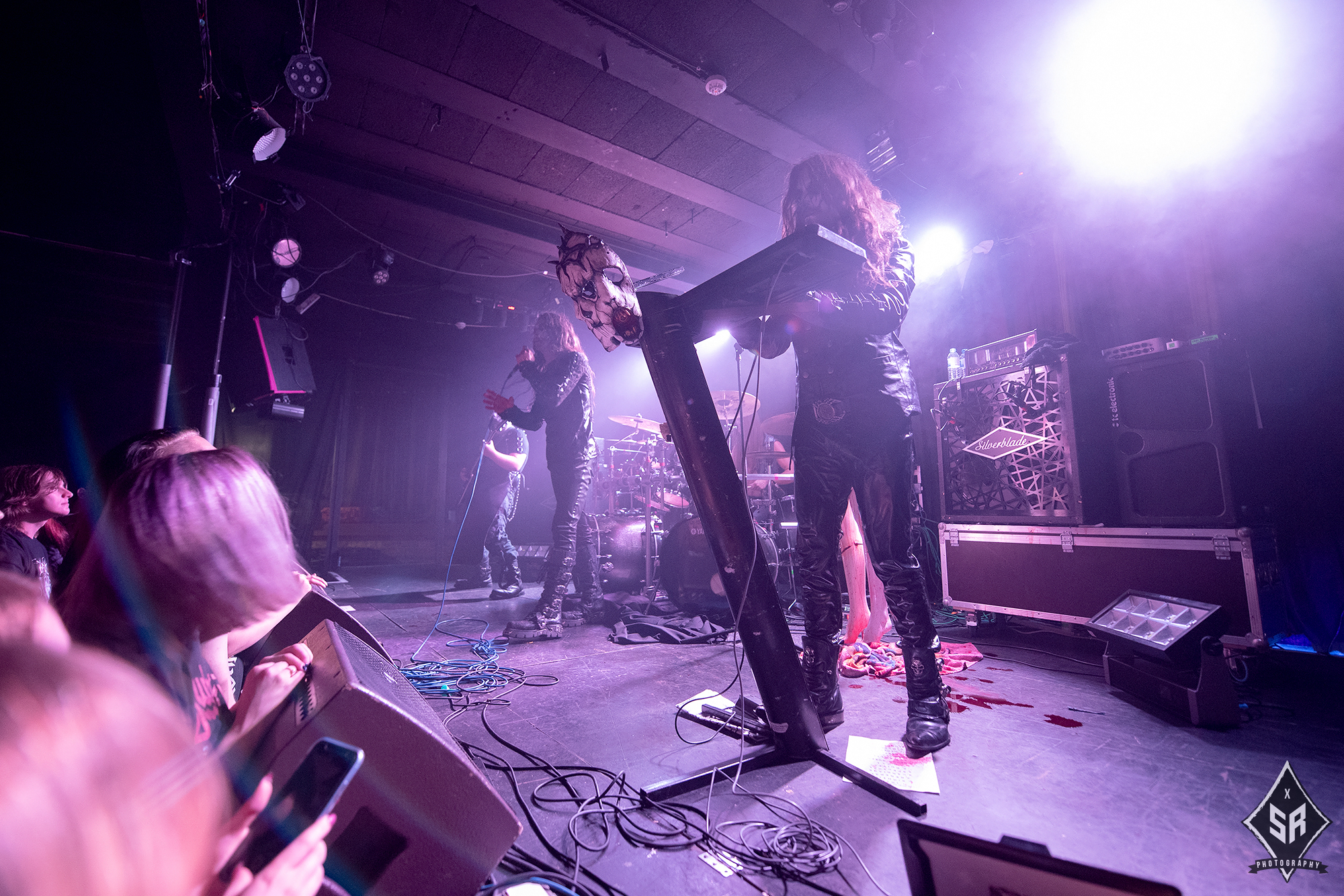 Whilst tonight’s headliners utilise a heavy use of theatrics and symphonics in their live performance, Finland’s WOLFHEART rely on purely their music to do the talking. Although this may be deemed in a negative light, it’s a relief then that WOLFHEART‘s music is just that good, it allows the band to give a brilliant performance as main support. Led by the formidable looking Tuomas Saukkonen, who rarely puts a foot wrong, the Finns power their way through a set that is dripping with both emotion and sheer metallic fury. Breakwater‘s intertwining musical rage with melodic-leaning dual vocals from Saukkonen and bassist Lauri Solvonen in the chorus proves to be a highlight of the set, but across their performance, they contentiously impress. The Hunt‘s beautiful crooning guitar melodies, performed expertly, compliment the up-tempo swagger dominates the bulk of the song whilst Zero Gravity sounds enormous in the live environment. WOLFHEART‘s brand of metal is immersive enough on record, but live, it’s a whole new beast entirely. They may lack the visual spectacle of the evening’s headliners, but rest assured, WOLFHEART can trade punches with the best of them.