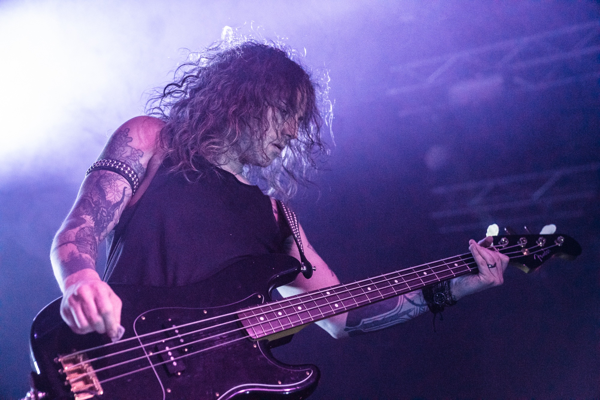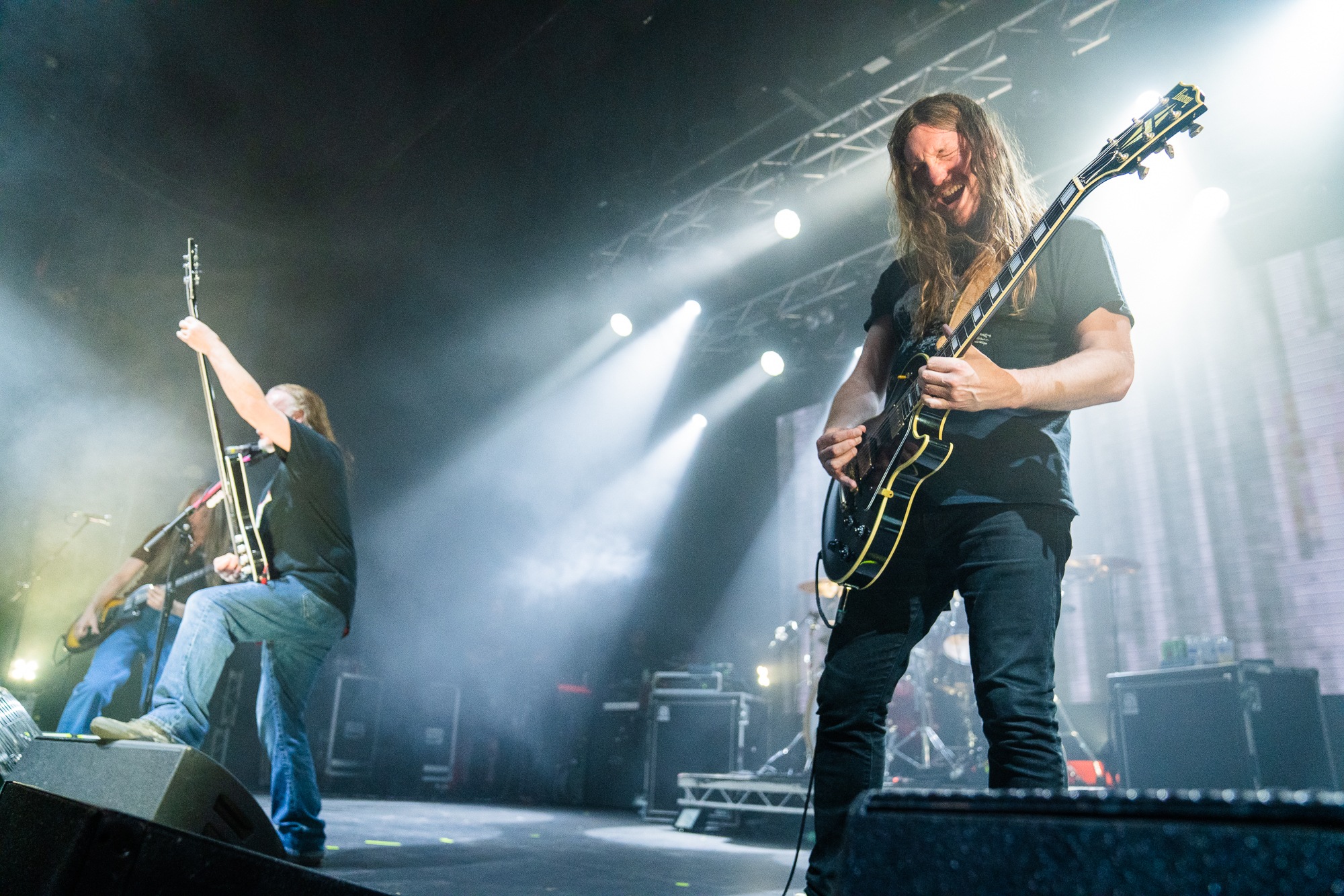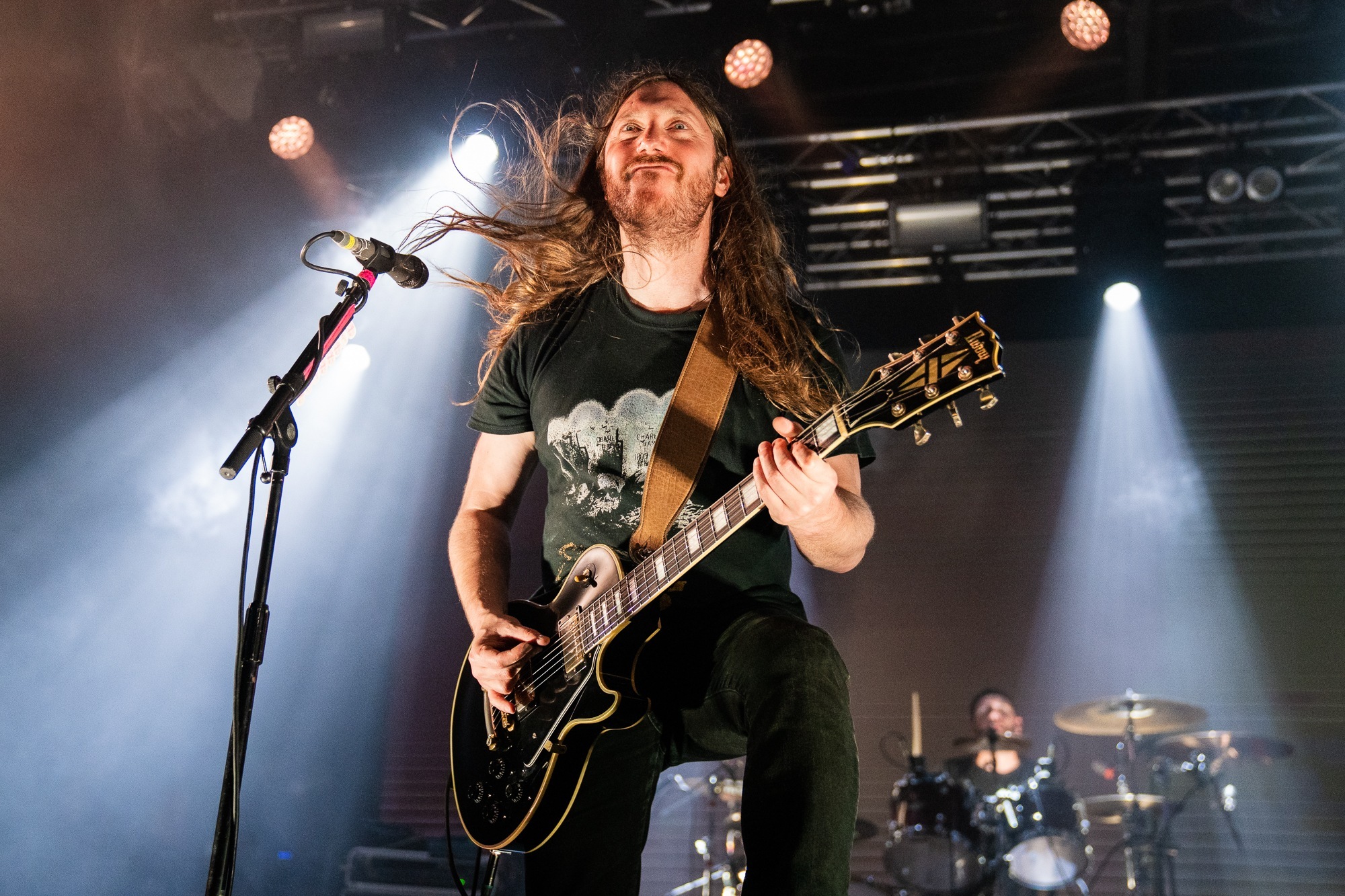 Every cut is surgically precise, backdropped by a display that cycles through their logo, images of war, medical scenes or, as in This Mortal Coil, religious symbols too. “Everyone feeling fantastic? We’re gonna piss on your parade and play one from Swansong,” Walker grins before Tomorrow Belongs to Nobody; it doesn’t get the stated reaction as the place goes wild for it, the band’s grins plain to see. The crowd is a great mix of newer and old fans alike, and everyone knows every song from Heartwork classics to the more modern Torn Arteries, all of which show a band who’ve not only written, but continue to write some of the best death metal around. Their glee is apparent throughout, Walker quipping drily regularly as they tear through a mammoth, seventeen song set. And why wouldn’t you be grinning when over a thousand people have made their way to the show despite rail strikes, to celebrate with one of the best to ever do it?