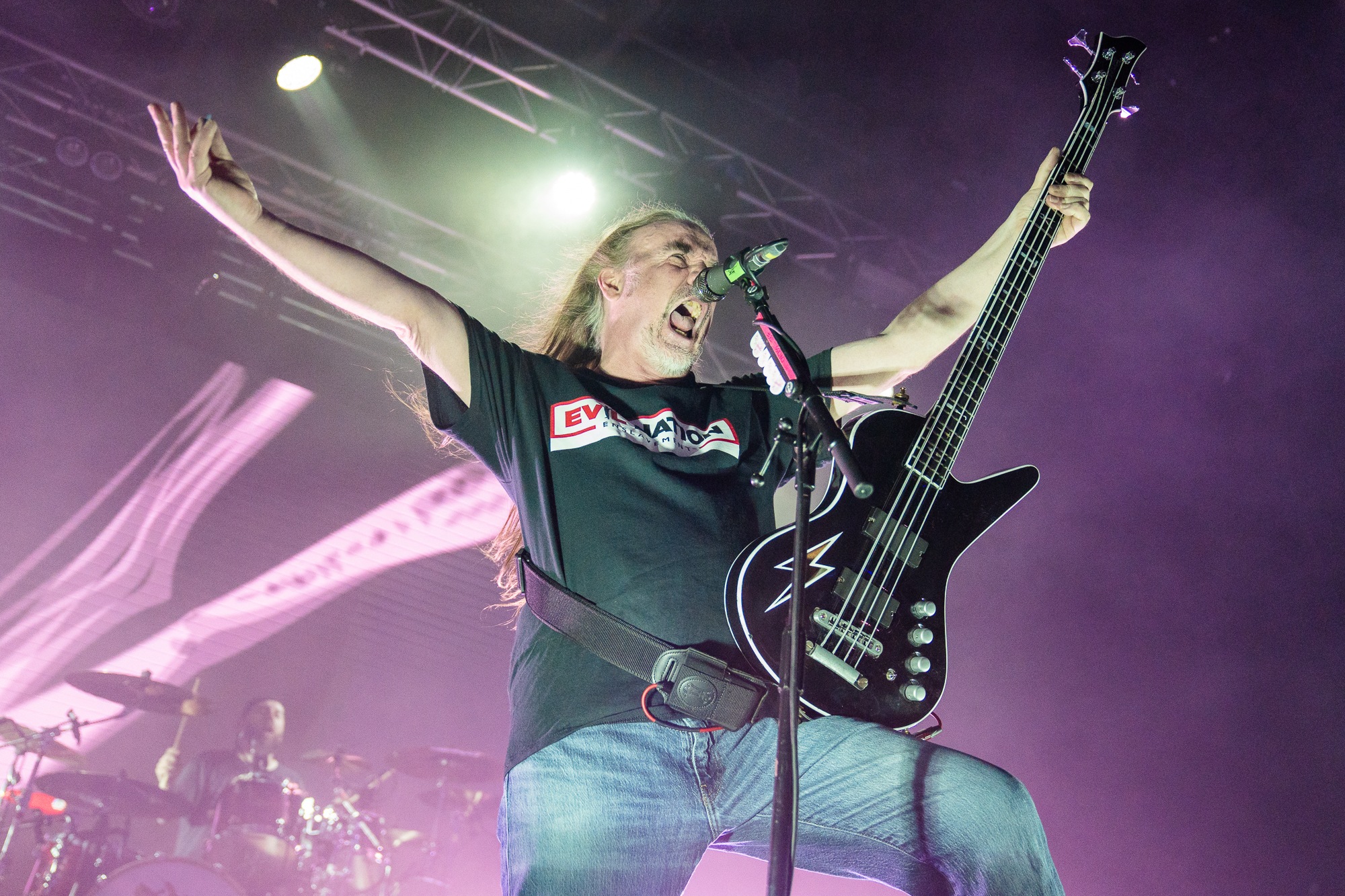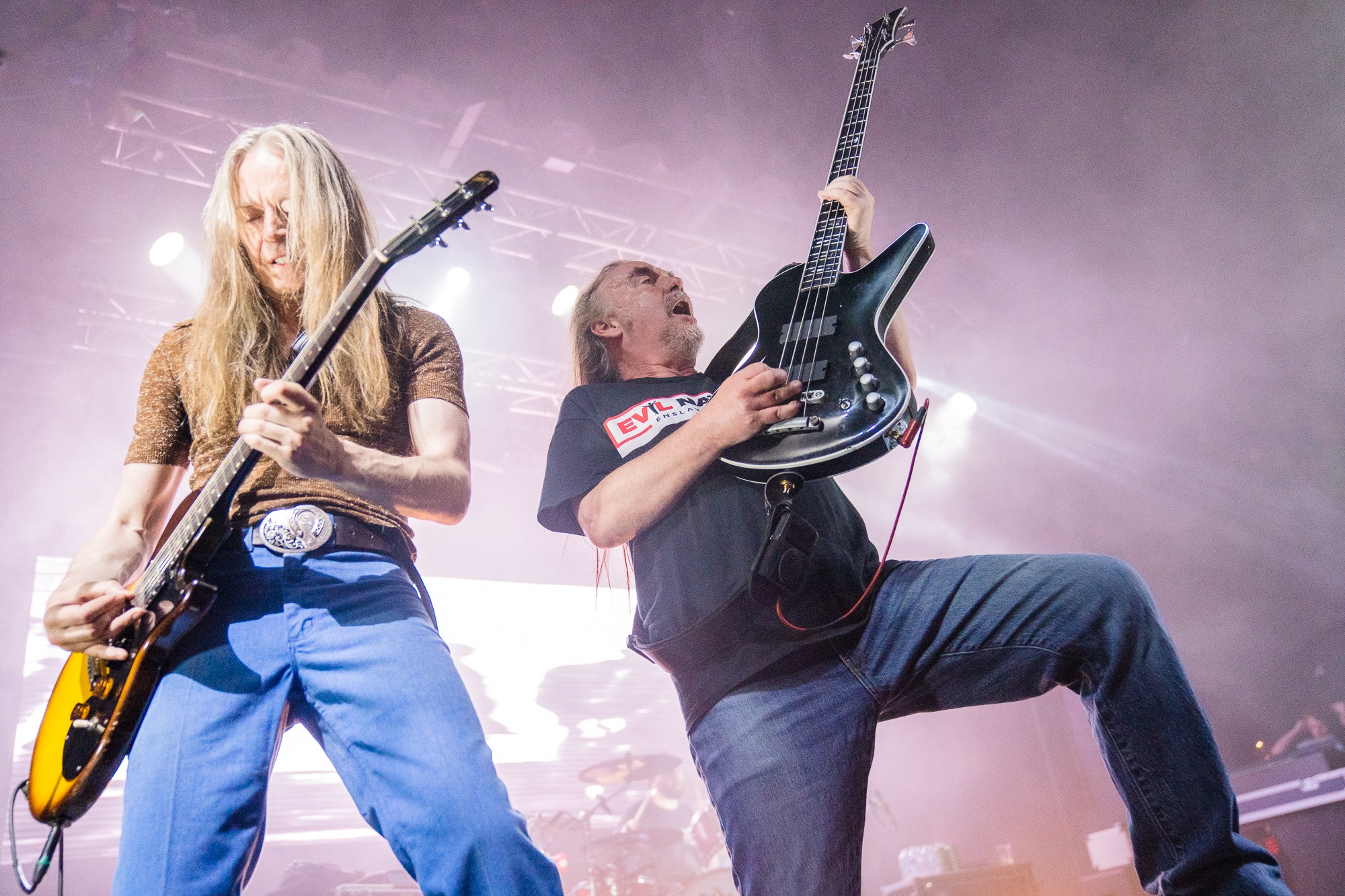 CARCASS, though, are simply unstoppable. The death metal legends are on their first club tour since the 90s and along the way they’ve been grindcore, helped pioneer melodeath and more, all the while being one of the tightest, best live acts around. Four decades in and they can still put bands half their age to shame, with a discography that’s untouchable. Opening with Buried Dreams from the seminal Heartwork, the band waste no time at all in seizing the crowd in their palms. Kelly’s Meat Emporium and Incarnated Solvent Abuse follow in quick succession, bassist/vocalist Jeff Walker commending the throng with ease as he points his bass like a rifle and snarls through each song, with Bill Steer peeling off those incredible, unmistakable riffs.