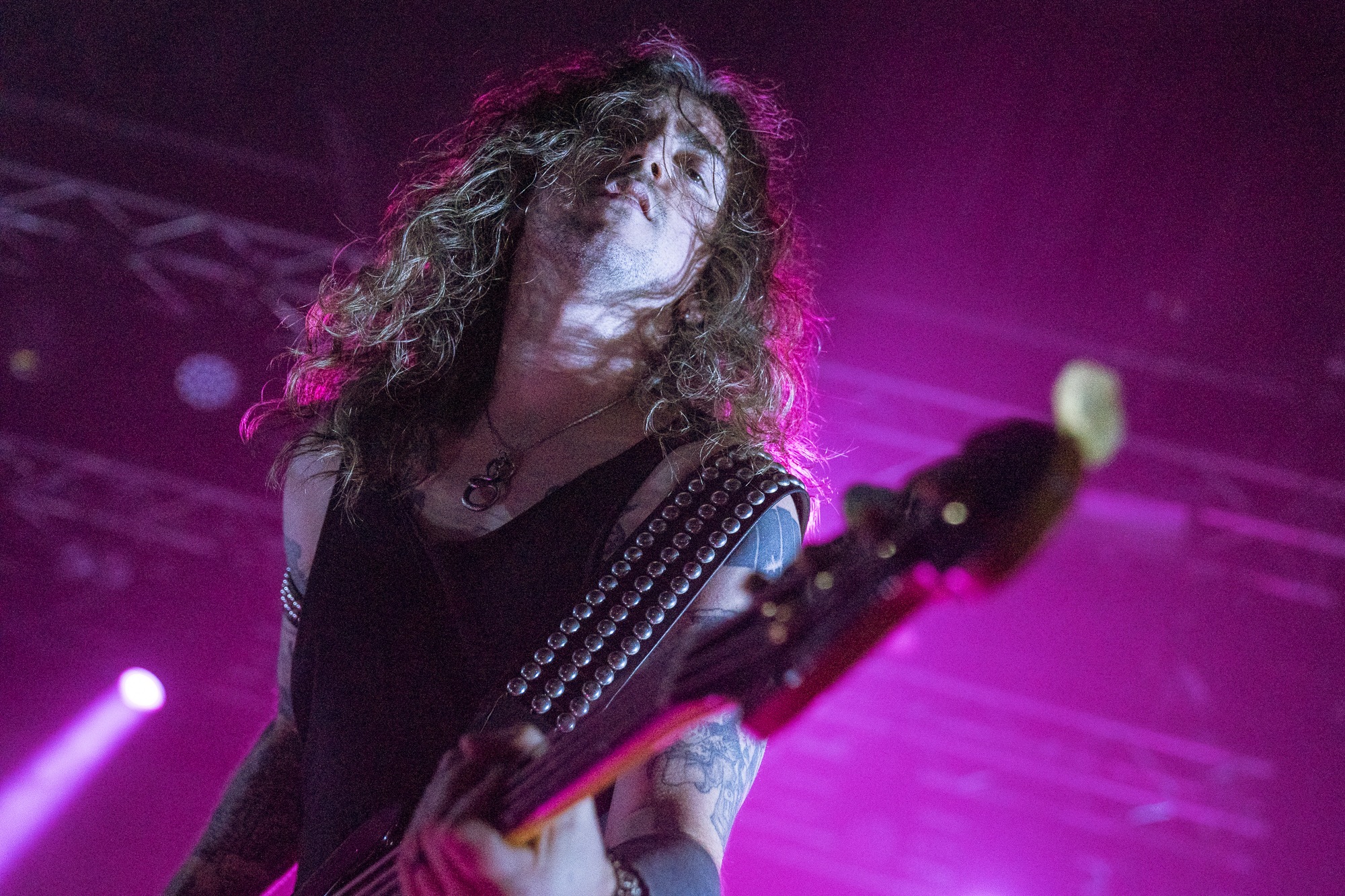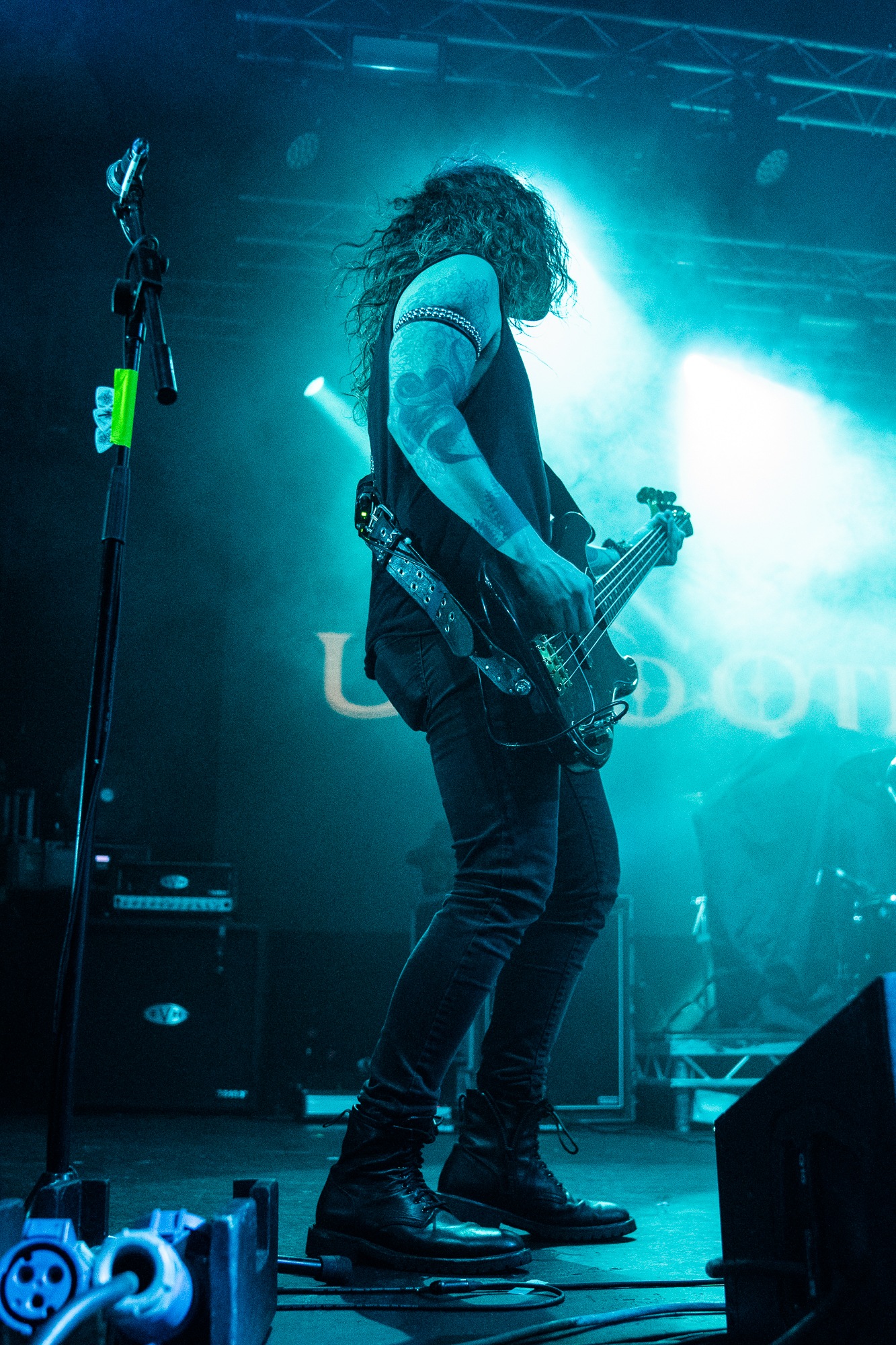 UNTO OTHERS have been tipped as the next big thing in goth-tinged heavy metal for some time. It’s easy to see why tonight; clad in leather and sunglasses the band tear through their heavily TYPE O NEGATIVE and even IRON MAIDEN indebted metal, with cries of “ough!” aplenty and deep, almost monotonous vocals that convey a laconic sense of melancholy. They ooze goth cool, stalking the stage and encouraging the static, but cheering crowd. There’s plenty of unreleased material played alongside already beloved cuts like Nightfall and When Will God’s Work Be Done, it all slotting together with ease. While the music is morose, the crowd love it as they clap and whoop between songs and it’s plenty upbeat to get heads nodding and feet tapping. They might not have the extremity of either other band tonight, but they’ve definitely got the tunes.