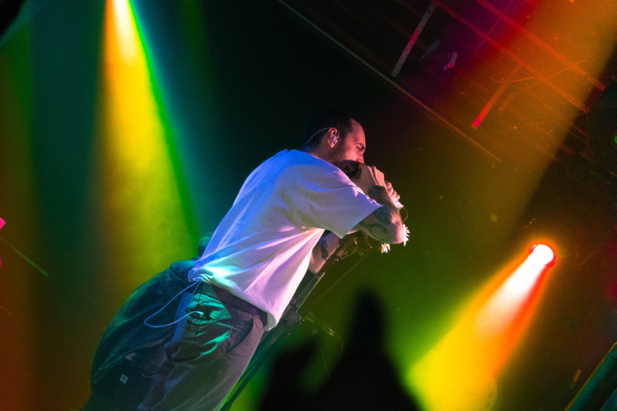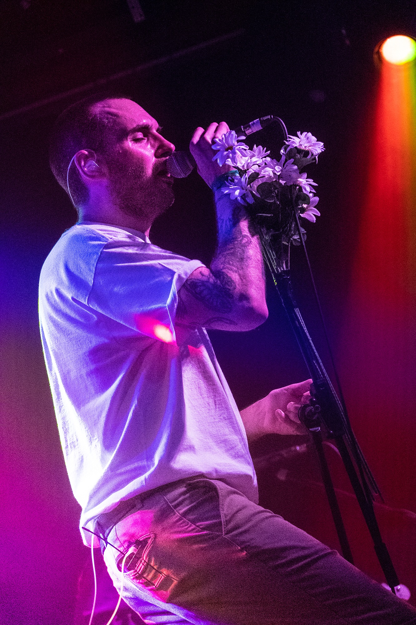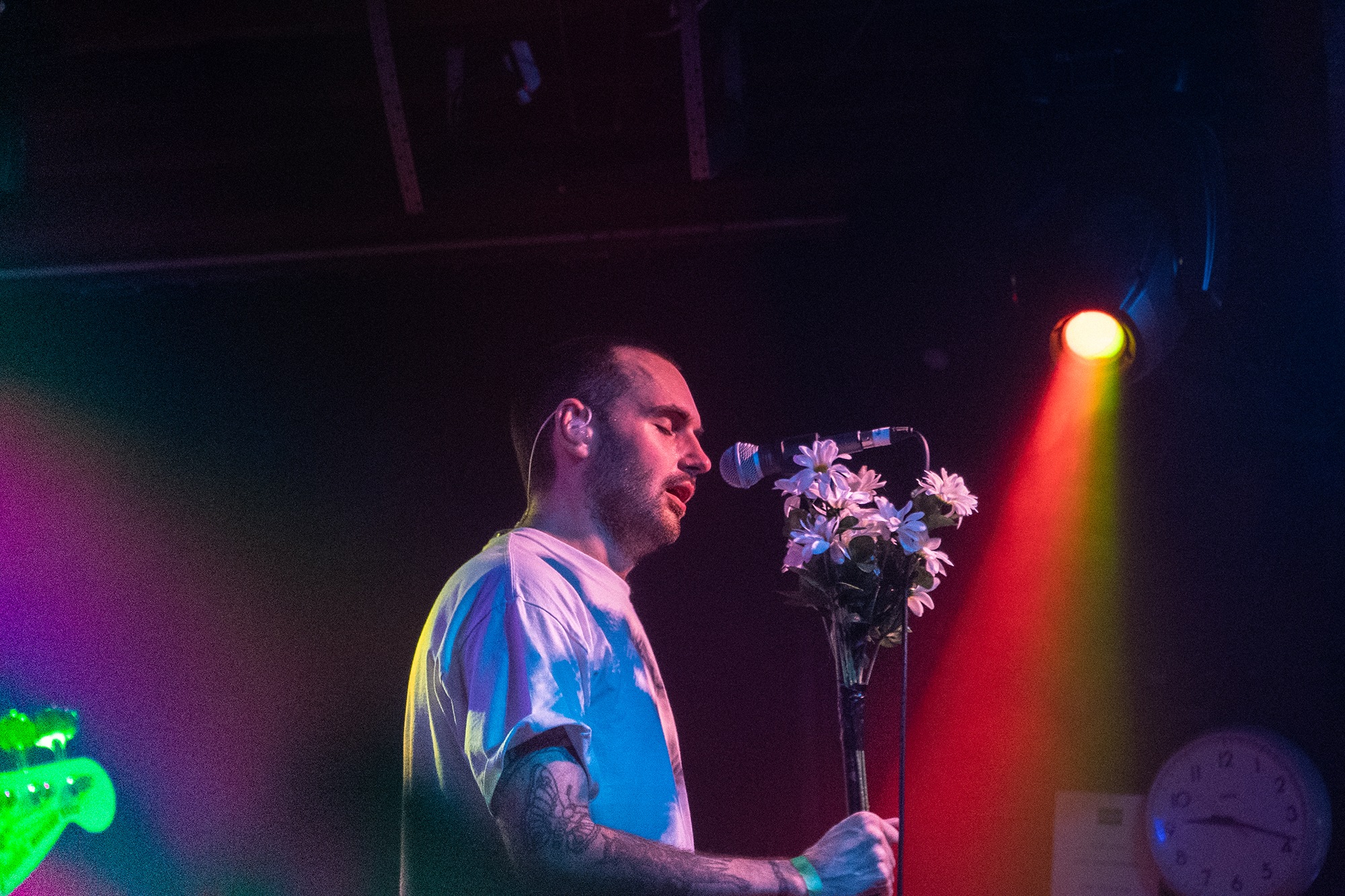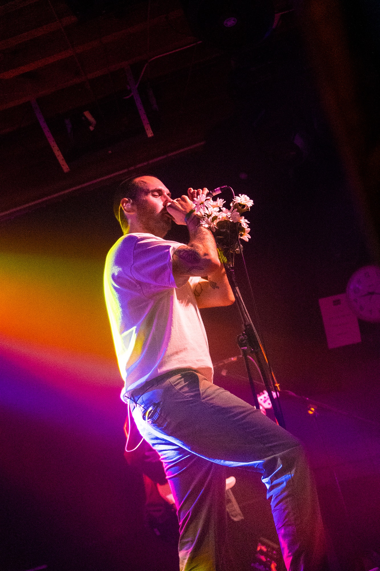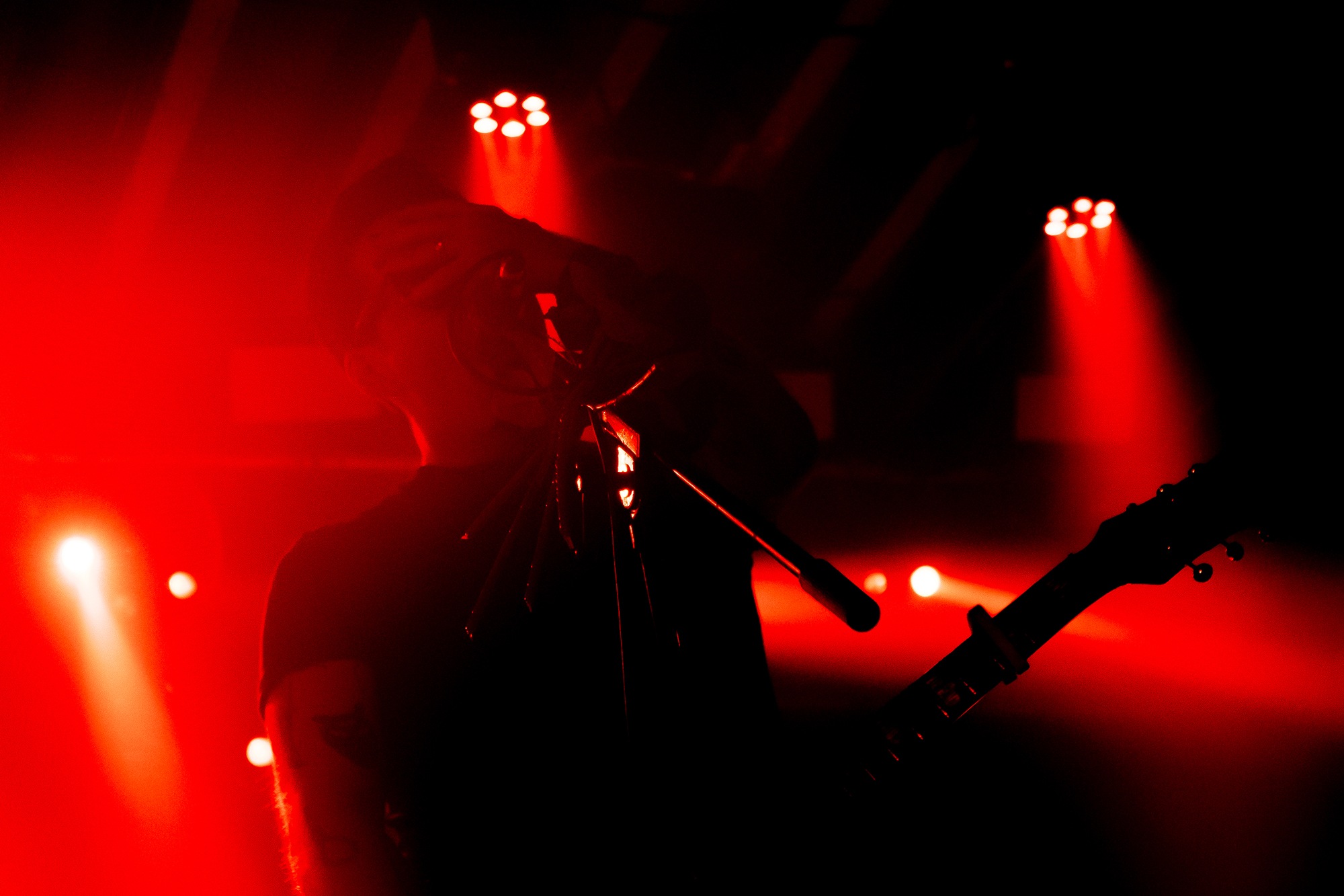 Taking the stage to a hero’s welcome, emotional hardcore five-piece CASEY kick straight into their latest single Great Grief, whose anthemic chorus gets the crowd bouncing. Second single Atone is next for its live debut, another soaring anthem that keeps the energy high before the band return to their pre-hiatus catalogue. Gripping a mic stand wrapped with a bouquet, frontman Tom Weaver cuts a unique silhouette, a commanding vocalist but agonisingly vulnerable and endearingly unsure. His soft clean vocals and angst-filled screams are the star of the show tonight, while his asides in between songs are achingly sincere, indicating the gratefulness the band feels to be back performing in front of such an engaged audience.