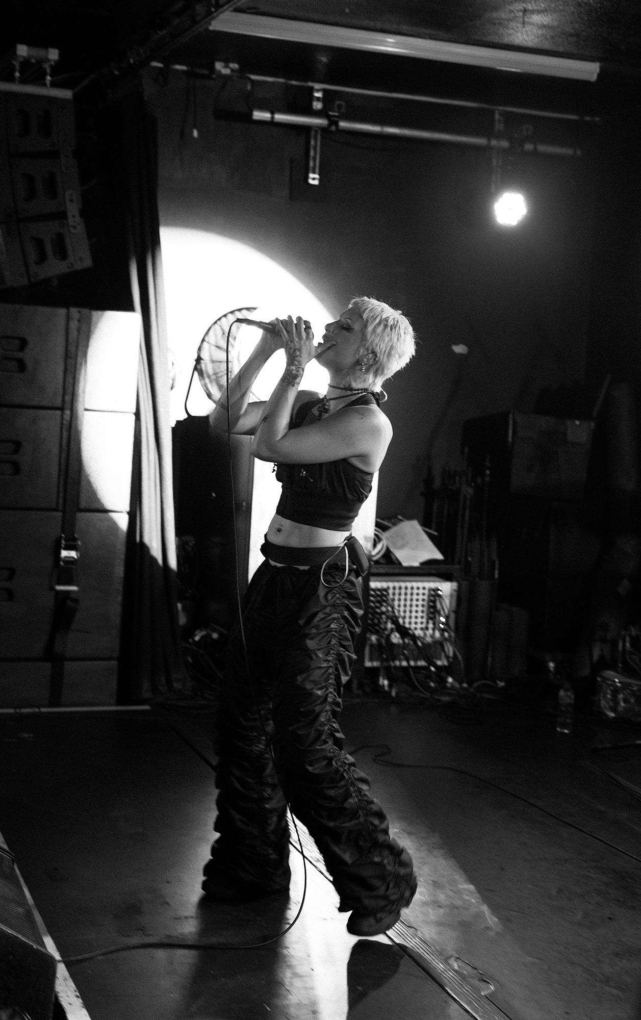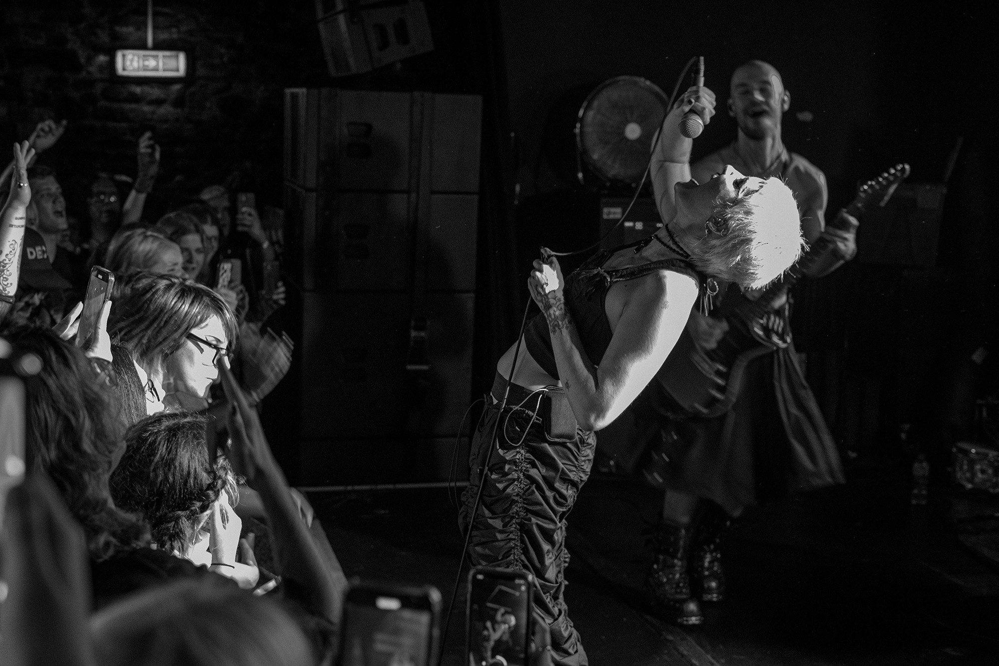 After an uncomfortable wait in what must be one of the unseasonably hottest rooms in Wales, it is finally time for CASSYETTE to take to the stage and she wastes absolutely no time in getting stuck in. Her energy is turned up to a solid 11 right from the beginning and she does nothing but accelerate from there. She performs with a ferocious tenacity, beginning her set with the pounding bass drum of Dear Goth, which is closely followed by Behind Closed Doors – the combination of these together is just begging for the crowd to lose their minds and they happily oblige. There is an eerie silence as the breakdown builds for the latter, as the crowd willingly prepares themselves for carnage. Accompanied by CASSYETTE’s guttural screams, they willingly throw themselves around the room, those that don’t wish to get involved pressing against the walls as the pit envelopes the entire room.