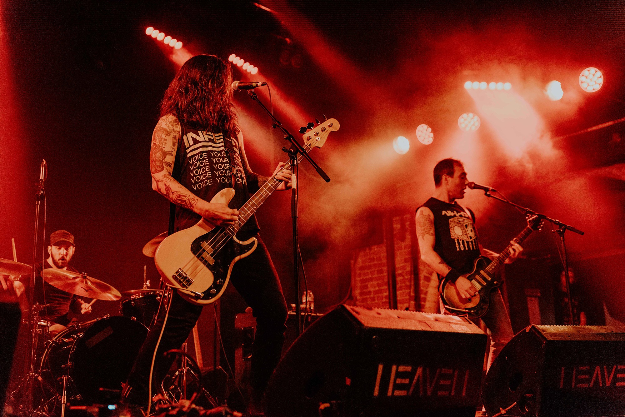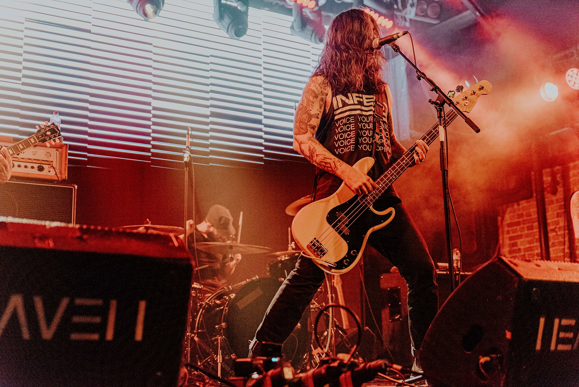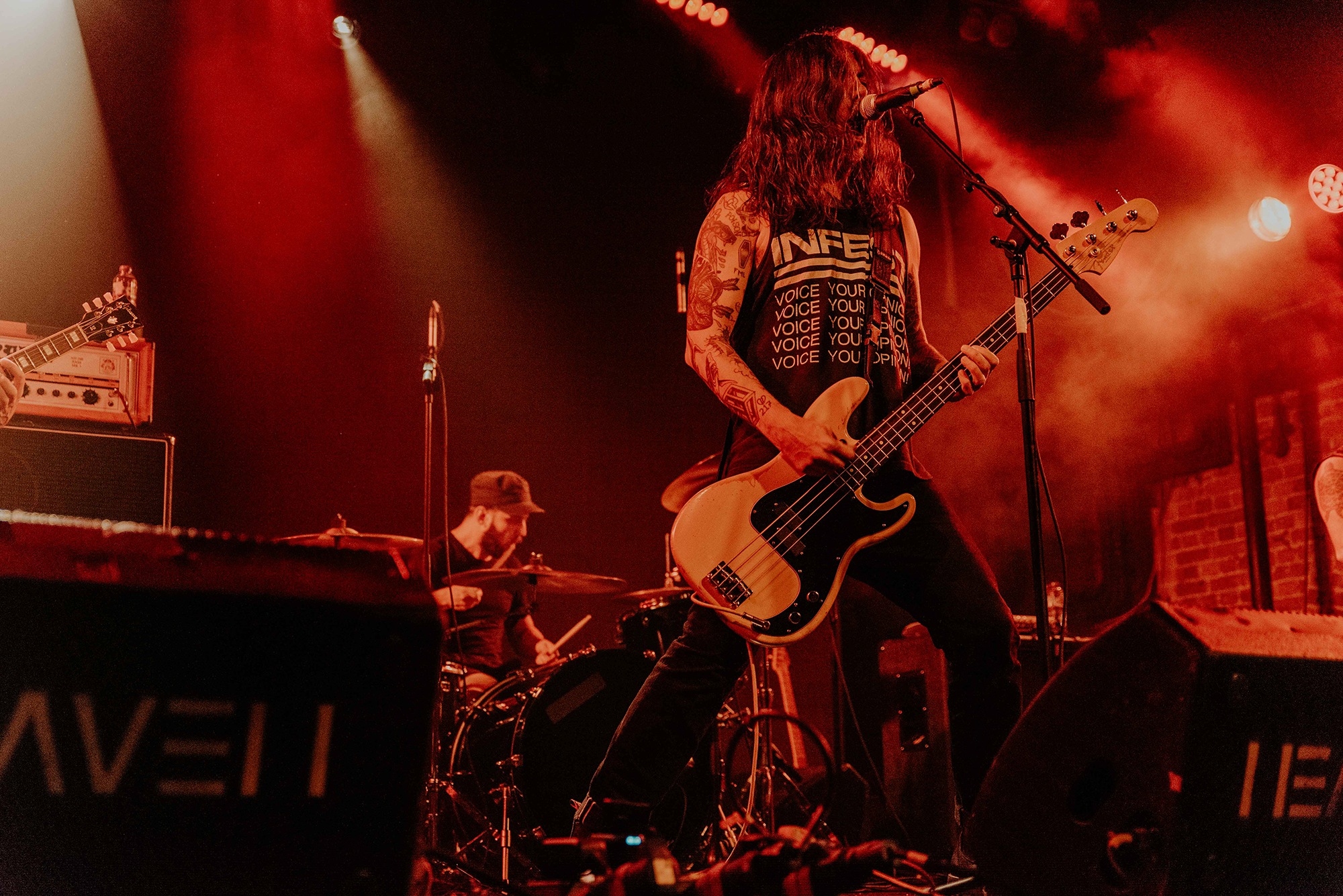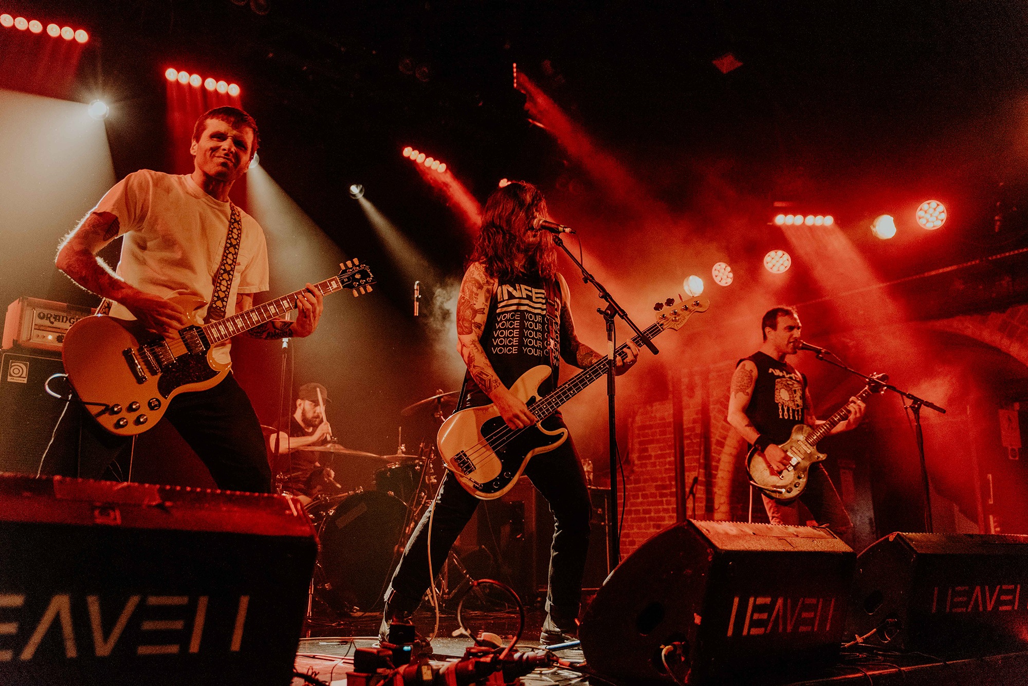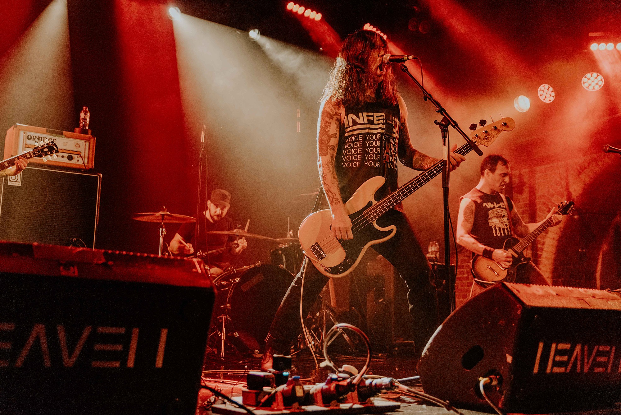 If there’s one band that could follow that display though, it’s CAVE IN. From the moment they kick into New Reality and follow it with the serpentine Blood Spiller, the crowd are putty in the quartet’s hands. They complete the opening trio with the sludge-laden Searchers Of Hell, playing with the biggest grins and the kind of consummate ease borne of decades in each other’s company. “I see you dusty old fucks,” laughs bassist Nate Newton, gleefully taunting, daring their older fans to mosh (“but you won’t, because you’re old”) before older number The End Of Our Rope Is A Noose rumbles forth. Its bluesy swagger is simply undeniable and thanks to those accusations of people not moshing – no matter how unserious – there’s more than a little neck movement when the titanic groove hits. They slow things down with the bluesy, almost country Reckoning but it’s no less intense; the four exude a magnetic charisma and love of performing that even with a fairly sparse lightshow they can be sure that all eyes are on them.