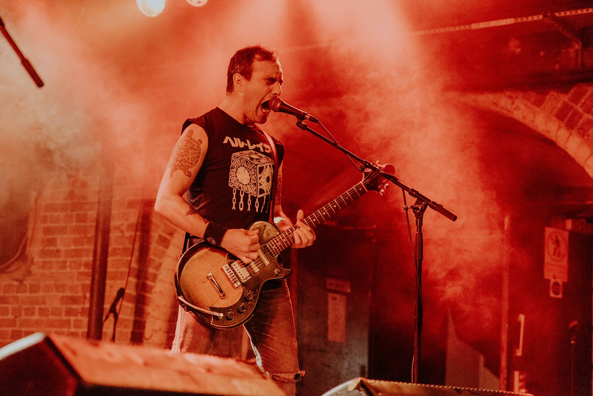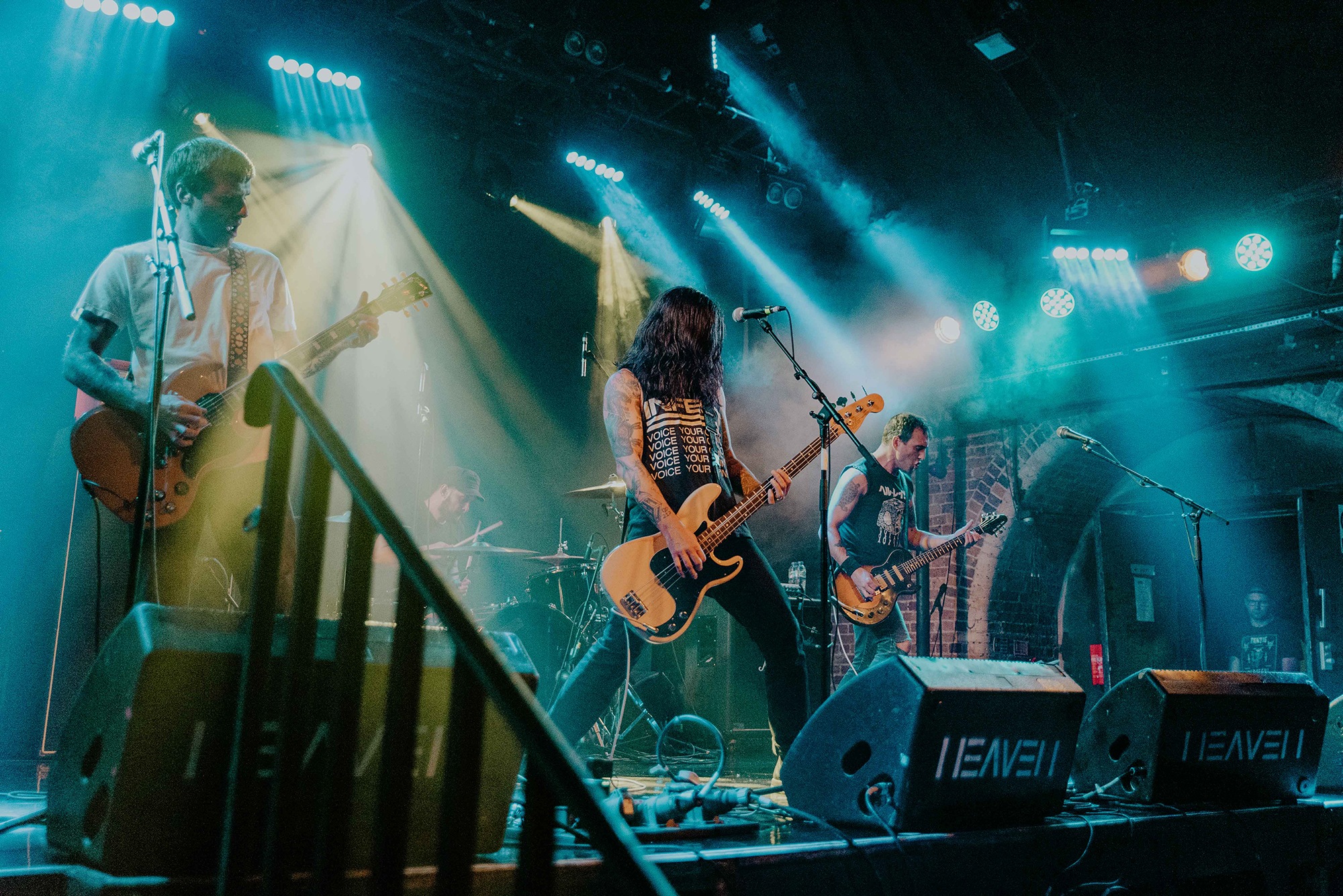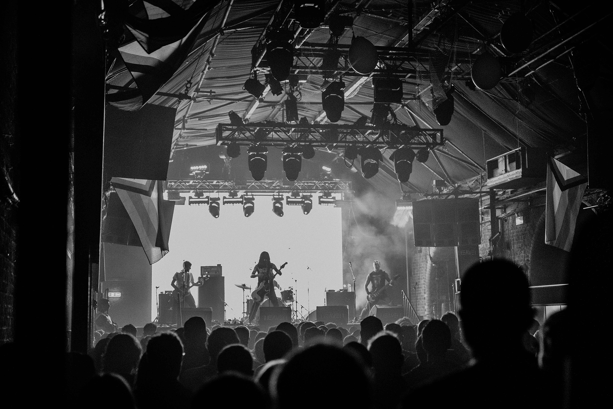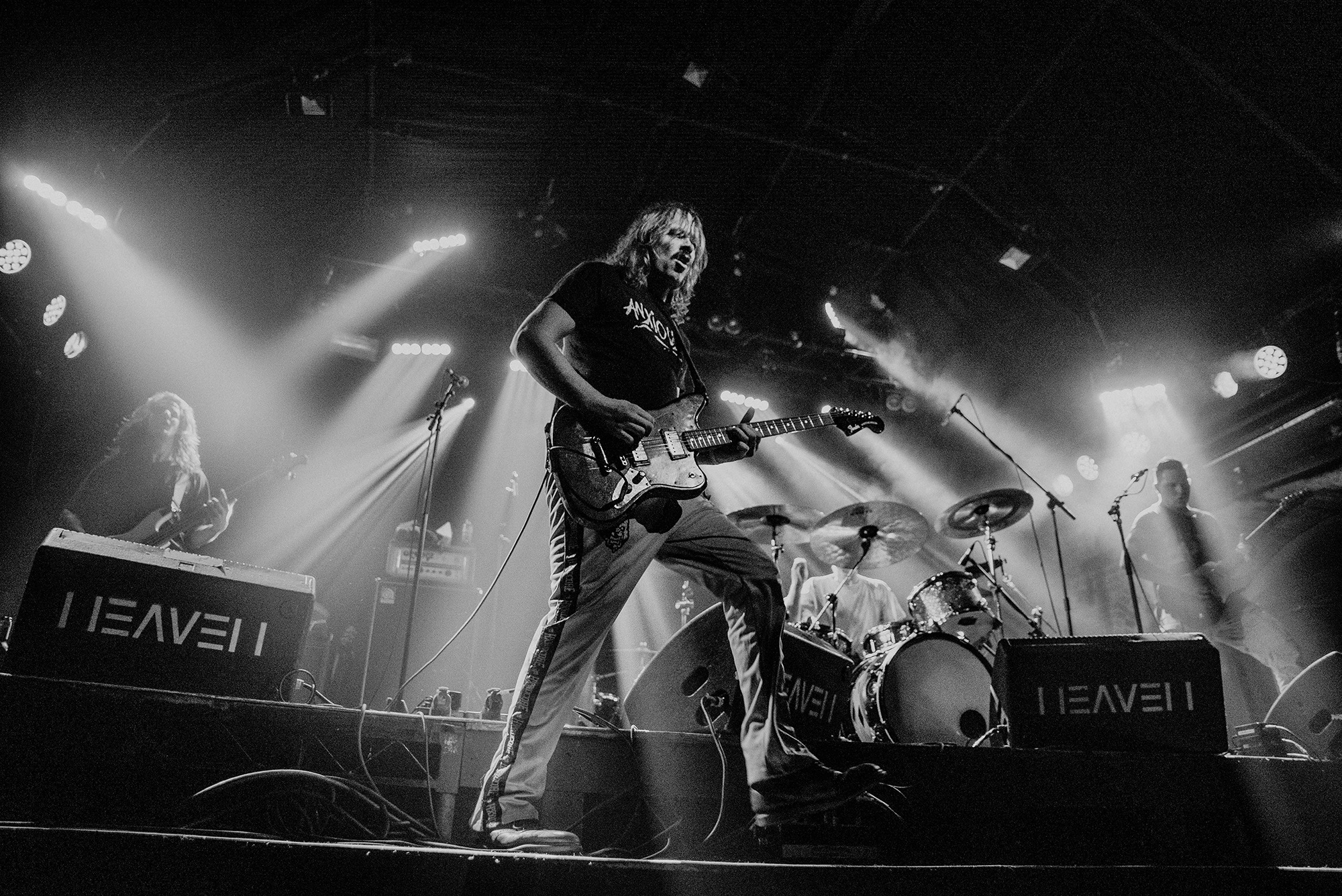 Opening for them are Belgian post-metallers STAKE, whose sludgy groove captures as much grunge as it does tectonic post-metal shifts. Songs flow between gentler atmospheric passages to more urgent moments directed by frenetic drum fills. It’s quickly apparent, unfortunately, that the vocal mix leaves something to be desired. In softer moments, the melodies are for the most part easily audible, but when they employ screams during moments the band are going full-bore, they barely cut through at all. Songs from latest album Love, Death And Decay like Fuck My Anxiety, however, are exactly as anthemic and compelling as they are on record, serpentine guitars twist and turn above rumbling bass and the grooves, when they lock in, are nothing short of spellbinding. Their progressive sludge occasionally feels a little like MASTODON on some really bad acid; the biggest problem is the quiet main vocals; even between song patter is indecipherable, with only one song name being truly audible in their entire set. Minus minor sound woes, it’s an excellent showing from one of Belgium’s top post-metal bands that deserve far more love on these shores.