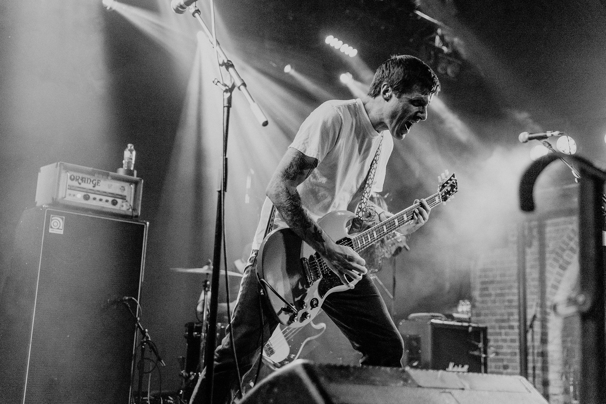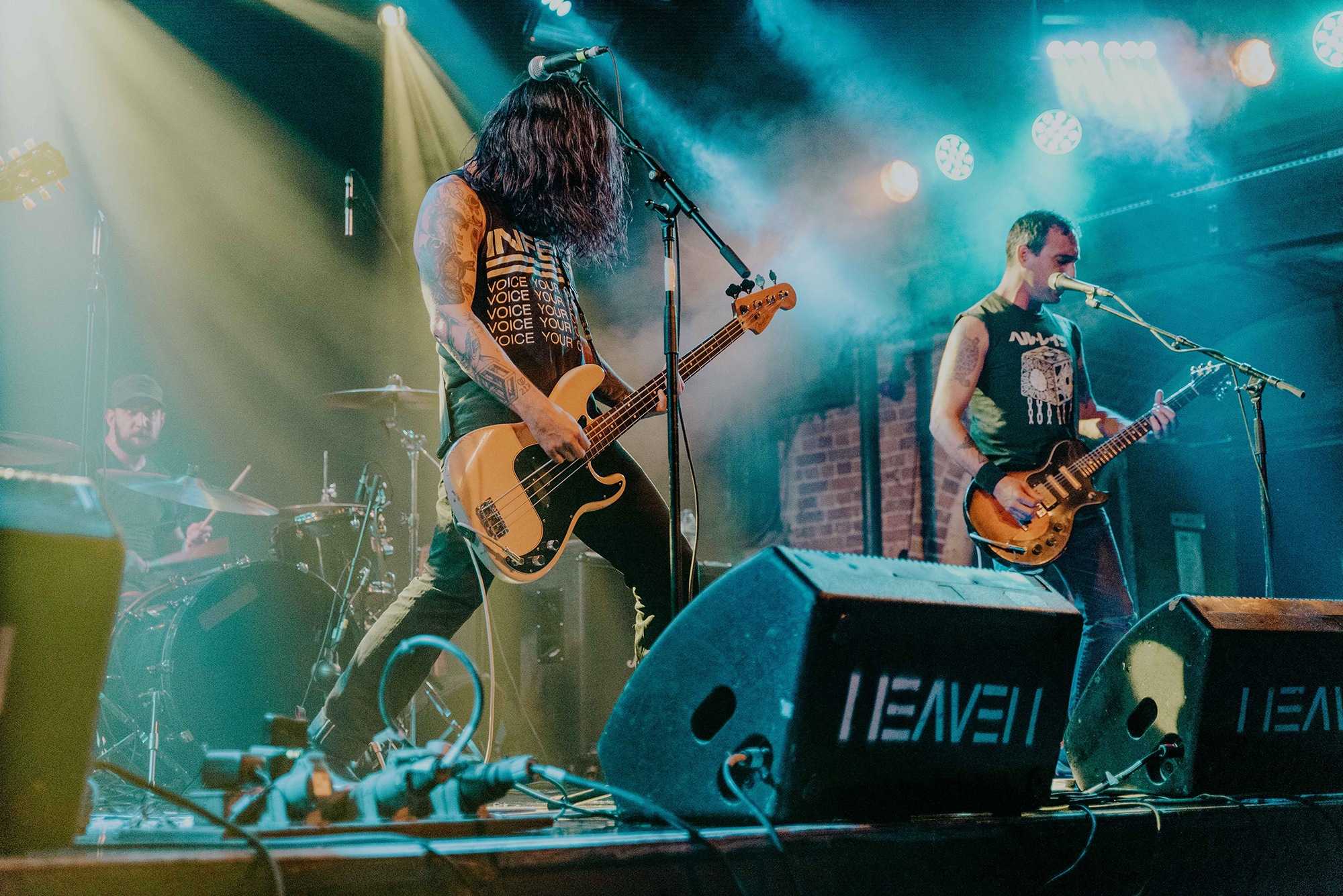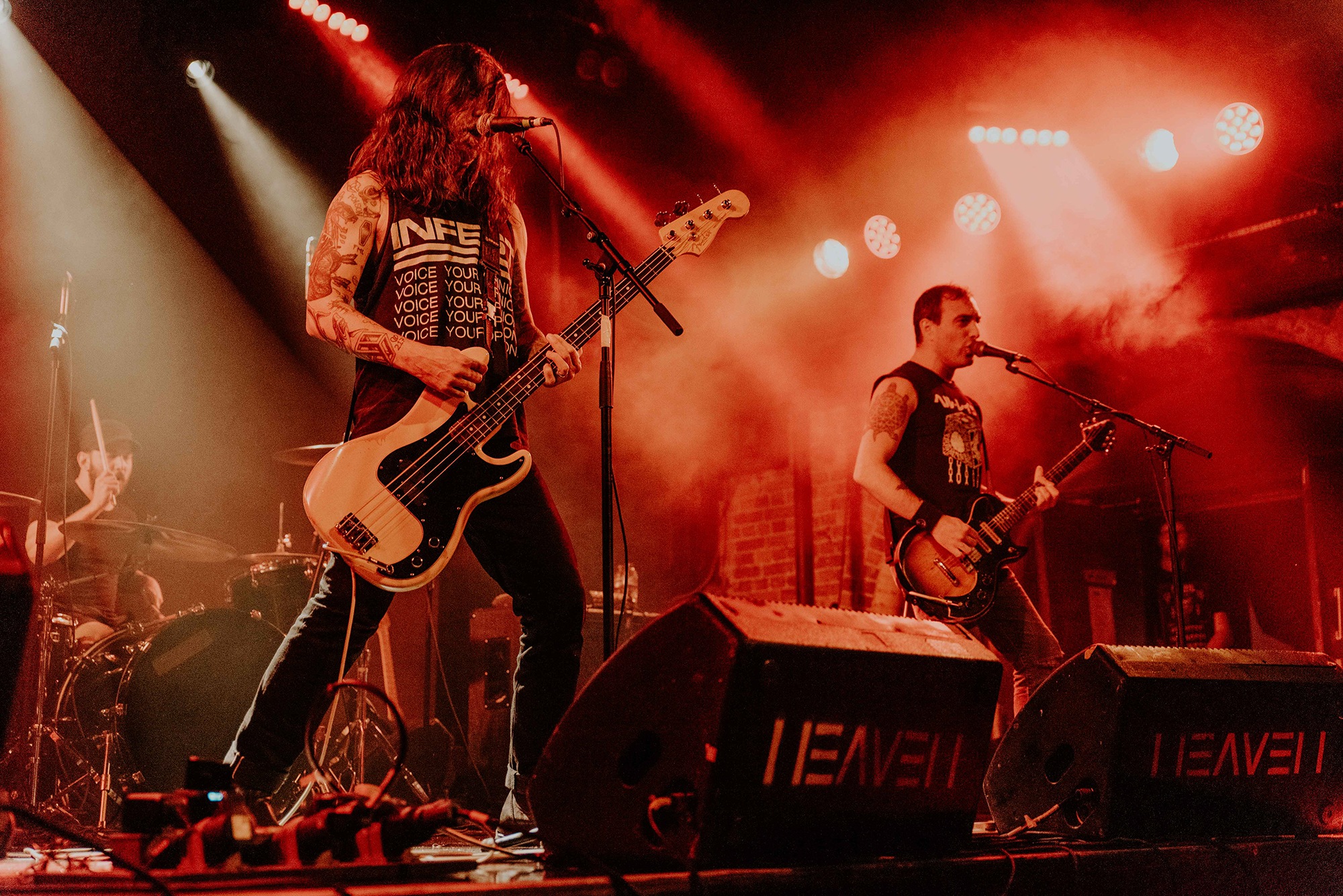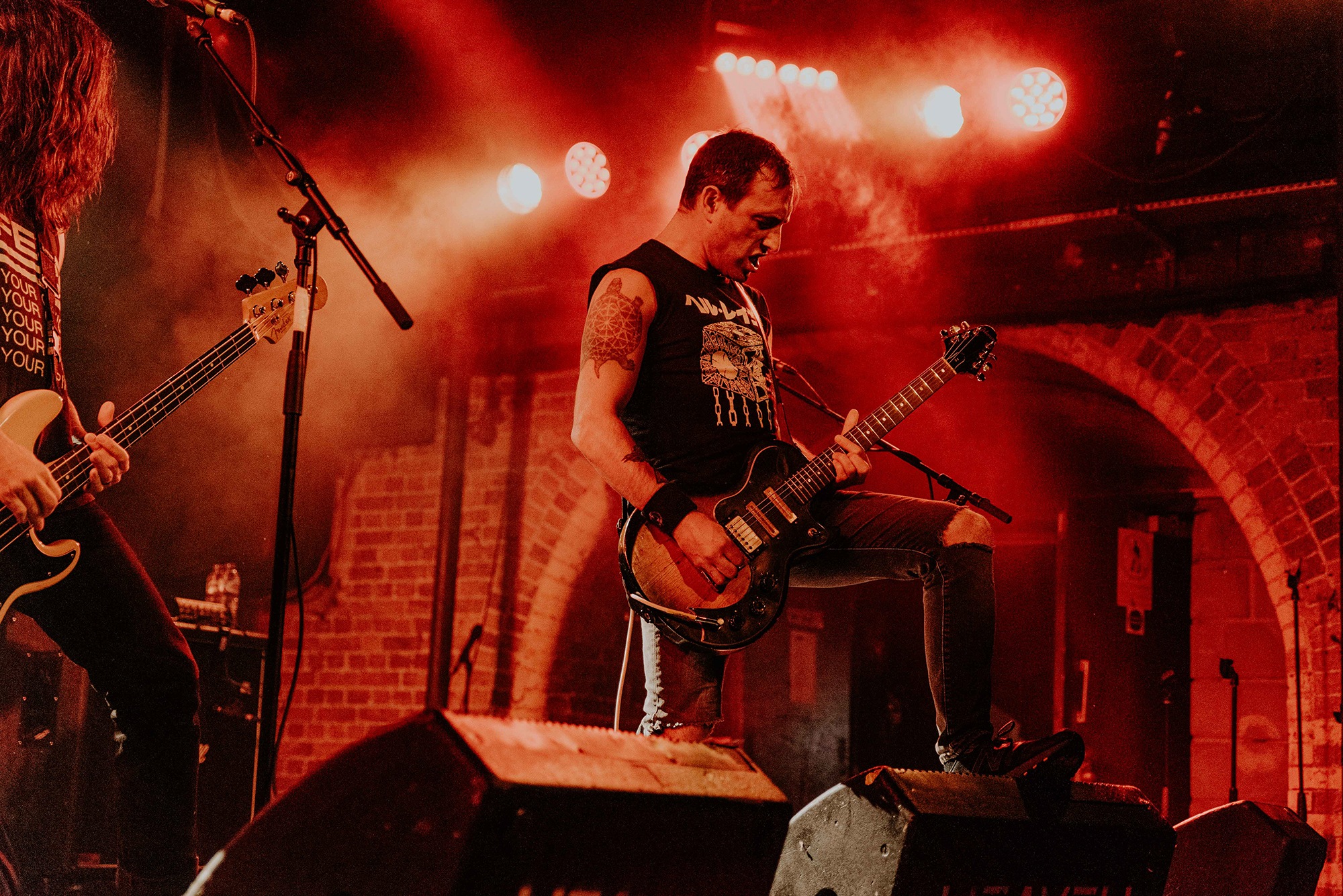Opening for them are Belgian post-metallers STAKE, whose sludgy groove captures as much grunge as it does tectonic post-metal shifts. Songs flow between gentler atmospheric passages to more urgent moments directed by frenetic drum fills. It’s quickly apparent, unfortunately, that the vocal mix leaves something to be desired. In softer moments, the melodies are for the most part easily audible, but when they employ screams during moments the band are going full-bore, they barely cut through at all. Songs from latest album Love, Death And Decay like Fuck My Anxiety, however, are exactly as anthemic and compelling as they are on record, serpentine guitars twist and turn above rumbling bass and the grooves, when they lock in, are nothing short of spellbinding. Their progressive sludge occasionally feels a little like MASTODON on some really bad acid; the biggest problem is the quiet main vocals; even between song patter is indecipherable, with only one song name being truly audible in their entire set. Minus minor sound woes, it’s an excellent showing from one of Belgium’s top post-metal bands that deserve far more love on these shores.