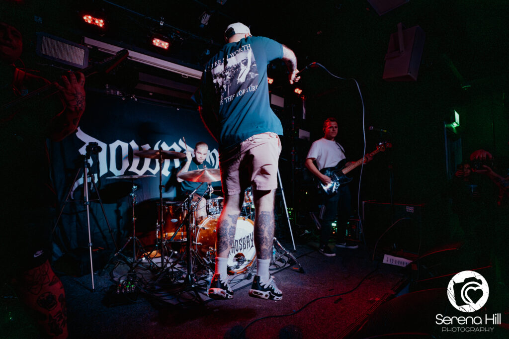 DOWNPOUR follow up with a dose of pop-punk meets hardcore energy, bringing in a bit of a genre curveball. It’s upbeat, angsty, and familiar in that “Warped Tour in a basement venue” kind of way. Frontman Rich Lardner works the crowd with plenty of motion and charisma, though midway through the set, the lights dip to near darkness – whether a technical slip or an artistic choice, it doesn’t exactly help the vibe. They play solidly, but it’s hard not to feel like they’re swimming in an already crowded pool of similar-sounding acts. There’s potential, but they’ll need to carve out something that screams them if they want to truly break through.