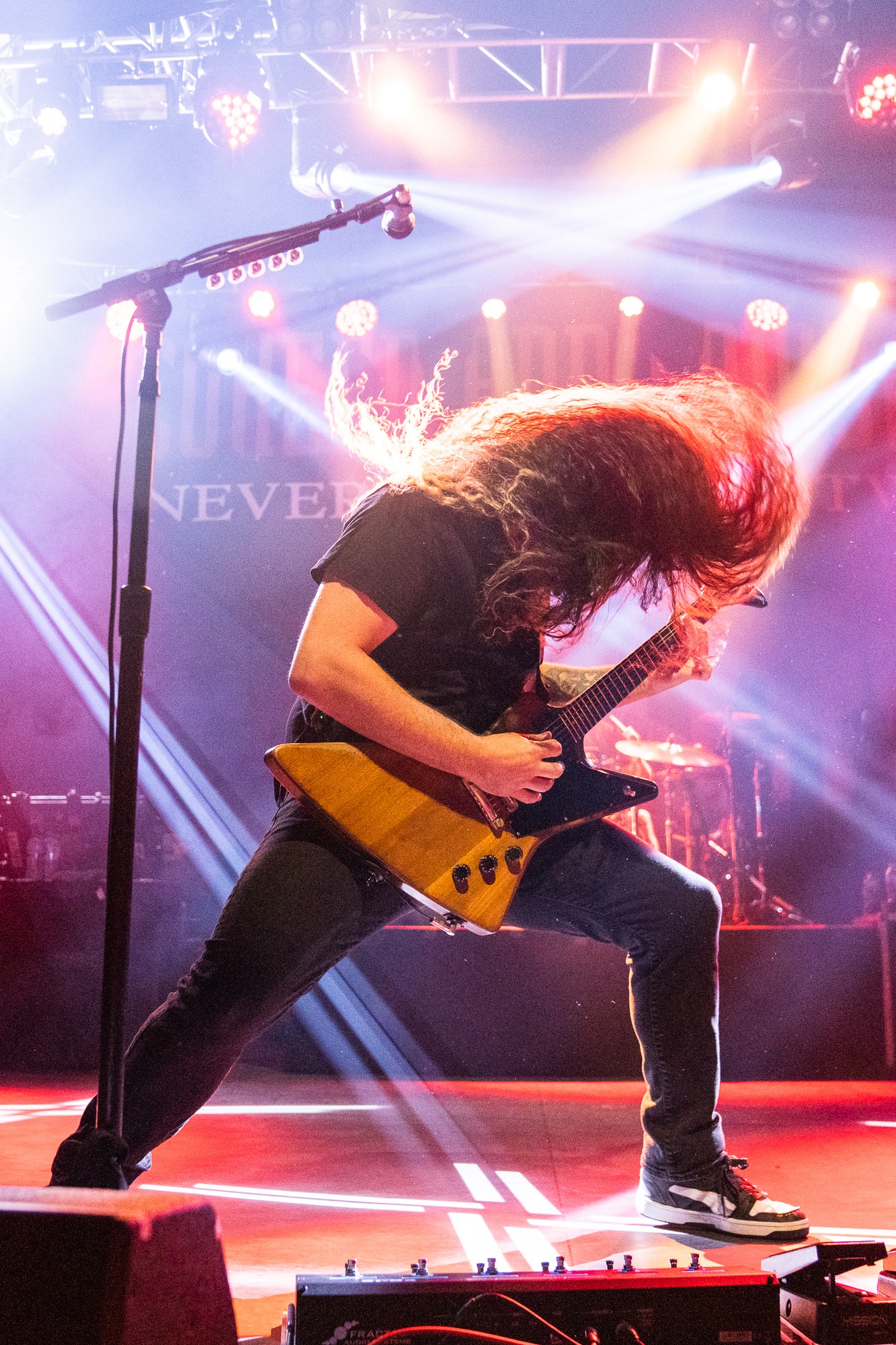 The second portion of the set, a selection of tracks from Vaxis II, is no slouch either; it might not have the same place in fans’ hearts (yet) but it’s one of their strongest albums with towering pop hooks and choruses. The Embers of Fire once more sees the crowd eclipse the band on volume even as an intro, before Beautiful Losers threatens to take off what’s left of the roof after the No World For Tomorrow playthrough. It’s ludicrously stacked and shows just how consistently brilliant COHEED AND CAMBRIA are, that decades into their career they’re still penning some of their best ever songs. The half hour consists of Shoulders, whose rollicking riff gets hips moving in the pit, Rise, Naianasha (Cut the Cord), A Disappearing Act, The Liars Club and a towering Ladders of Supremacy to close, and none of them see the energy dip even the tiniest bit. A 20 song setlist that never drops from brilliant, with singalongs you could hear from across town: it’s a wonder this band aren’t filling arenas, but this feels all the more special for it.Â