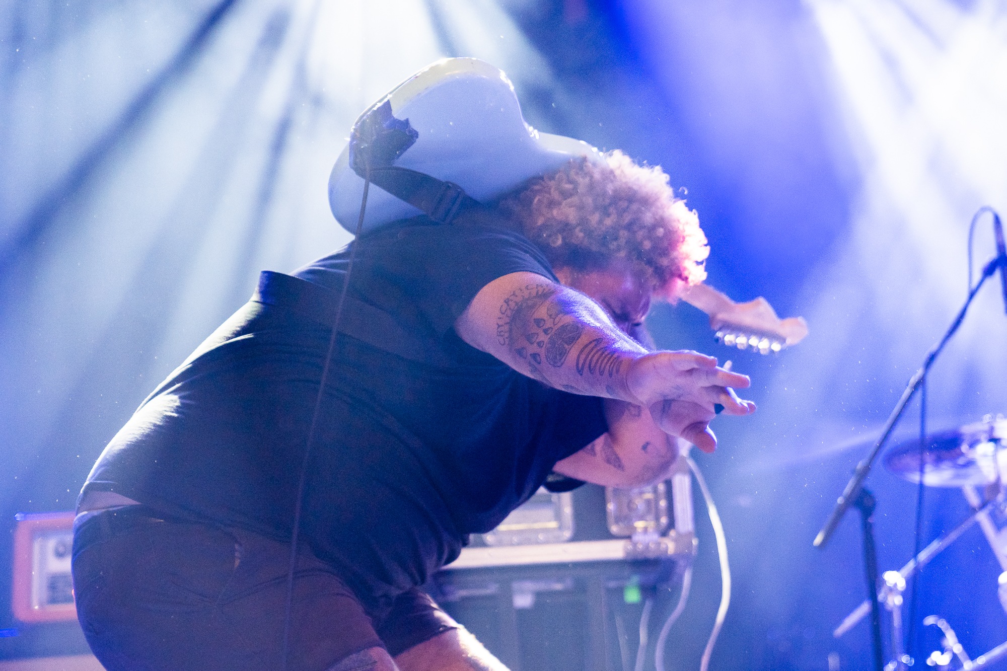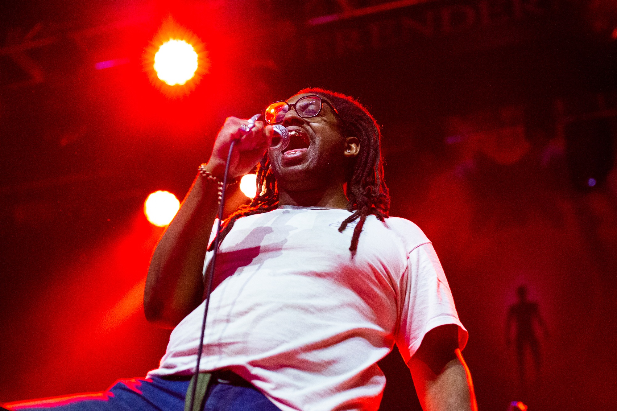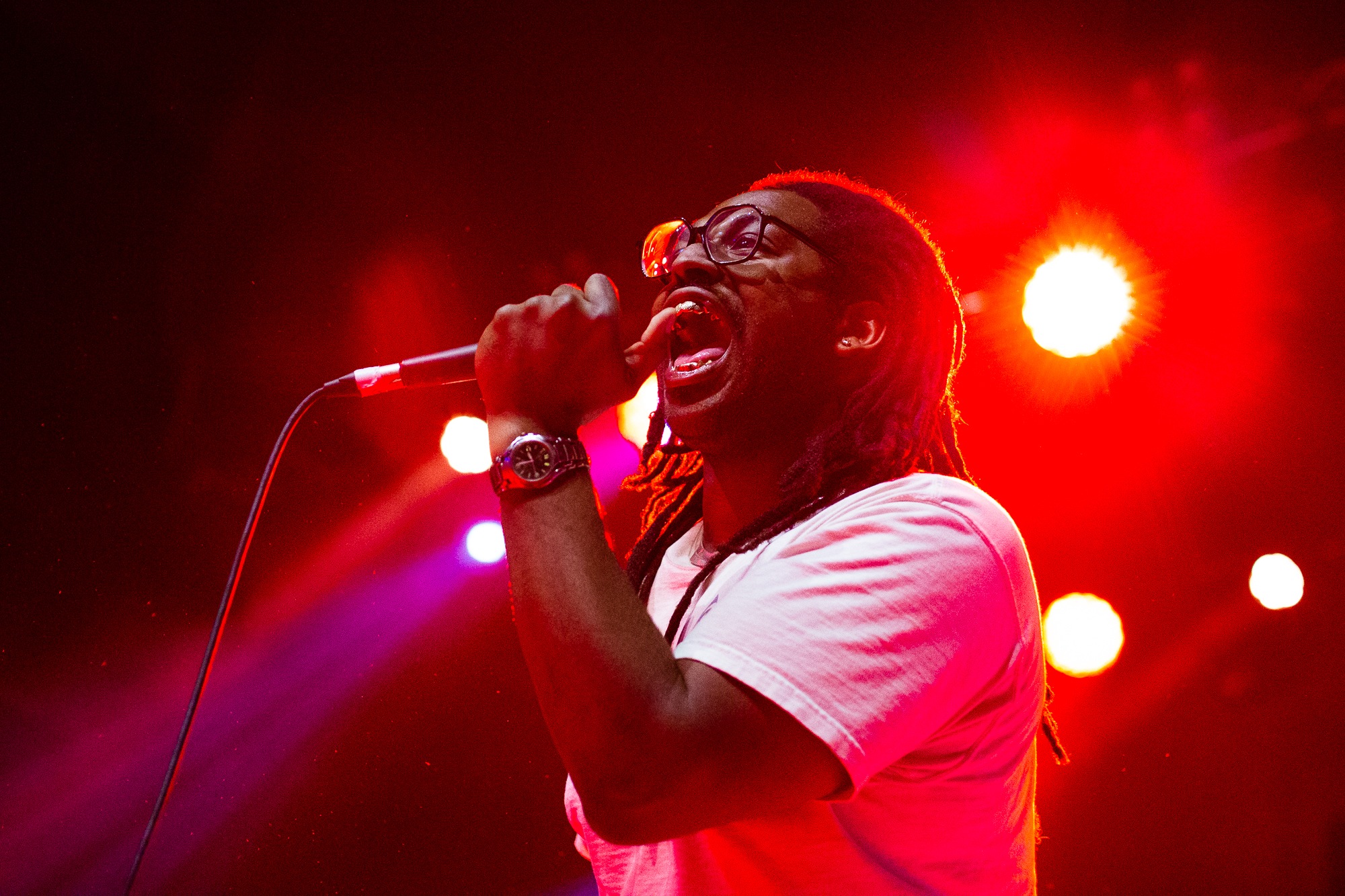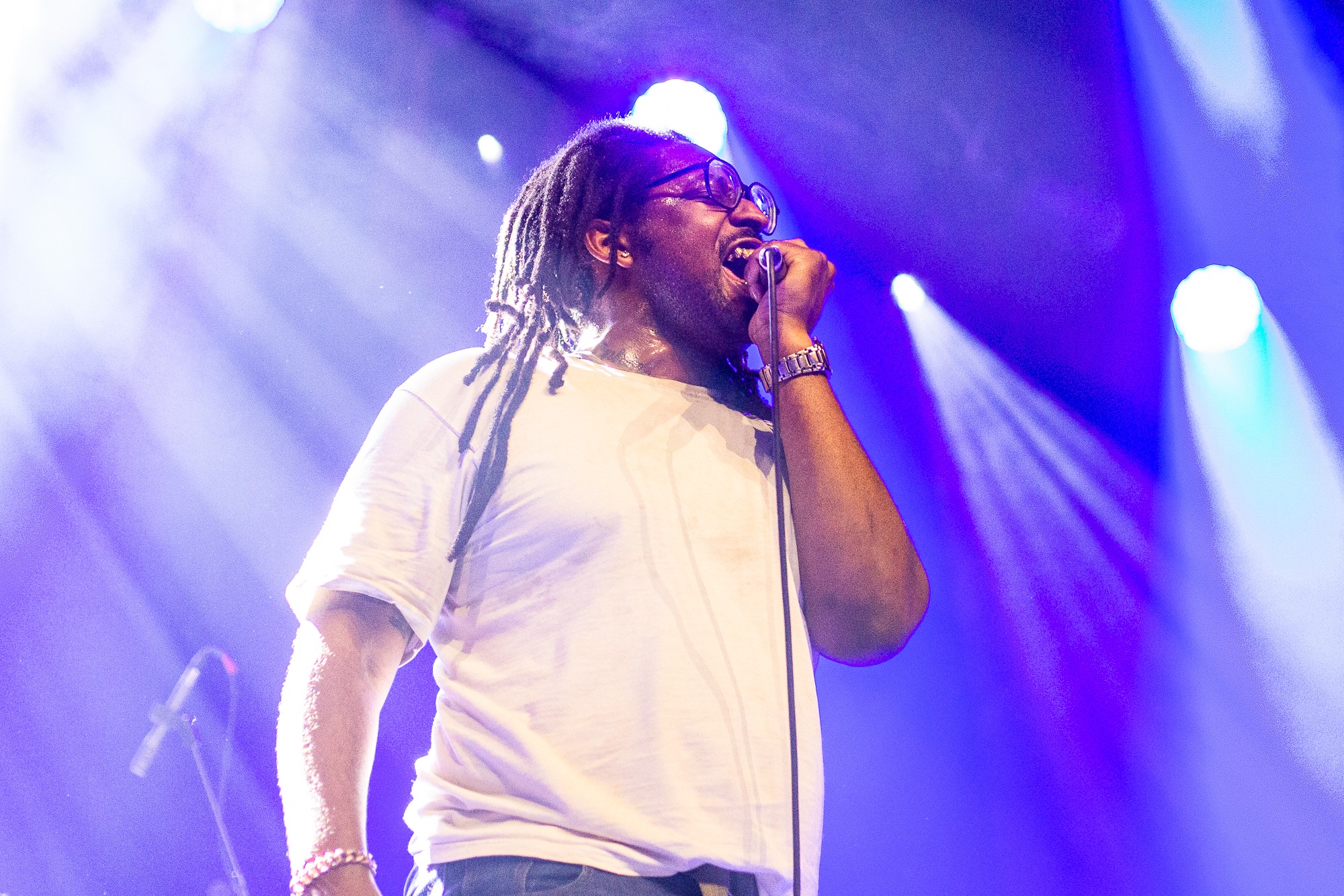 Supporting them today are the Pennsylvanian hardcore outfit SOUL GLO, likewise fresh from their Download Festival slot. Armed with a ferocious take on the genre that blends hip hop flows with snarling punk, they stride onstage blaring an air horn before tearing into their set. Part of the rising tide of phenomenal hardcore coming from the US at the moment, it’s easy to see why they’ve garnered critical acclaim and fans so quickly; they’re a razor-sharp storm of frenzied guitar, screeching vocals and incisive lyrics that target inequality, racism and the experience of being black in America, all the while keeping the energy sky high. Vocalist Pierce Jordan is a lightning rod frontman, picking up drumsticks to pound on the kit, standing tall on monitors and commanding attention, even while GG Guerra and Rob Blackwell hold instruments aloft during moments of feedback or between pit-inciting riffs. It’s a powerful statement how far SOUL GLO can go when they get such a great reception on a bill with a band that, on paper, they have nothing in common with but whose fans they win over with their uncompromising, unapologetic racket.Â