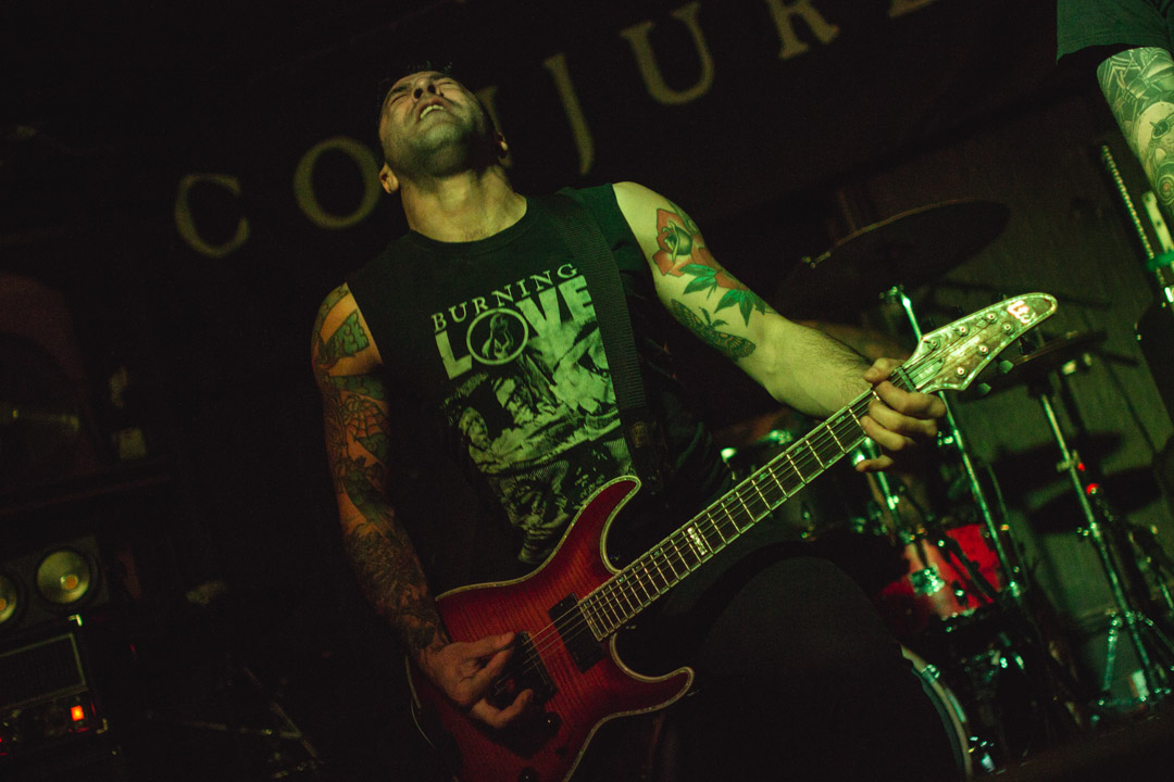 Brady Deeprose, Dan Nightingale and Conor Marshall act as a three-pronged unit to lead the band’s musical assault backed by a tight and solid backing from drummer Jan Krause. Sludge-driven riffing hits the crowd like a freight train and Deeprose and Nightingale‘s dual vocal barrages hold their own in the chaotic mix. The audio mixing here is simply superb, allowing CONJURER‘s expansive and overtly heavy sound to come across crystal clear, even more impressive given the intimate confines of The Star & Garter and the frenzied crowd eat up every single moment of their time on stage. This is best seen right at the end as screams for “one more song!” are gladly answered and the band unleash a tearing cover of the MASTODON classic Blood and Thunder that ends the night on a enormous high. From start to finish, CONJURER gave a performance of sheer quality, one in which will only certainly enhance their swelling hype and cement the band as the frontrunner to dominate UK heavy music for years to come.