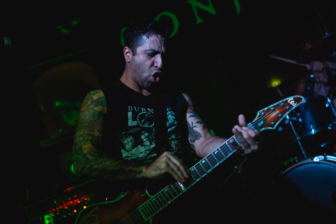 Given that tonight’s show is sold out, for ARMED FOR APOCALYPSE, they hit the stage to a nicely populated room and for those who showed up early, they benefit from an aural battering as the Californian trio unleash a musical maelstrom where the intensity rarely lets up. Dense riffs, oozing with sludge influences, from Nate Burman and Charlie Fischer act as the focal point for the trio’s destructive sound whilst Nick Harris proceeds to beat the drums within an inch of their life. Burman‘s vocals hold their own in the destructive aural chaos, with every guttural snarl and blast making their mark, it’s a monstrously heavy set and the band do a solid job of setting the stage for tonight’s headliners and even though the band suffer with minor technical gremlins in the set’s latter stages, it is but a blemish on a performance that will certainly help the band establish a foothold on our shores.