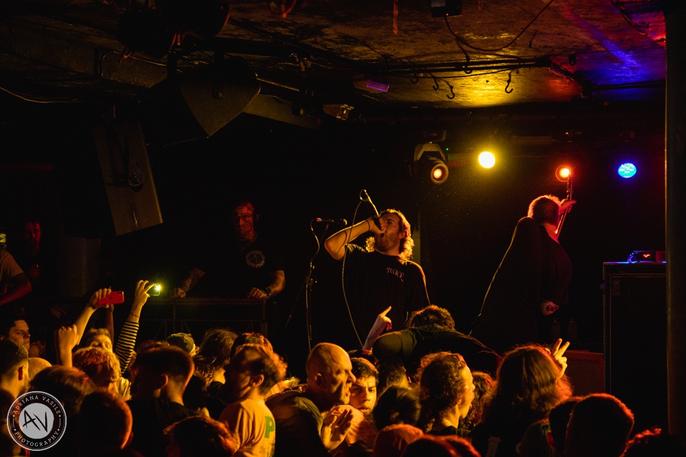 Seeing two security guards anxiously watching a sea of crowd surfers, stage divers and crowd killing around a pillar was an entertaining experience. Surprisingly, the only ‘accident’ on the night was a slew of drinks being left onstage and subsequently knocked off, resulting in an ice rink of a stage. Even though towels and blue roll were brought out to try and contain the spills, singer Brendan couldn’t contain his ten-minute-tangent about putting drinks onstage.