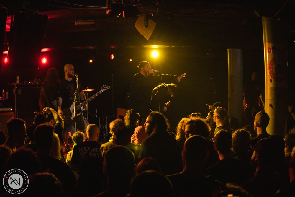 CAULDRON, hailing from Birmingham were the first to hit the stage with a 30 minute set aiming to warm the crowd up and get them ready for JUSTICE FOR THE DAMNED and then COUNTERPARTS. Whilst the crowd was sparse to begin with, they didn’t let it faze them and launched into an energetic set that certainly got the audience moving. Whilst they might look like your standard hardcore group in shorts, baggy tees and Dad hats, they understood the crowd’s needs and created the perfect environment for the audience to go wild.