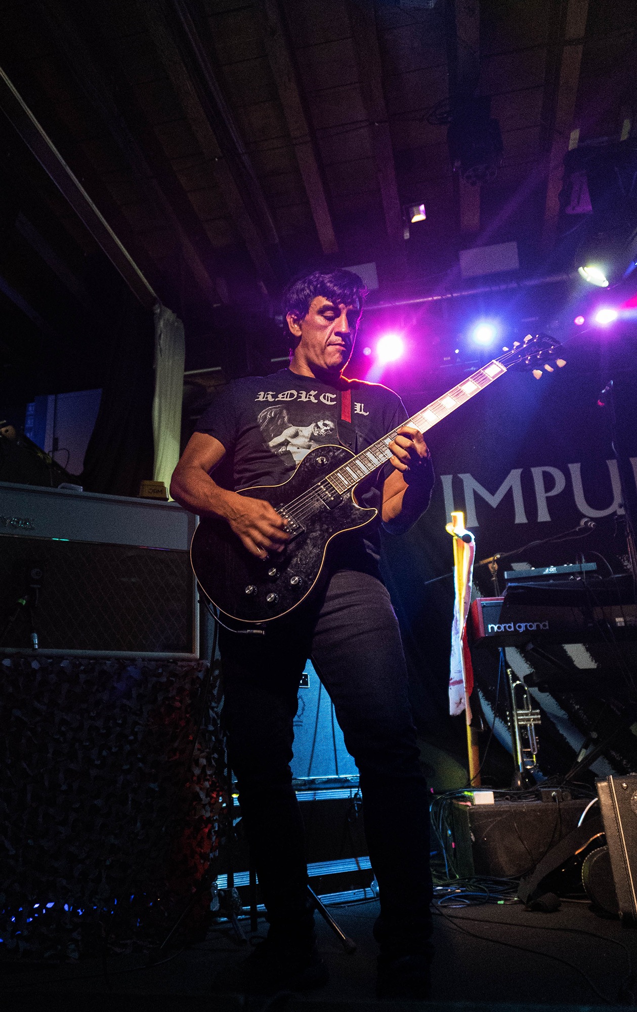 Swiss rockers IMPURE WILHELMINA are first up tonight, a well-blended cocktail of desert, doom, prog, sludge and stoner to get things going. Although not the sort of band to throw shapes to, by and large this isn’t the sort of audience who would react in such a way at all; the appreciation of the music itself is key; thus, the band have no need for stage patter or interaction as they let their songs do the talking for them. Said songs speak loud – the likes of BARONESS, KYUSS and MASTODON are present and whilst the vocals of Michael Schindl could be a little higher in the mix, the intricacies and textures of tracks like The Enemy and Great Falls Beyond Death are enough to warrant more than one listen to the quartet once things are over; a strong start.