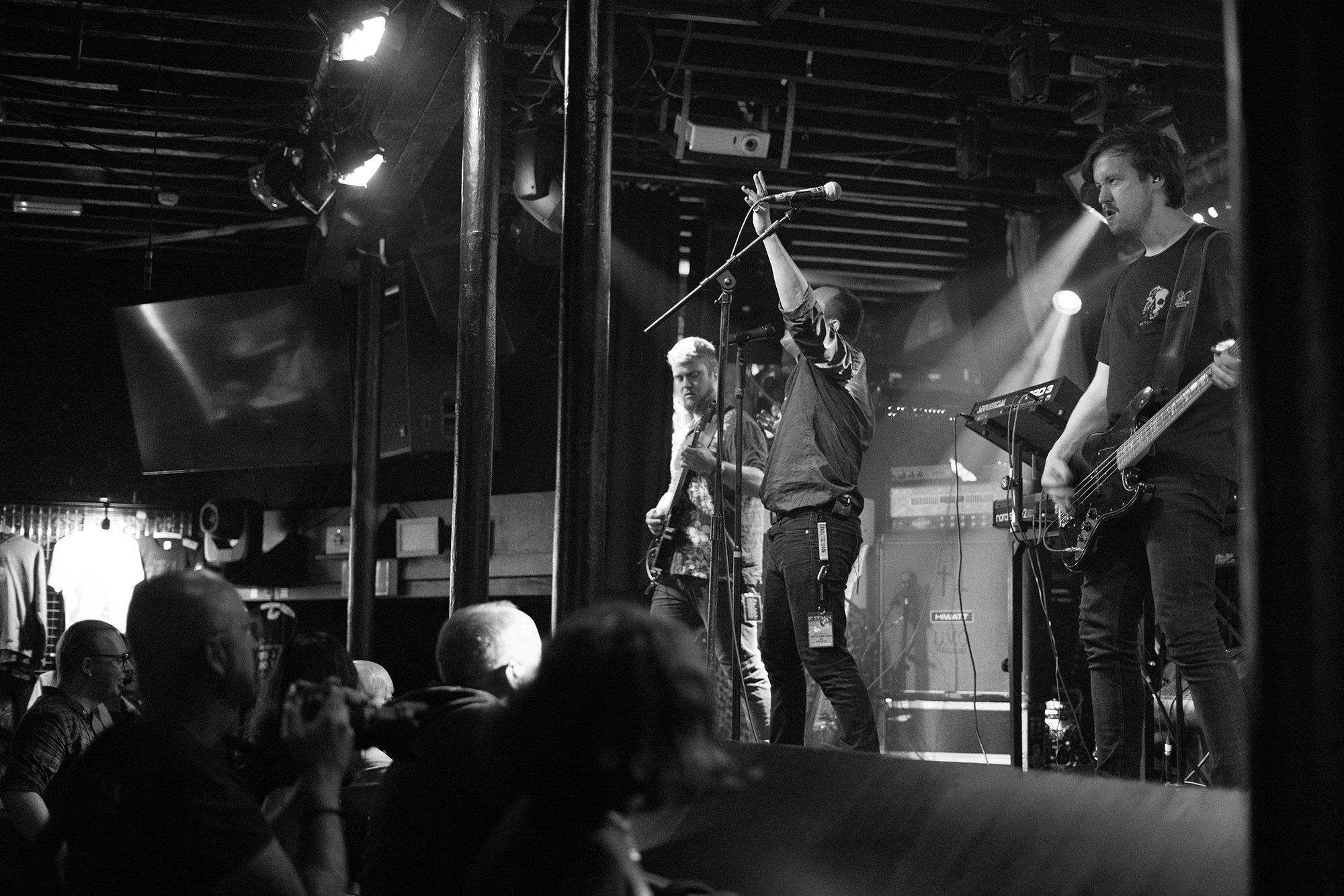 “Hello Bristol, it hasn’t been too long!” jokes MØL frontman Kim Song Sternkopf. It’s a little under three weeks since the Danes have been in this neck of the woods, whereby they obliterated the main tent at ArcTanGent with considerable aplomb. Such is their drawing power, many of the punters tonight are here just to see them, but their wonderful blend of black metal and shoegaze is clipped slightly by the simple fact that it’s not quite loud enough. Of course, this sort of music doesn’t have to always be at ear-splitting levels, but a touch more would have given the songs a greater impact, especially during the more extreme moments. Absolutely full marks to the band though, particularly Sternkopf who is a true focal point, standing on the speakers and then moving his way through the crowd, screaming the lyrics in their faces. By the time they’ve finished five tracks from last year’s Diorama album and moved onto their 2018 debut Jord, they have everyone right where they want them; the title track and Bruma finish off what has evolved into an excellent set. They’ve come a long way since playing back-to-back shows in a 40 capacity basement just up the road, that’s for sure.