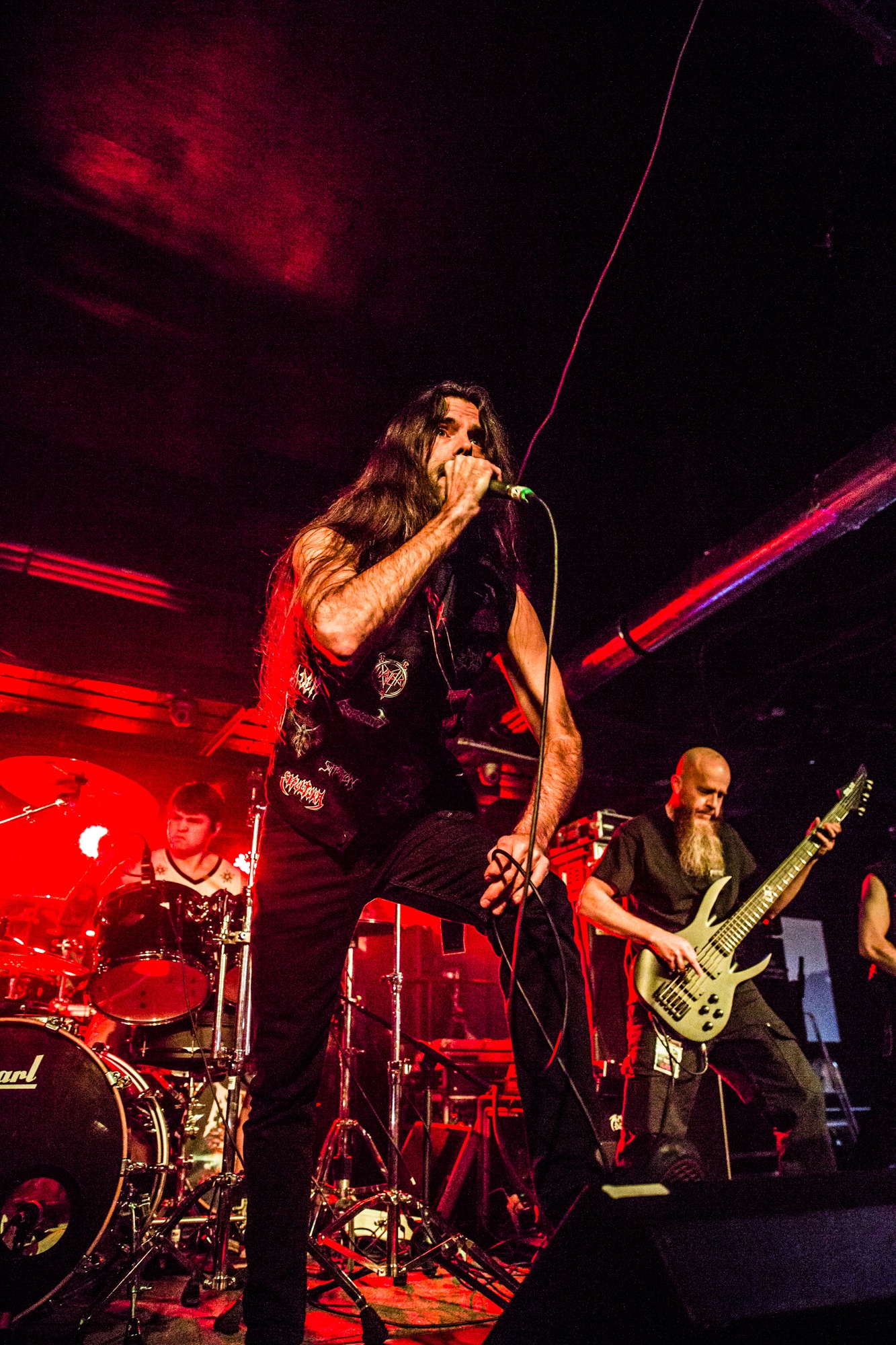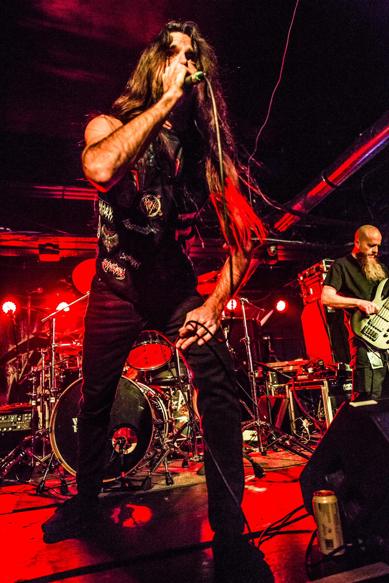 Canada’s tech death metal titans CRYPTOPSY will need to have the best performance of the night to top ATHEIST‘s. And indeed, they begin their performance on a lighter foot, with new song In Abeyance from last year’s As Gomorrah Burns. The lack of familiarity with this song leaves the punters reserved and far too motionless for a death metal show. However, the next song is the beloved Graves Of The Fathers, which really ignites appetites and demands pugnacious pits and headbanging. CRYPTOPSY‘s visionary of sinister technical death metal is surely among the apex of the sub-genre and it’s clear to understand why classic albums including None So Vile and Blasphemy Made Flesh solidified them into the upper echelons of tech death.