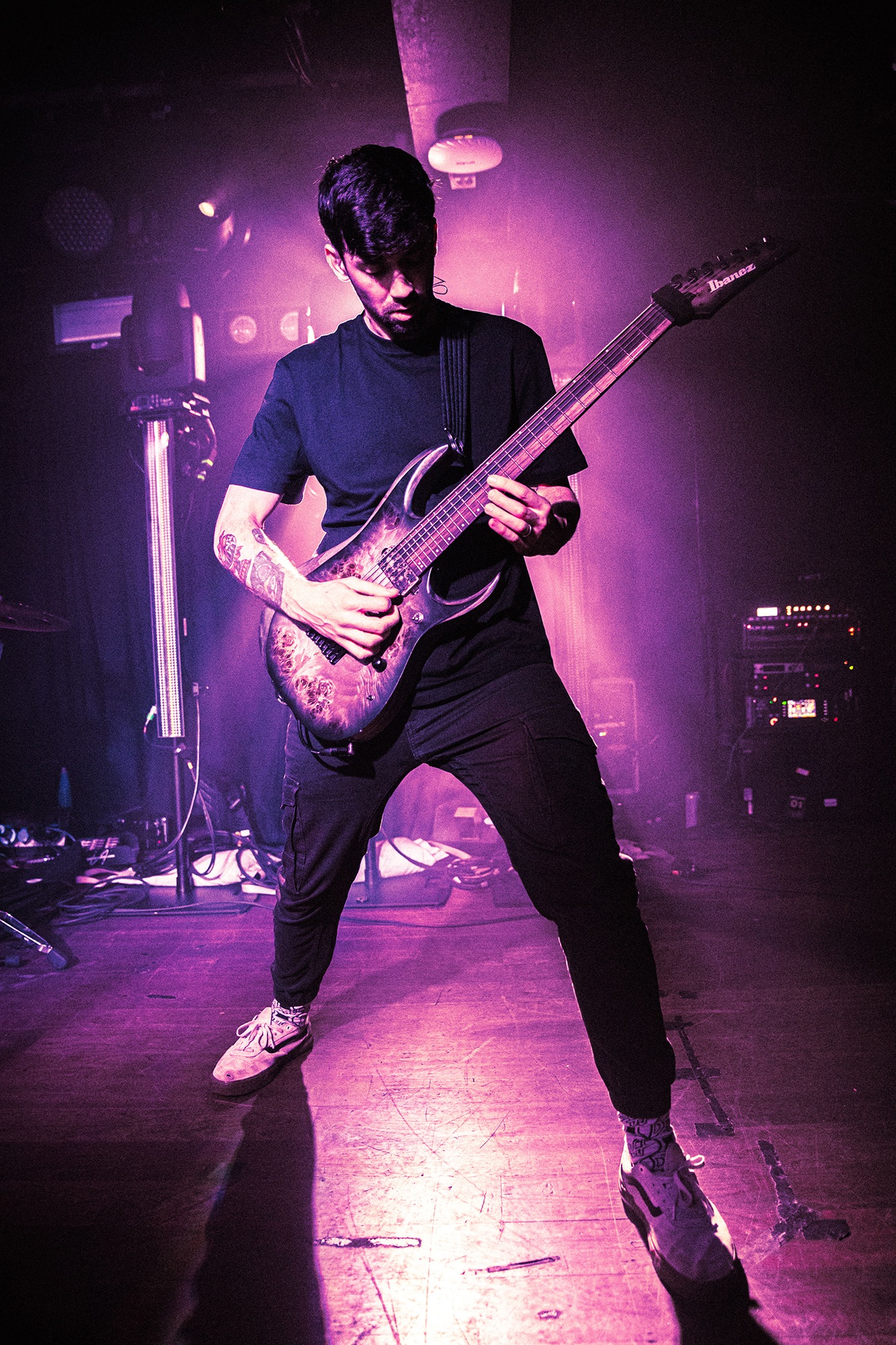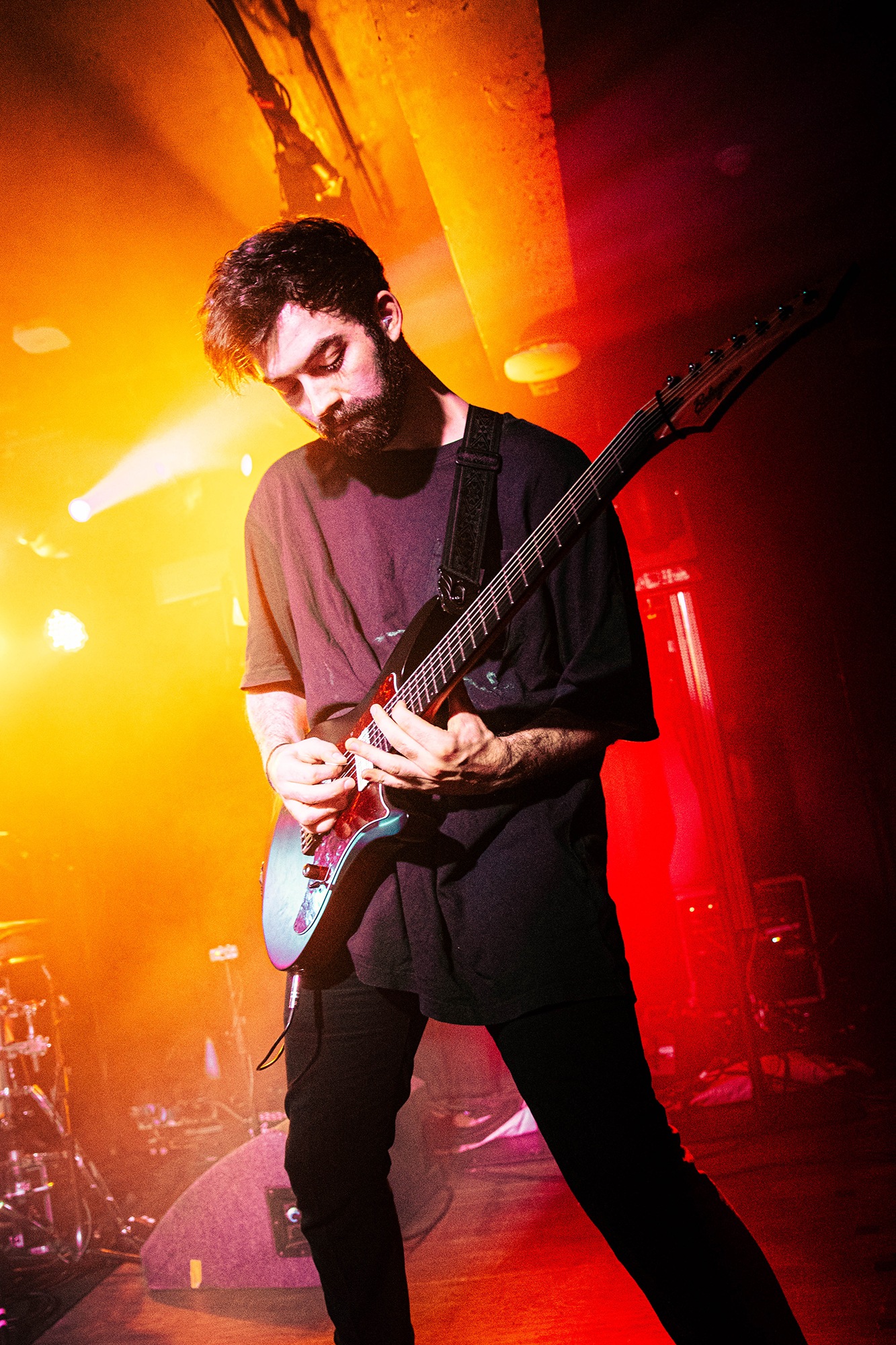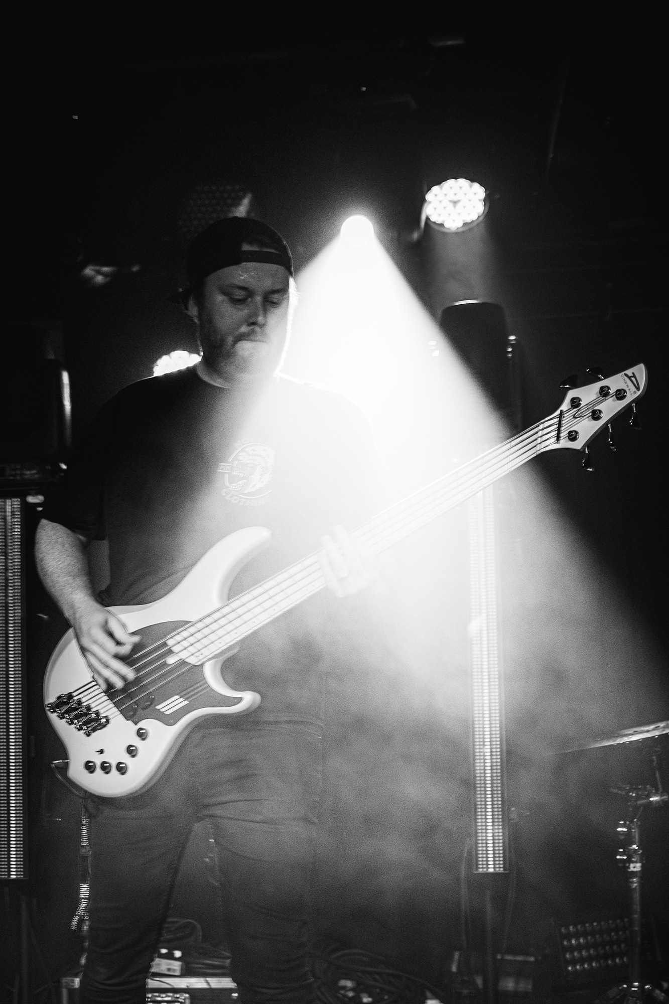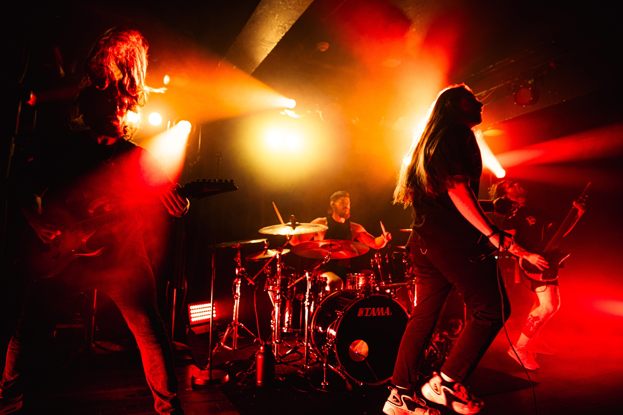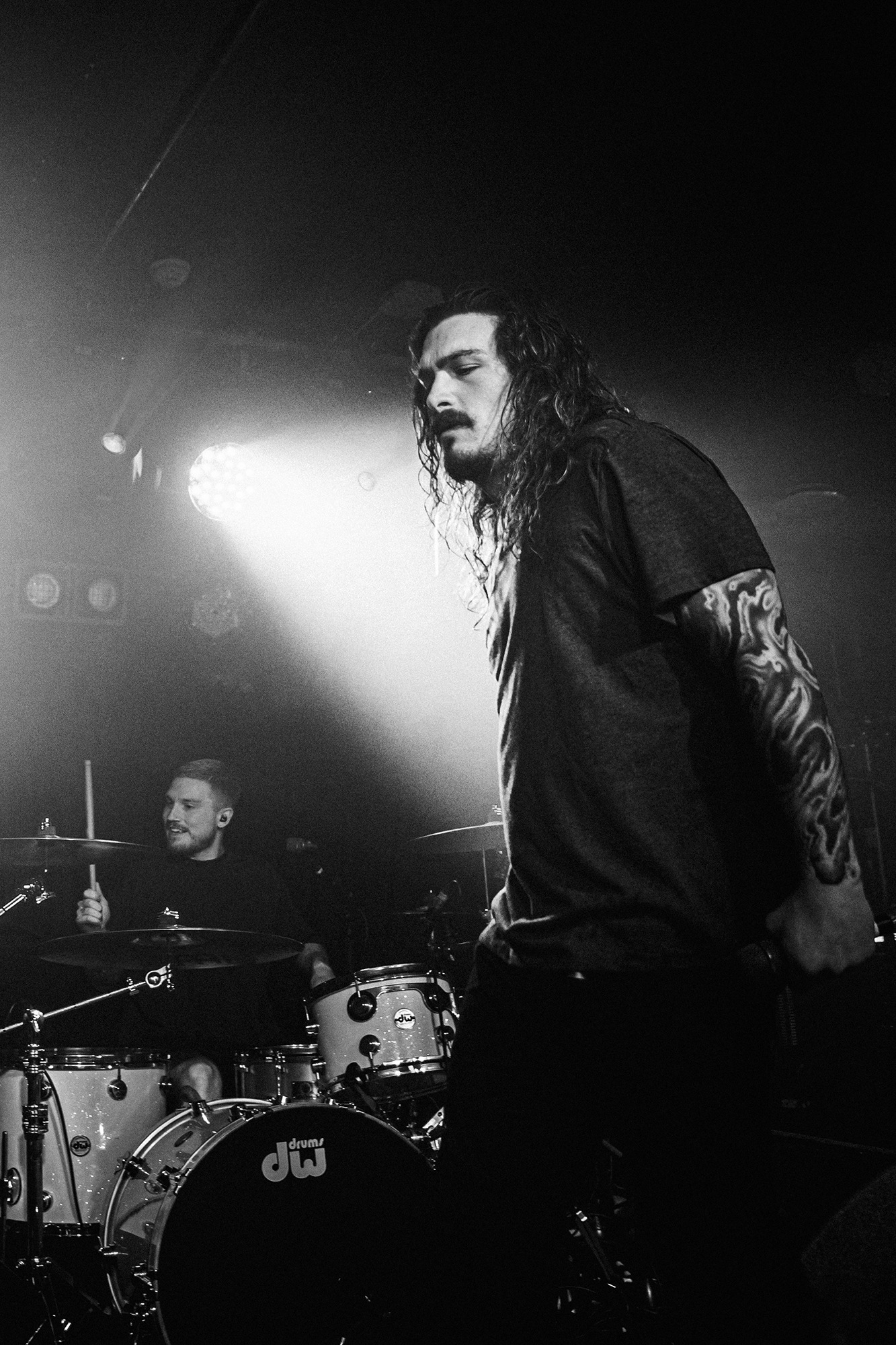 First to the plate are New Jersey quartet SENTINELS with some of the hardest hitting progressive grooves you around, with chaotic riffs and pummelling drums. Their serrated chops cut and change at a whim, throwing you one way and then kicking you down another, knocking you off your feet. Atop it all is vocalist Kenny Stroh who’s bellowing screams and gutturals navigate you through the onslaught, and tonally suit the brutality behind. Sunglasses donning Danny Cruz may well be the coolest looking person in the building, dancing and leaning through the angular onslaught as though the grooves were a disco. Highlight of the set was last years single Glitch, which earns them mosh pits from the off, and perhaps in search of a record contains fifteen sub-drops just to add to the penetrating beef of their sound. The room may well need a minute to recover as SENTINELS depart having well and truly woken the room.