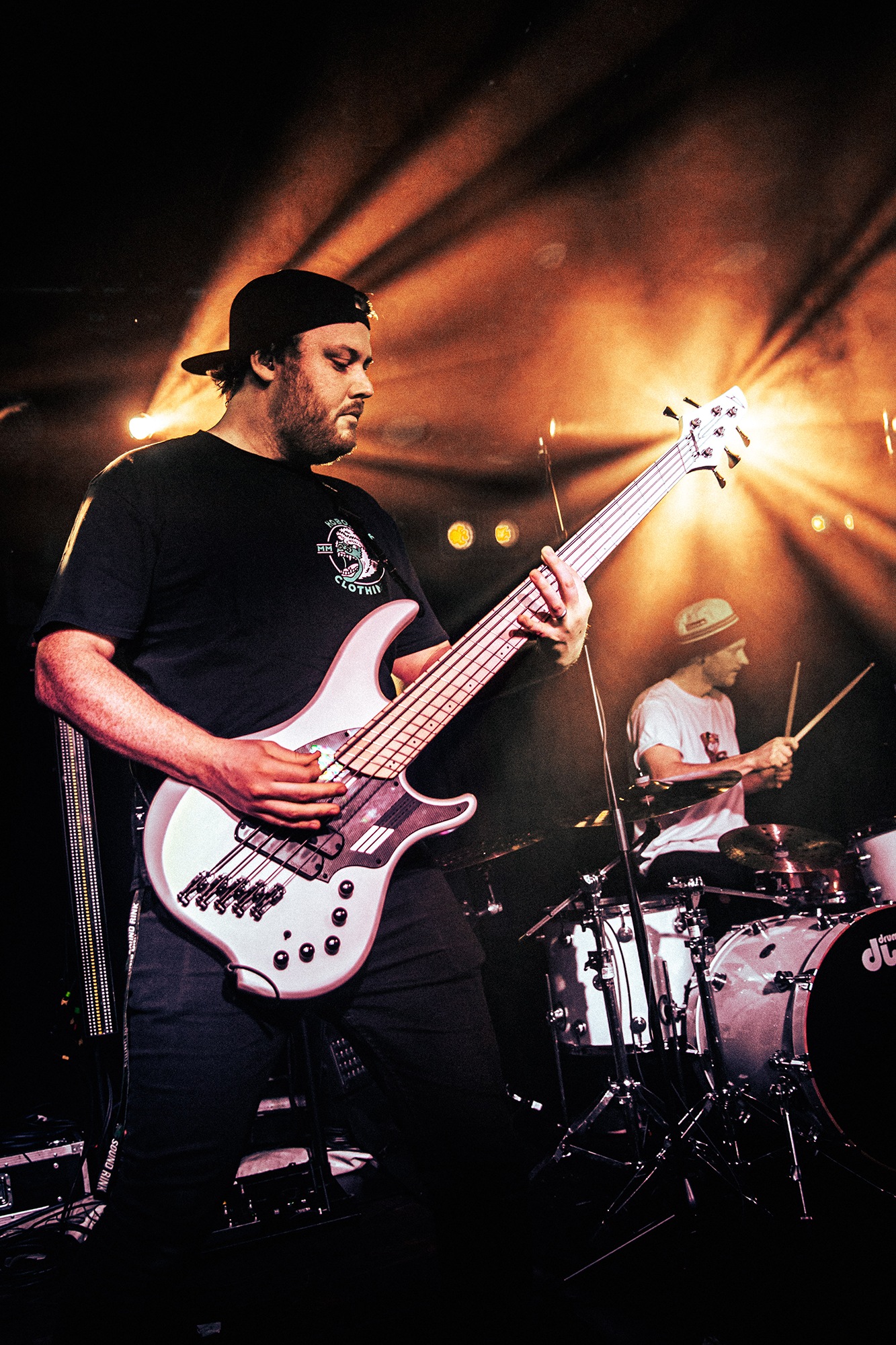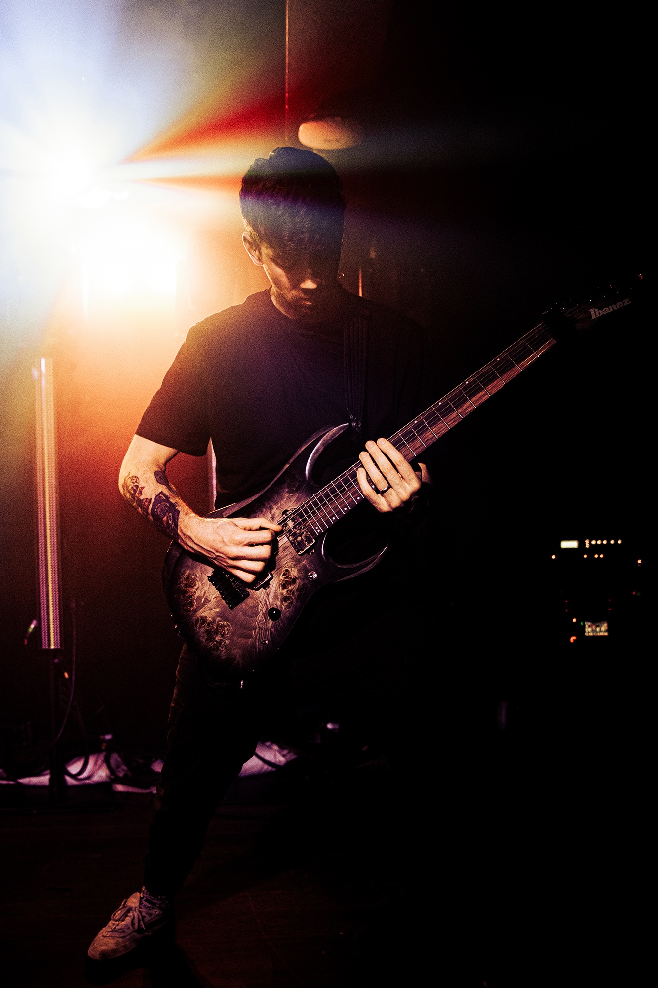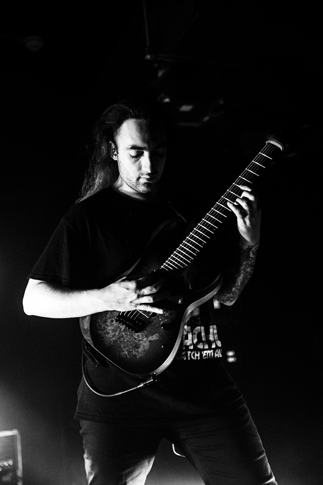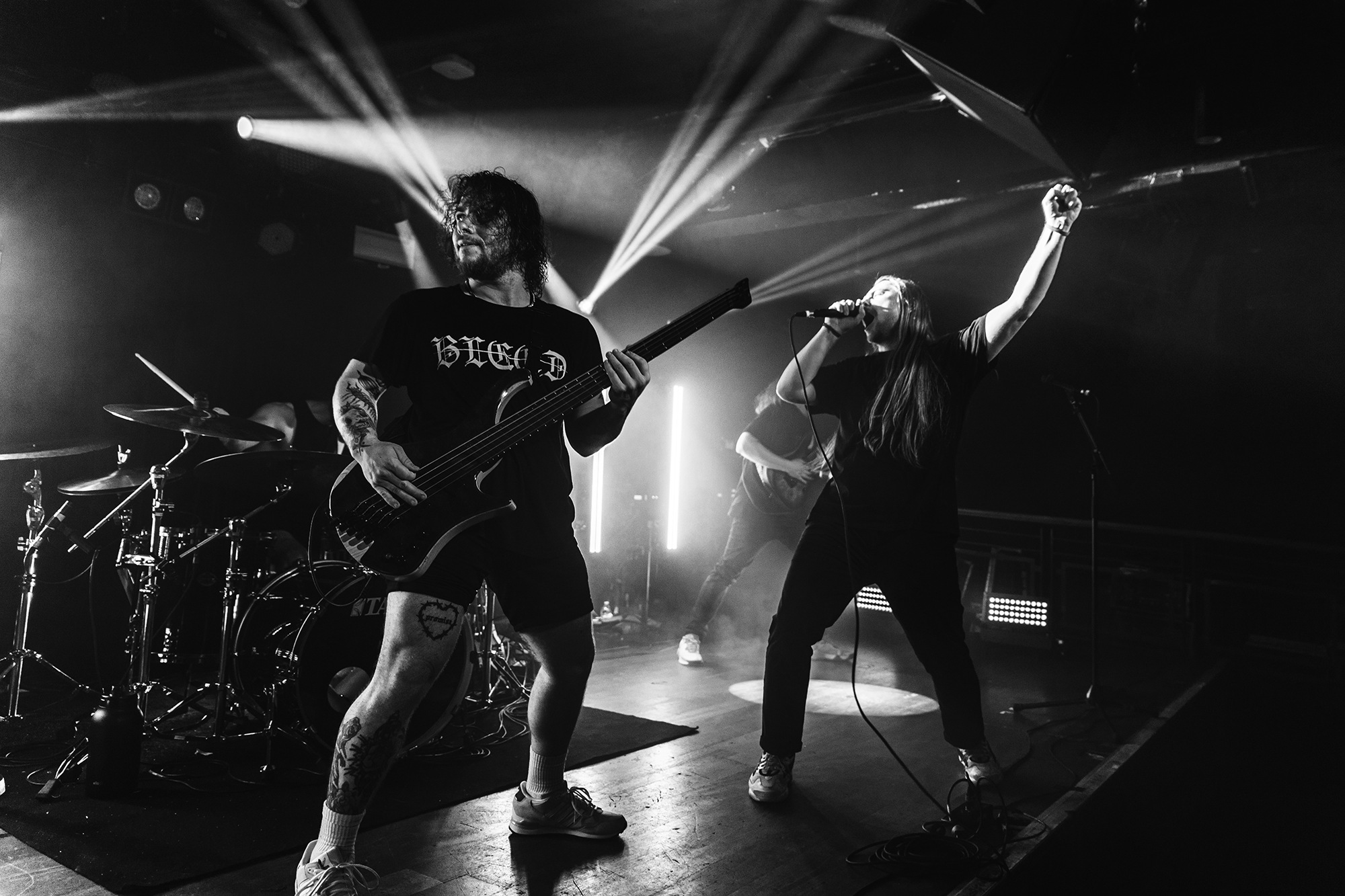 First to the plate are New Jersey quartet SENTINELS with some of the hardest hitting progressive grooves you around, with chaotic riffs and pummelling drums. Their serrated chops cut and change at a whim, throwing you one way and then kicking you down another, knocking you off your feet. Atop it all is vocalist Kenny Stroh who’s bellowing screams and gutturals navigate you through the onslaught, and tonally suit the brutality behind. Sunglasses donning Danny Cruz may well be the coolest looking person in the building, dancing and leaning through the angular onslaught as though the grooves were a disco. Highlight of the set was last years single Glitch, which earns them mosh pits from the off, and perhaps in search of a record contains fifteen sub-drops just to add to the penetrating beef of their sound. The room may well need a minute to recover as SENTINELS depart having well and truly woken the room.