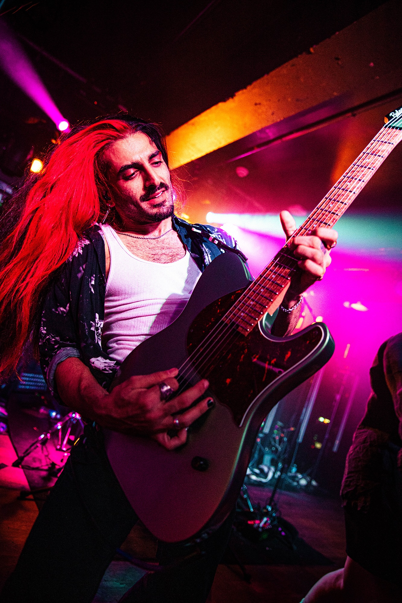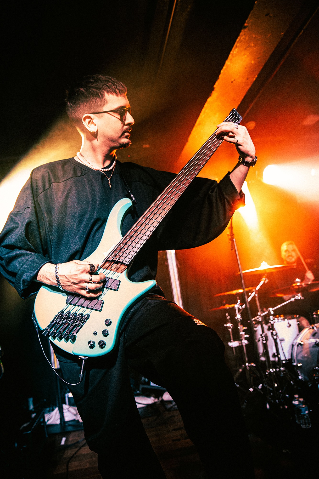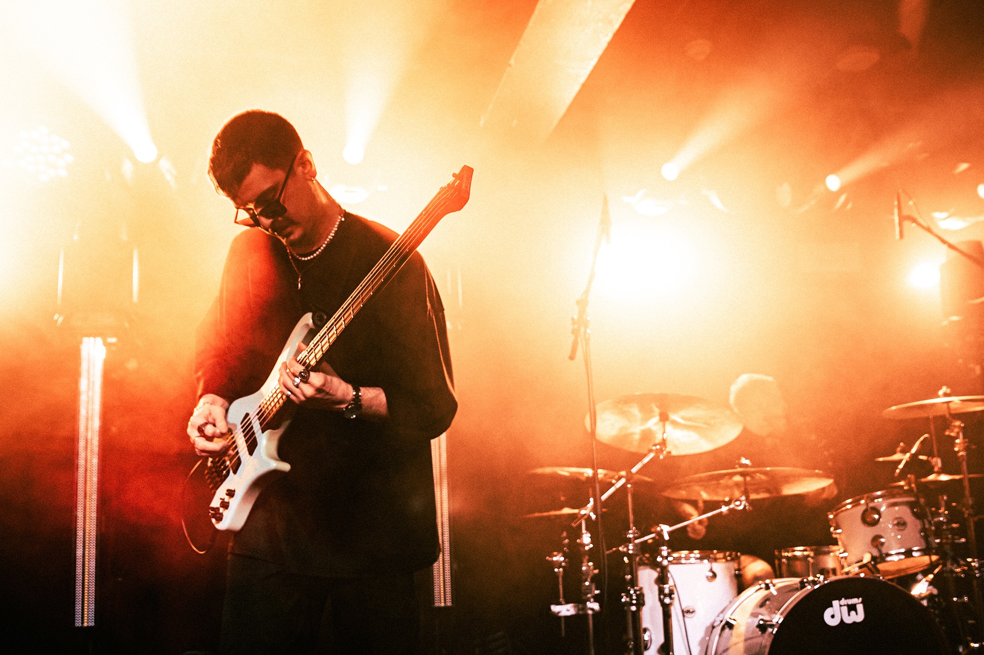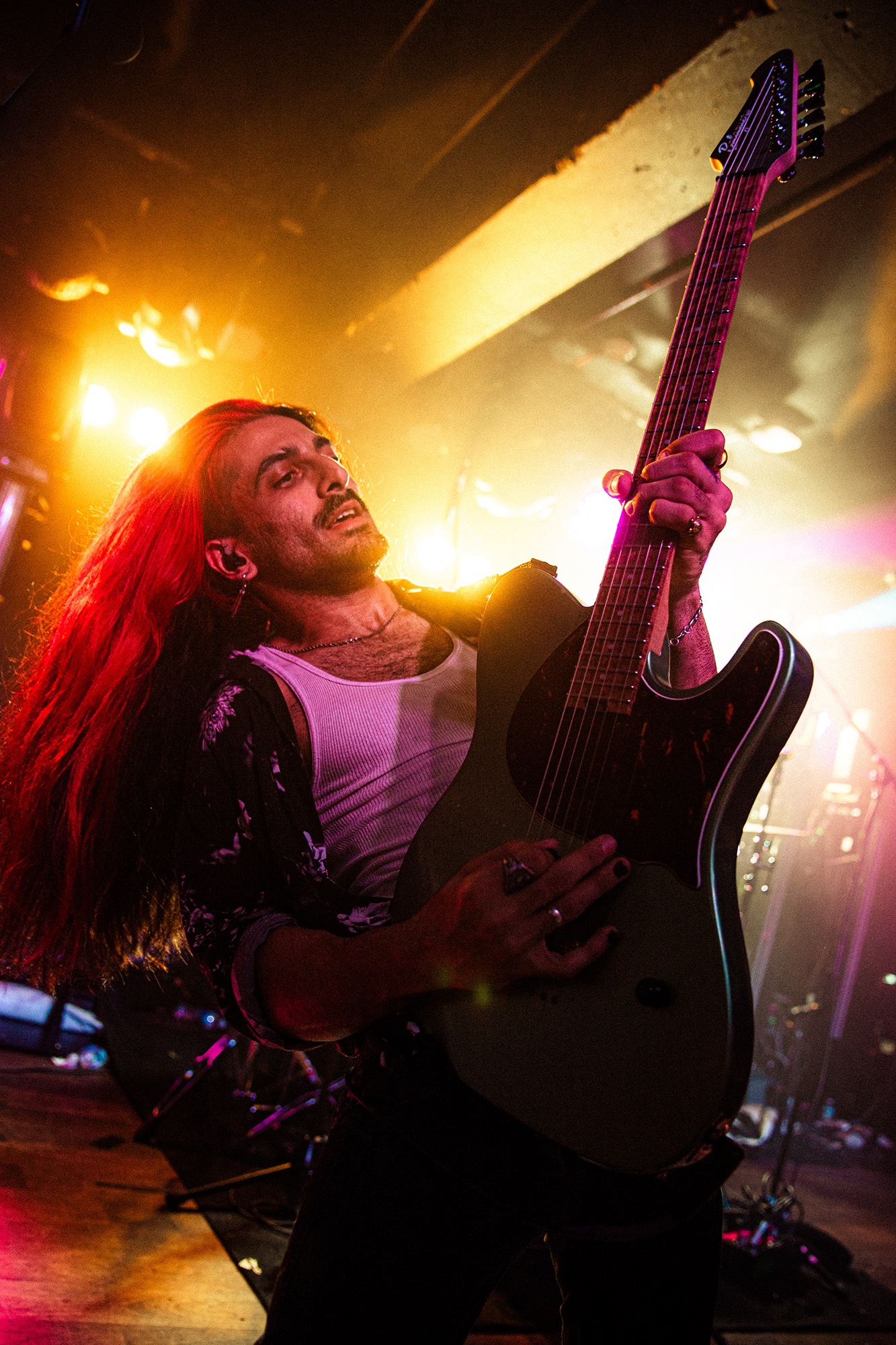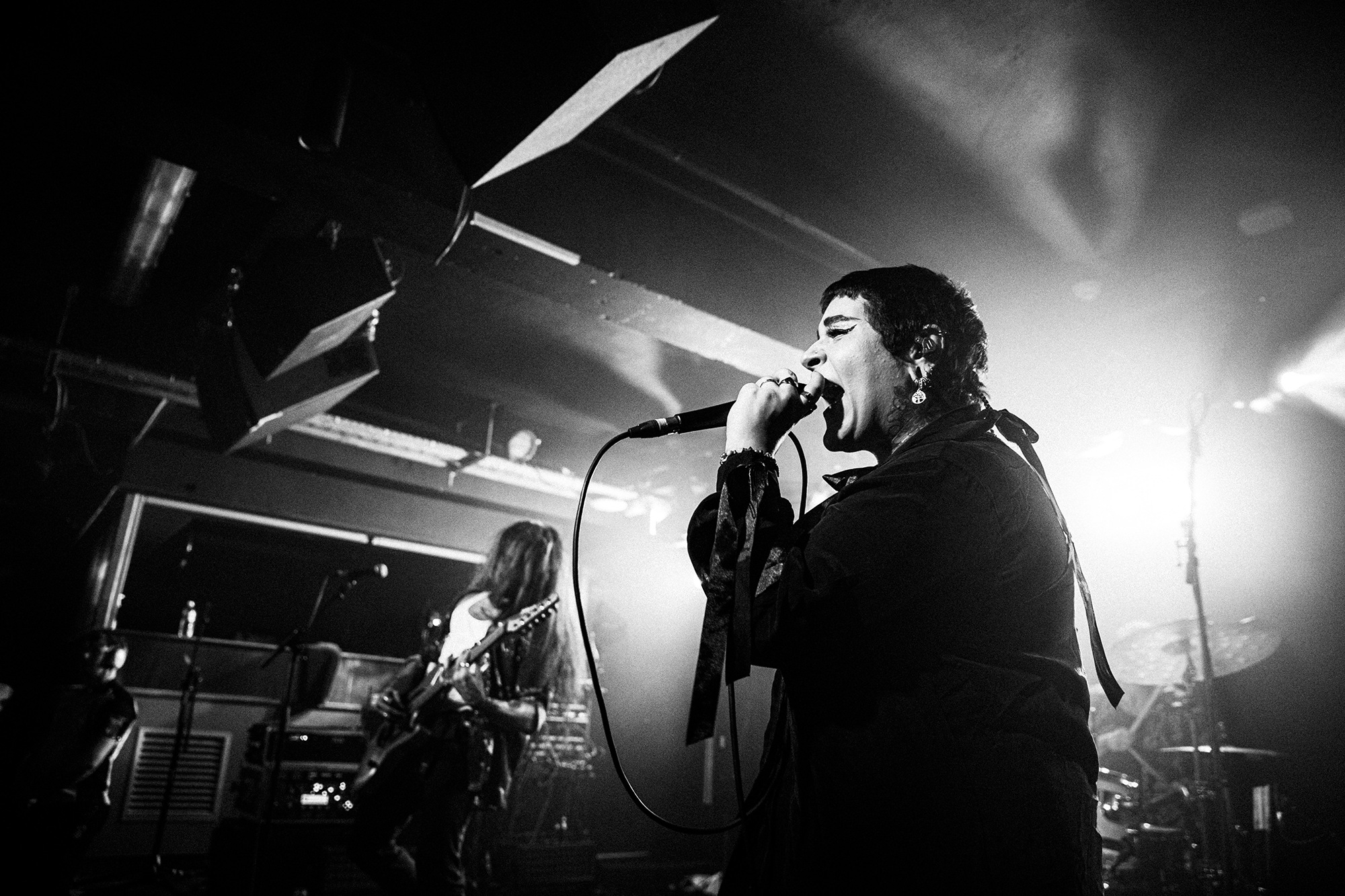 First to the plate are New Jersey quartet SENTINELS with some of the hardest hitting progressive grooves you around, with chaotic riffs and pummelling drums. Their serrated chops cut and change at a whim, throwing you one way and then kicking you down another, knocking you off your feet. Atop it all is vocalist Kenny Stroh who’s bellowing screams and gutturals navigate you through the onslaught, and tonally suit the brutality behind. Sunglasses donning Danny Cruz may well be the coolest looking person in the building, dancing and leaning through the angular onslaught as though the grooves were a disco. Highlight of the set was last years single Glitch, which earns them mosh pits from the off, and perhaps in search of a record contains fifteen sub-drops just to add to the penetrating beef of their sound. The room may well need a minute to recover as SENTINELS depart having well and truly woken the room.