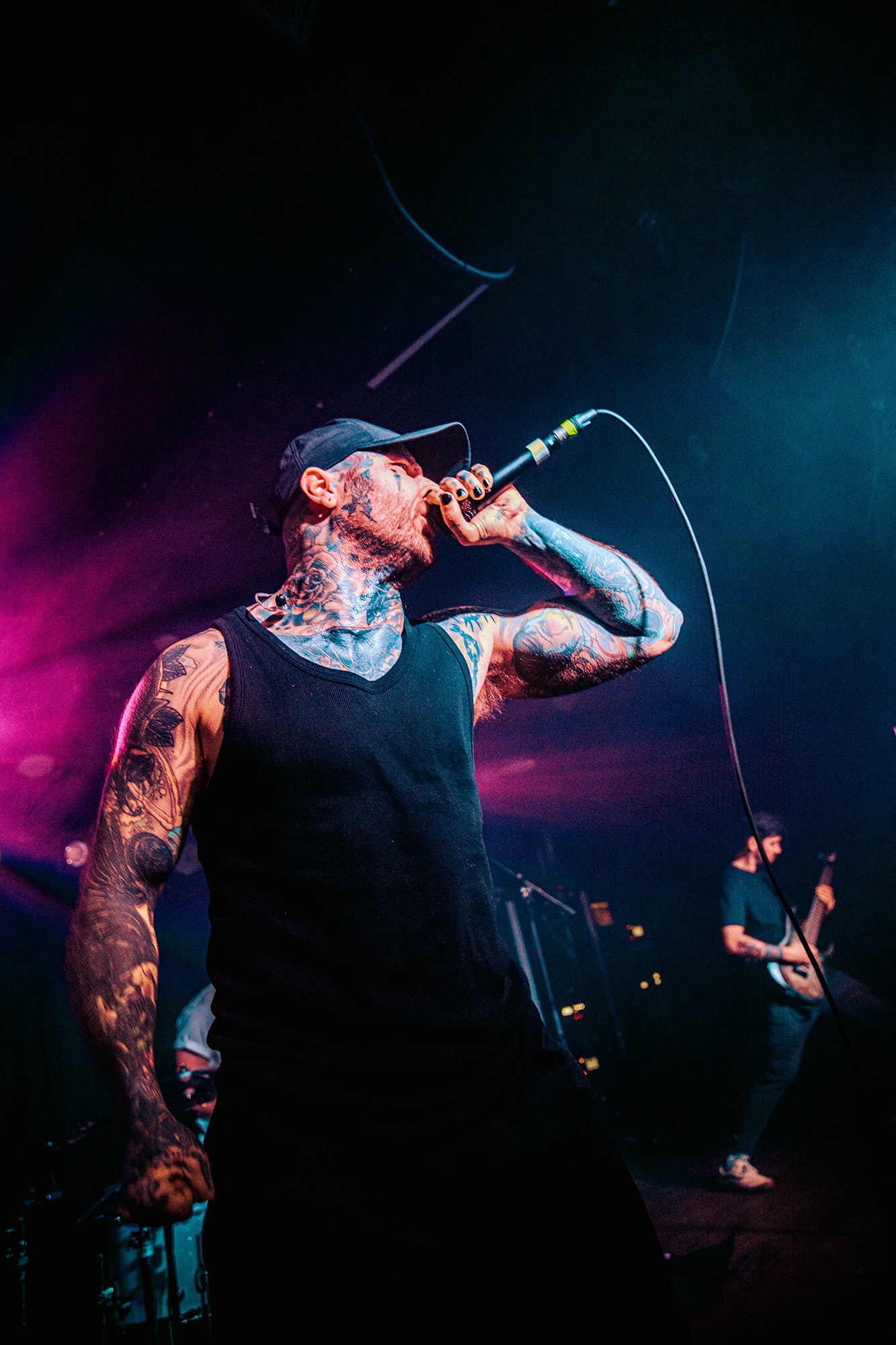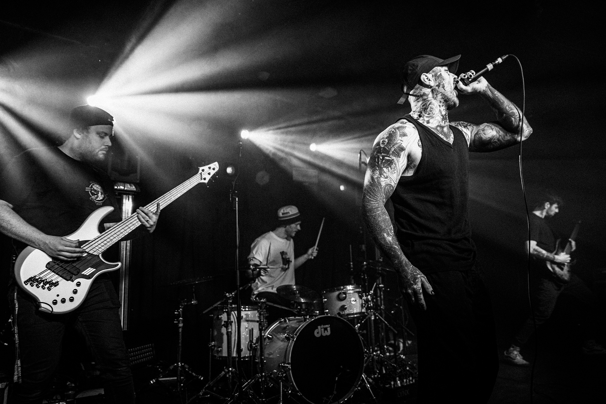 Following up a bill this stacked is no easy feat, and CURRENTS arrive gunning to prove themselves as just headliners, and they begin in pummelling fashion with Living In Tragedy, with incredibly girthy riffs and an array of vocal screams. The power behind the group is unruly, almost unnerving the volume of air they’re able to move as the room erupts for the chorus hook, drinks go flying to the onslaught of drums and chugs. Remember Me encourages the first of many crowd surfers for the night to make their way up after the first chorus. Vocalist Brian Wille reacts to the scene saying “this is gonna be a good one” as the crowd show how up for the night they are with fervent jeers and shouts in the gaps between tracks.