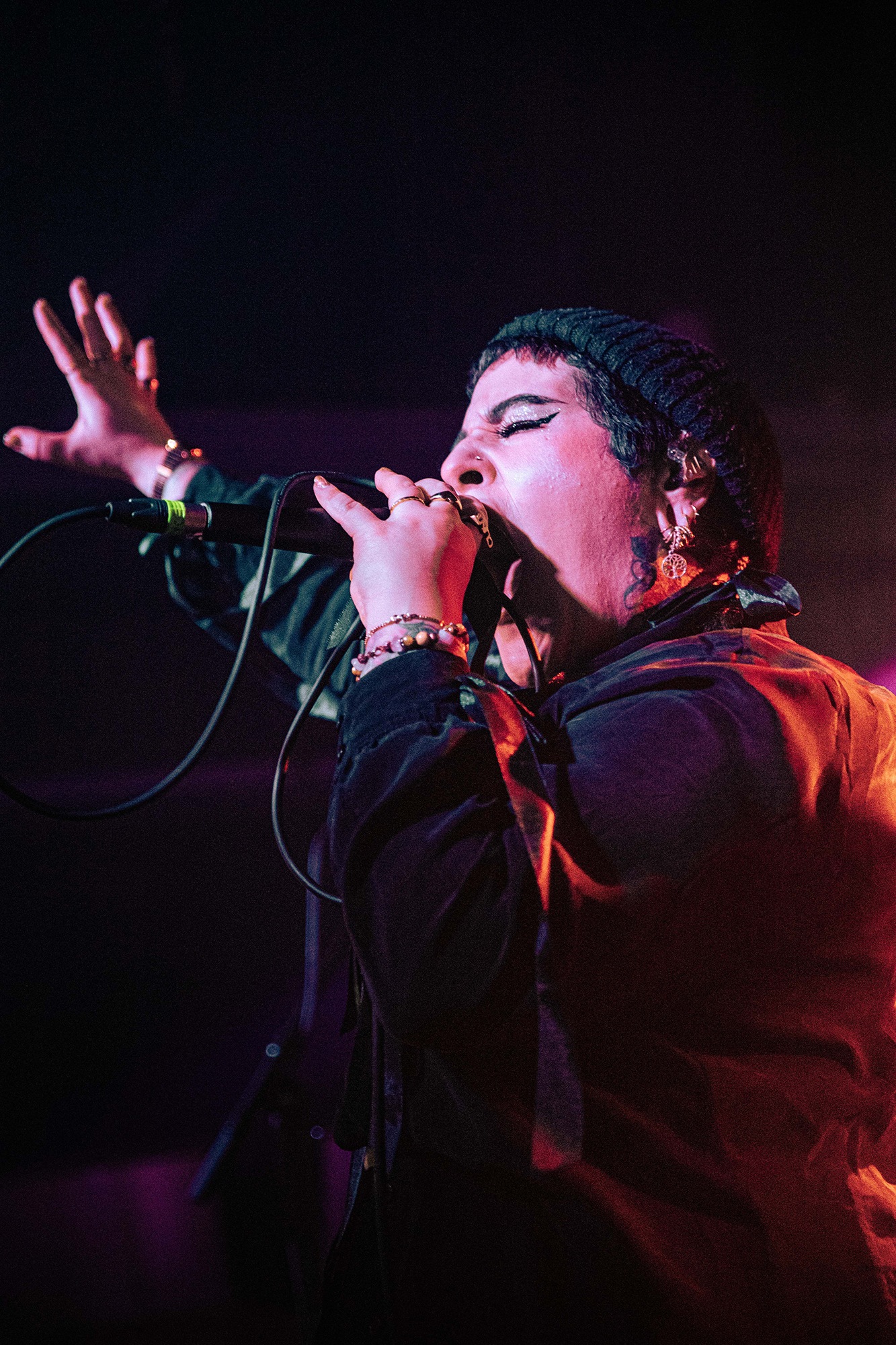 In a first tonal divergence of the night, BEING AS AN OCEAN arrive as somewhat of an outlier with their emotional hardcore much more melodic and atmospheric than what surrounds it. Equally odd for the outfit is the absence of regular vocalist Joel Quartuccio who’s unavailable, with ITHACA vocalist Djamila Azzouz taking the role at short notice having to learn the full set in four days. This however is barely noticeable, and Azzouz fills the gap as though born for the role, delivering the emotive lyrics as though they were her own. Guitarist and clean vocalist Michael McGough luscious vocals fill the gaps between screams with ear worming hooks and impressive delivery. “Joel would say himself it’s not about the people on stage, but the people in the room perpetuating the emotion” McGough confides following emotional singalong The Hardest Part Is Forgetting Those You Swore You Would Never Forget, in which guitarist David Baqi crowd surfs and leads the crowd in full voice from above. BEING AS AN OCEAN have undoubtedly proved that despite their sonic difference, they are more than justifiably here.
