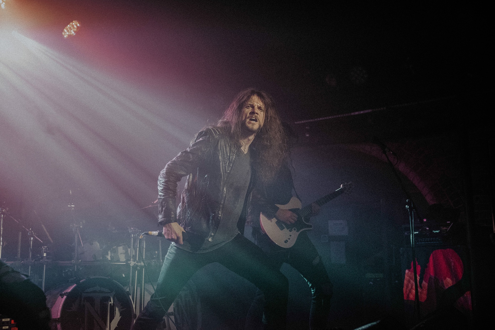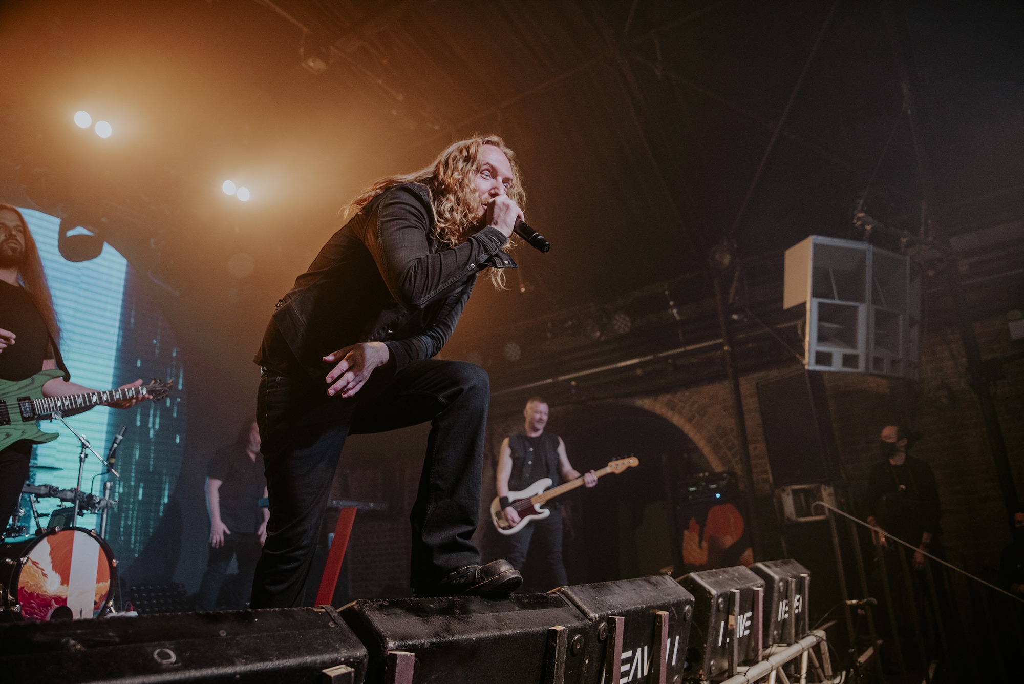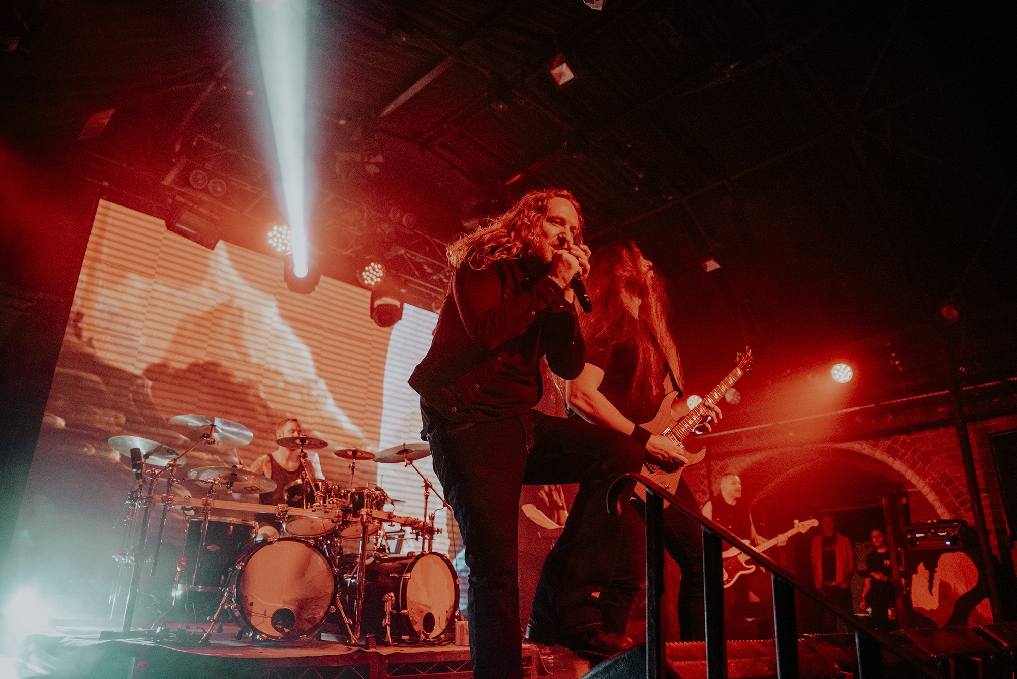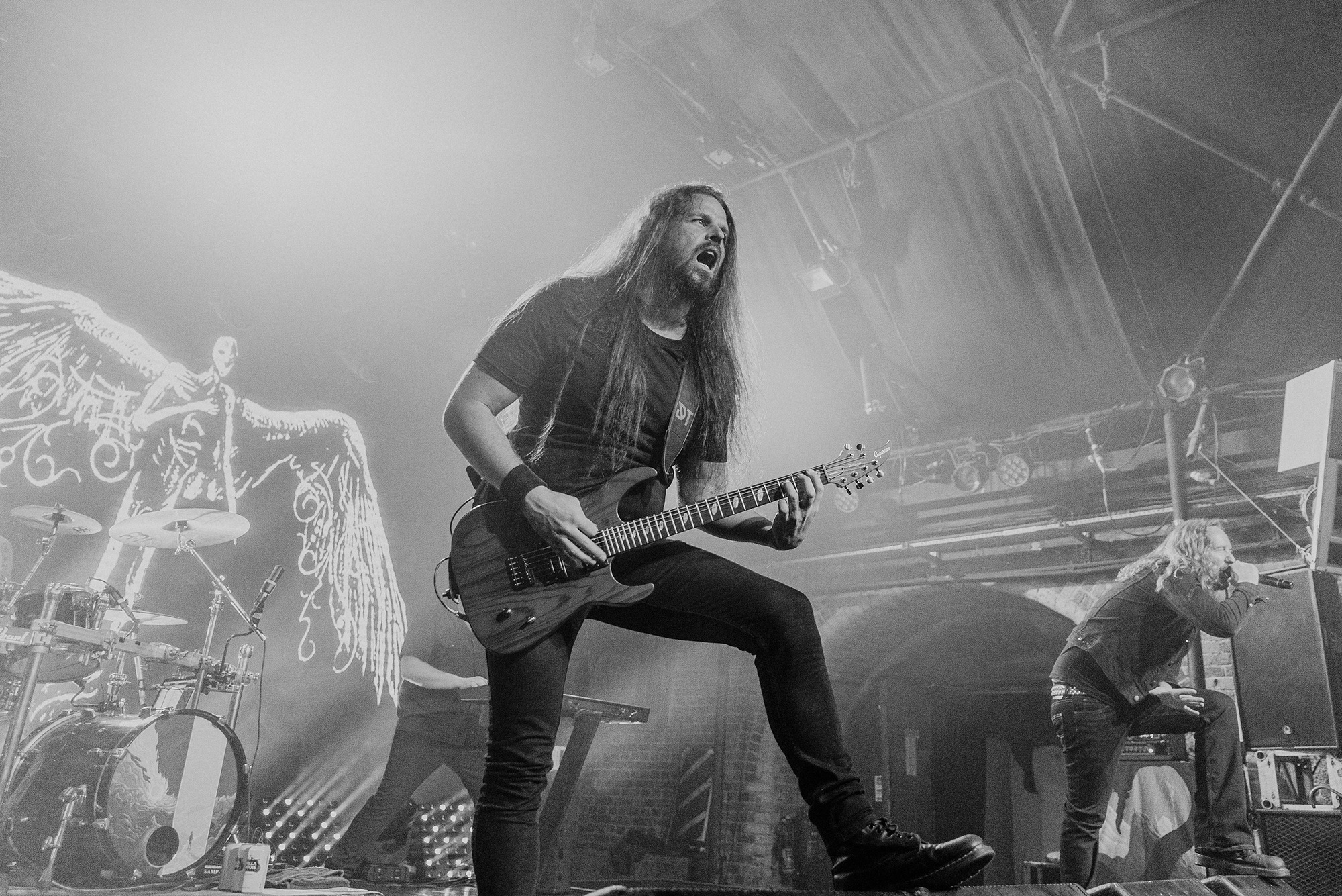 It’s been a rollercoaster of an evening, to say the least, by the time DARK TRANQUILLITY take to the stage. Making full use of the screen behind them for an animated backdrop, it’s a visual feast as well as audio. Despite the sound woes continuing – Heaven simply doesn’t seem suited to extreme music – they mostly overcome it by third song Focus Shift. They open with a storming Phantom Days followed immediately by Transient and Focus Shift which sets the scene for the remainder of the evening as any lulls are filled with roars of adulation from the now-near capacity crowd.