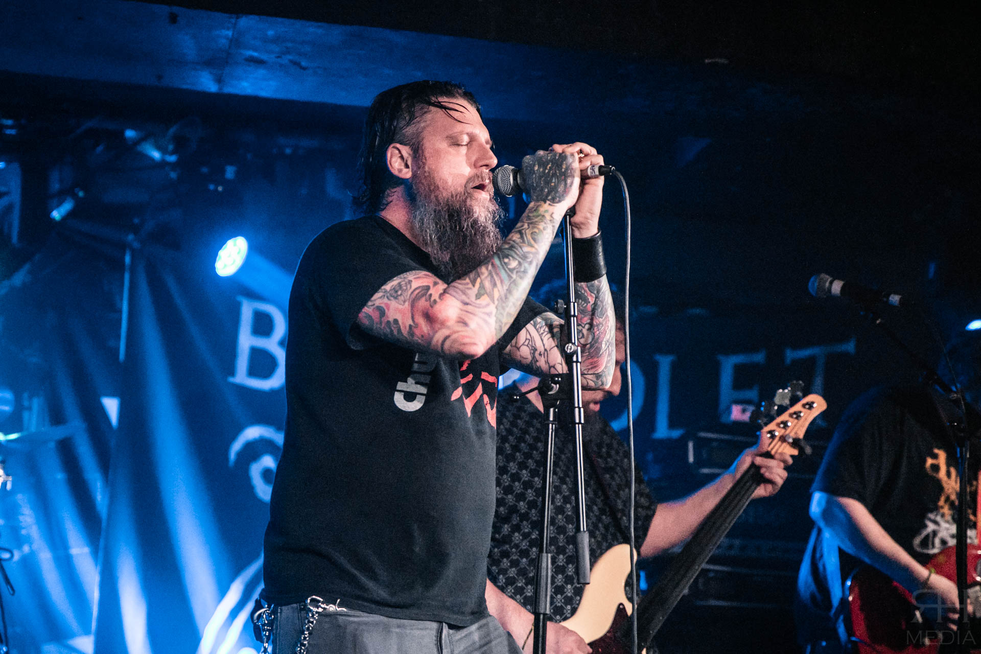 BLOODLET are less impressive and really struggle to make much impact tonight. The metalcore veterans certainly aren’t bad. But their sludge-tinged metalcore tunes just do very little to engage the audience. The band just power through song after song taking very little time to pause between the songs and it all just becomes a little numbing by the end.