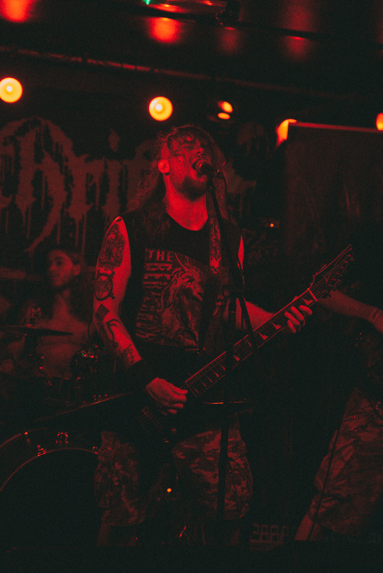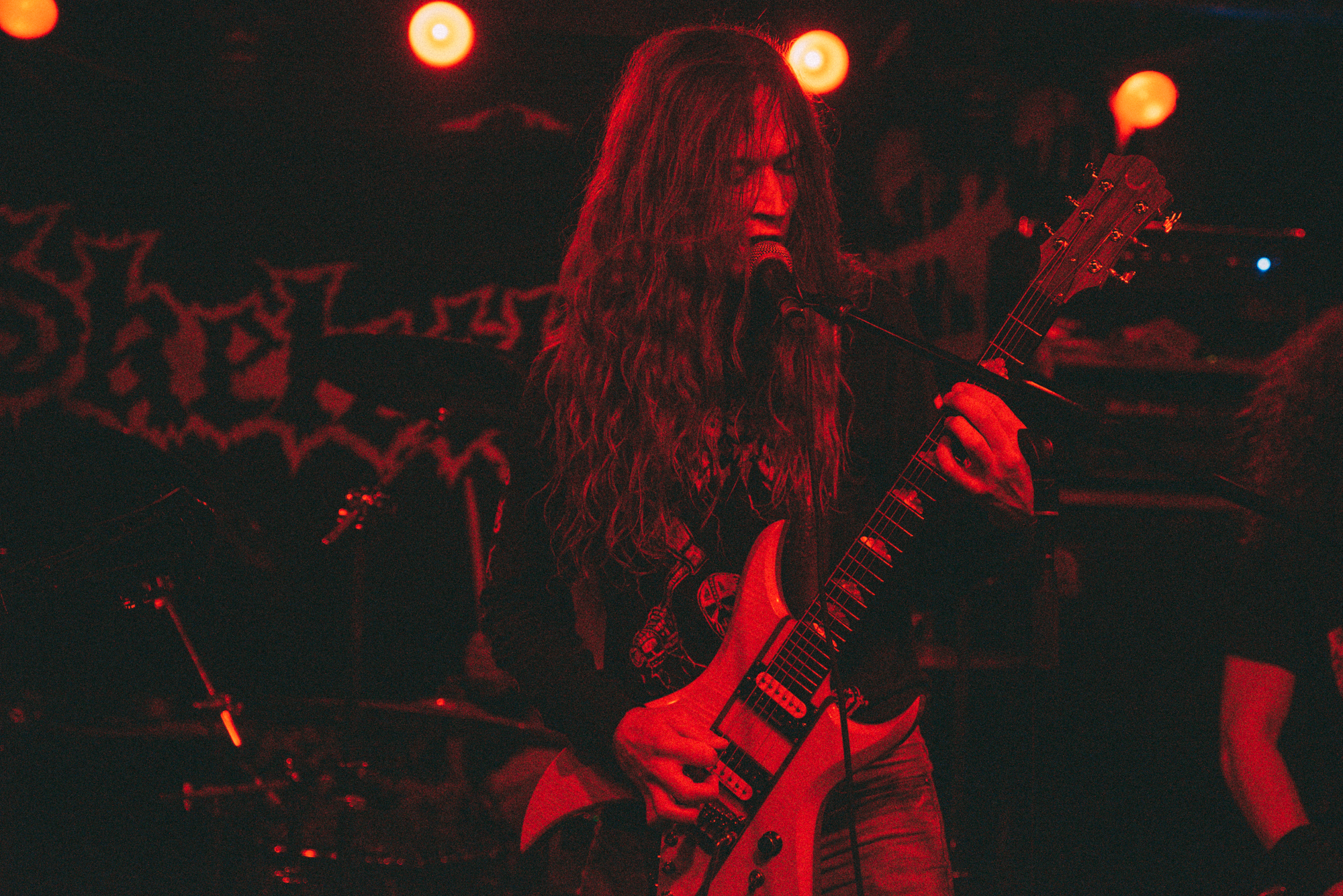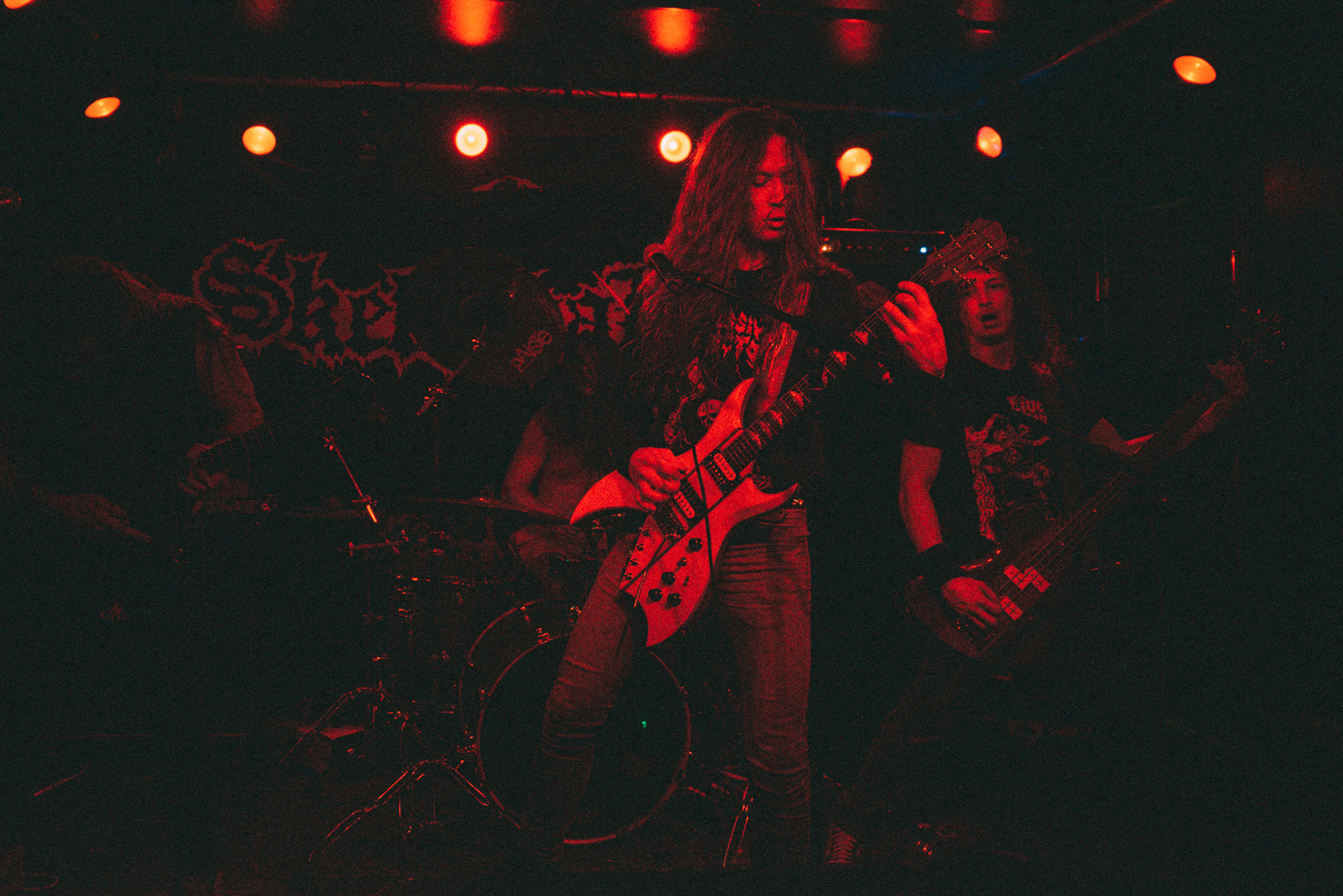 Perhaps the majority of the success formula is built on the effortless allure of the lead singer Tony Heinrich who in between chatting to the locals reigned down the nightmare-inducing vocals on stage. Dynamic with plenty of punch there was a distinctive edge in his vocal style many times resembling a late-Fenriz of DARKTHRONE vocal grit. Unsurprisingly, drummer Stefan Heinz was not lacking skill either, relentlessly pounding his way through the set in a vibe that can only be compared to an aggressive performance from a completely shitfaced Nicke of ENTOMBED.