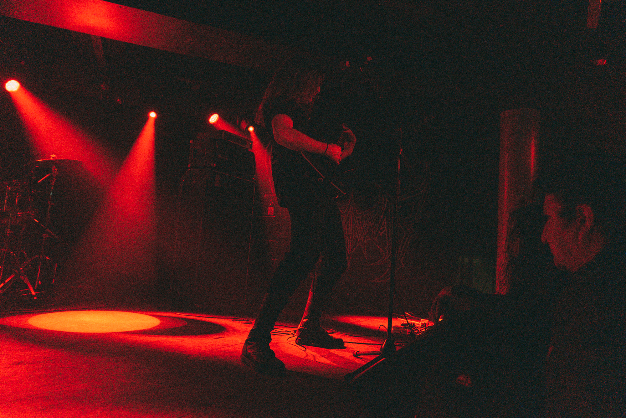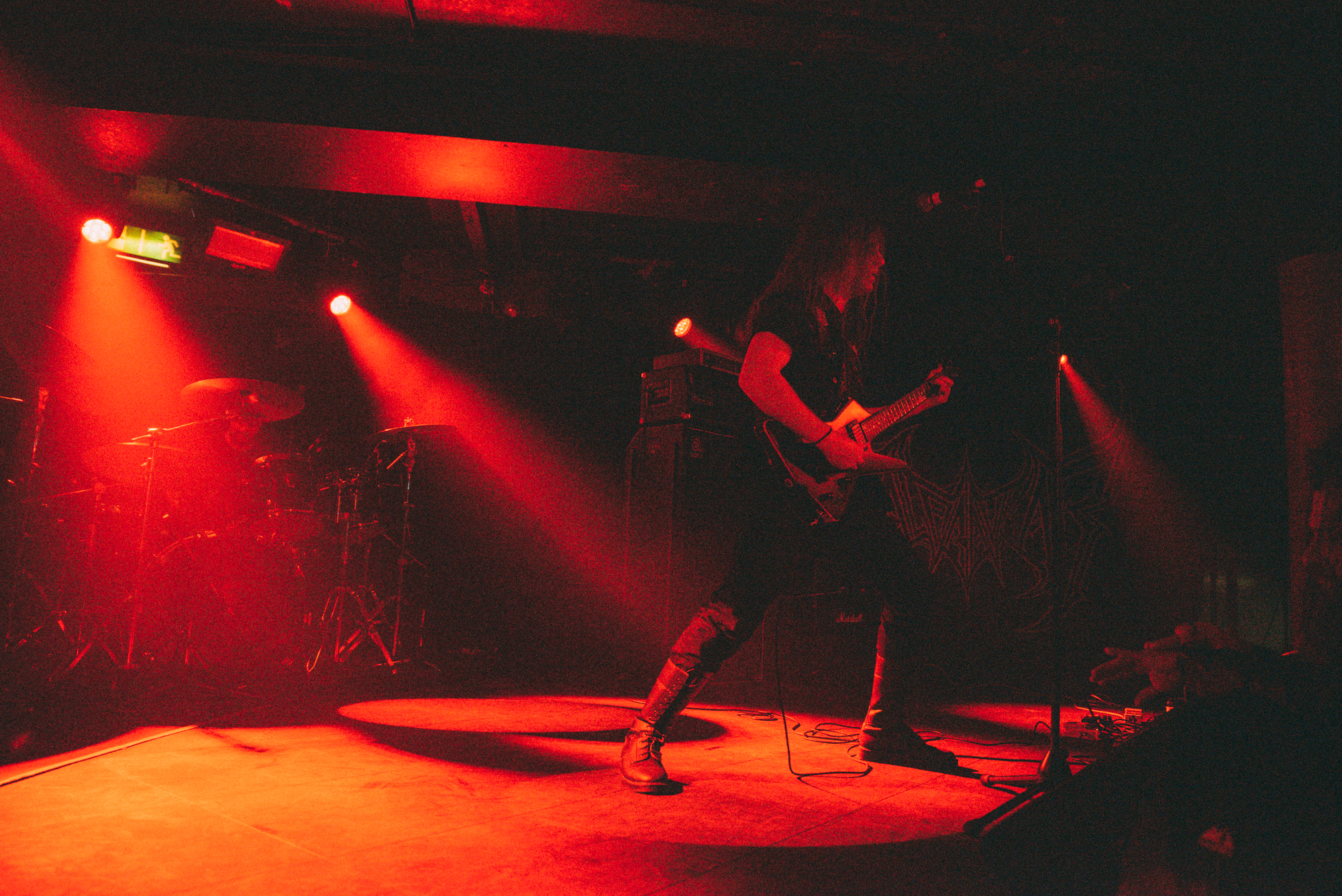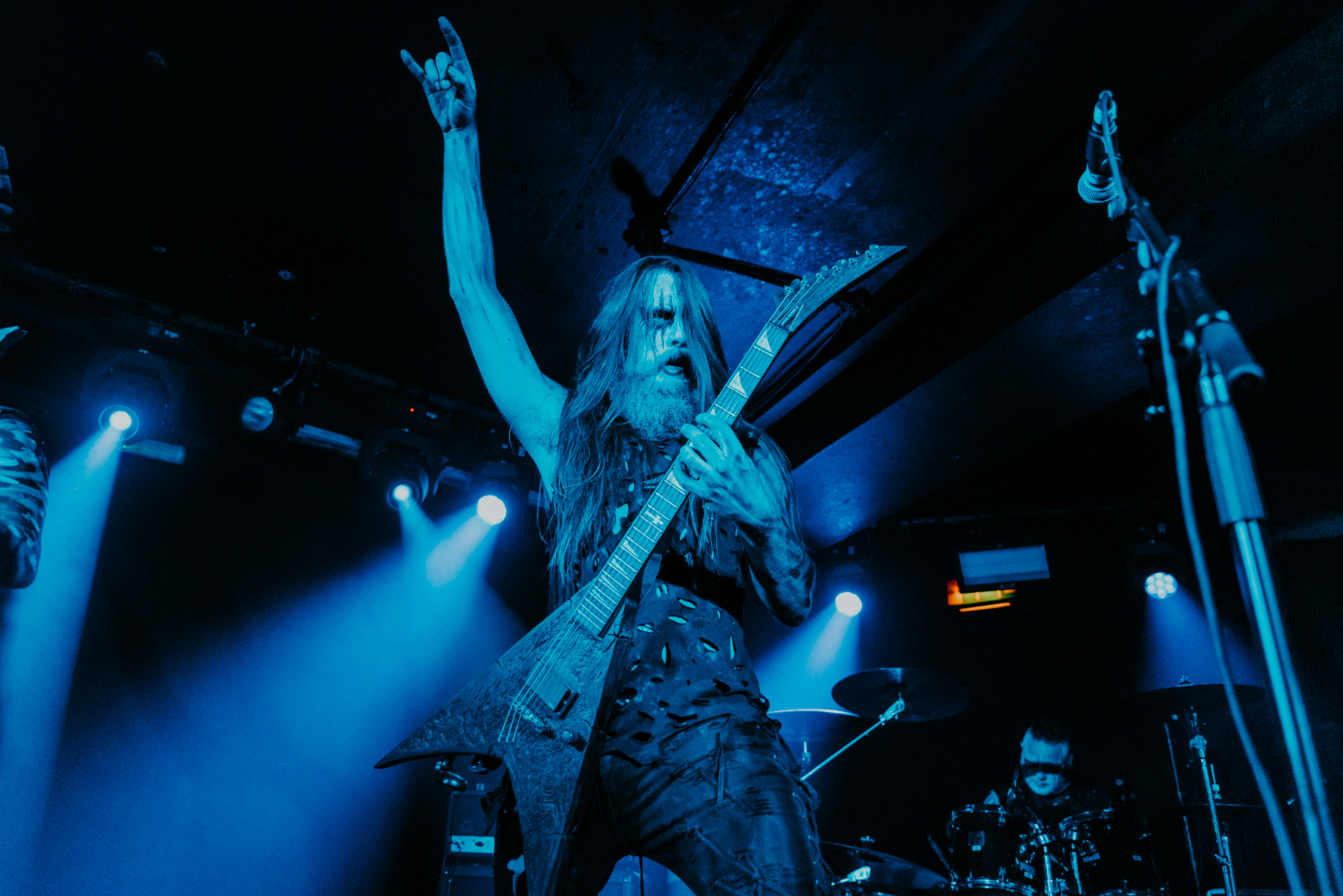 MORK‘s stock in the modern black metal scene has boomed as of late. Having released the excellent Det Svarte Juv earlier this year and received plaudits for a stellar outing at this year’s Damnation Festival, the brainchild of Thomas Eriksen is striking a chord with black metal fans, especially here in the UK. Arriving to a much more packed room at The Underworld, Eriksen and his backing live band justify the good faith with a wicked execution of their brand of Norwegian black metal. Whilst stylistically the band firmly align themselves to their homeland’s infamous second wave, the soundscape MORK forge with their time on stage at The Underworld is simply superb. Crunching riffs from Alex Bruun and Eriksen ebb and flow from mid-tempo headbangers to rapidly dense passages that are utterly vicious whilst Eriksen‘s range of shrieks and growls hold their own against the thick wall of sound. With a bountiful selection of material from this year’s Det Svarte Juv sounding absolutely brilliant alongside several deep cuts from older records, MORK gave a performance of real might, one in which surely showcases why the band are taking the black metal world by storm.