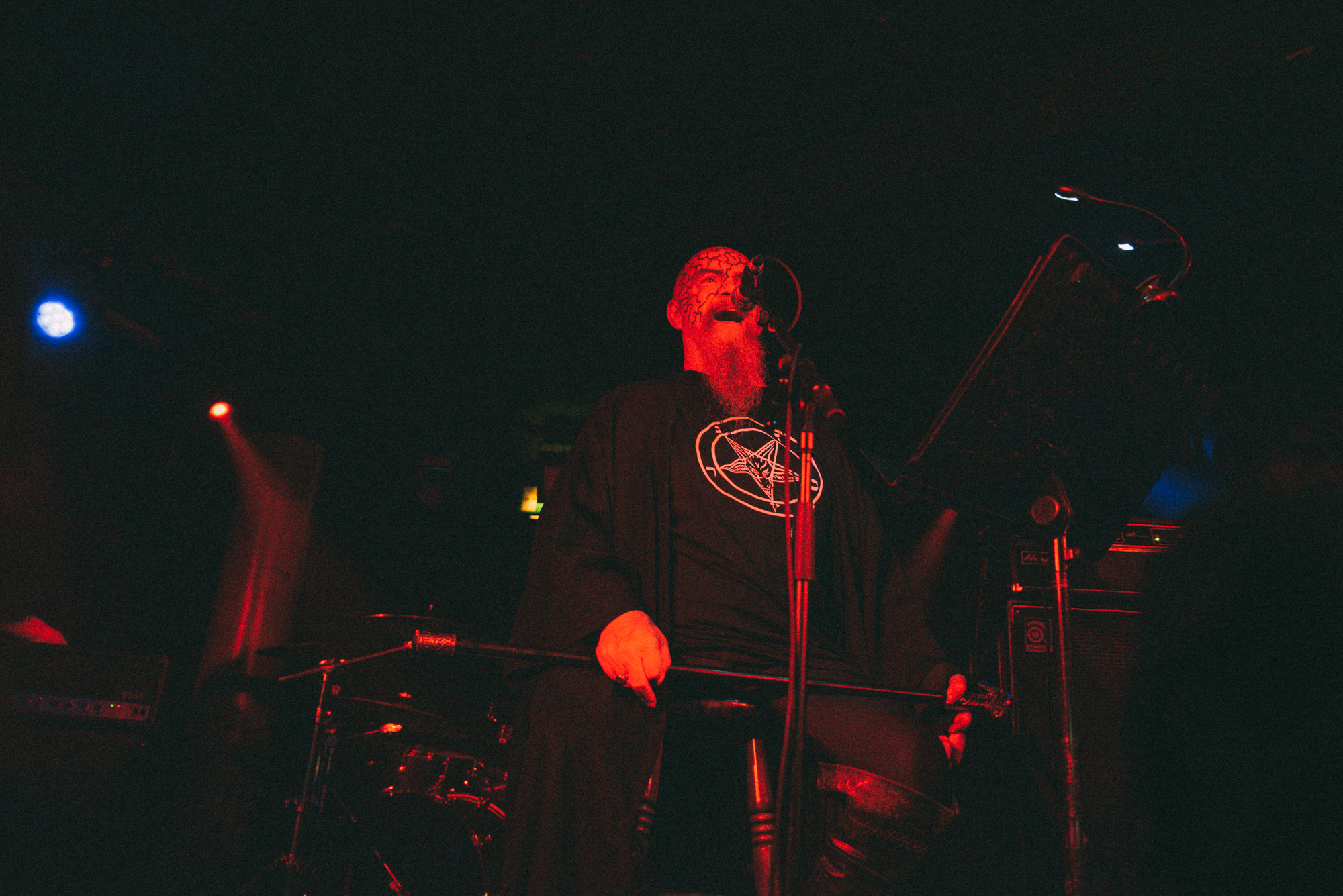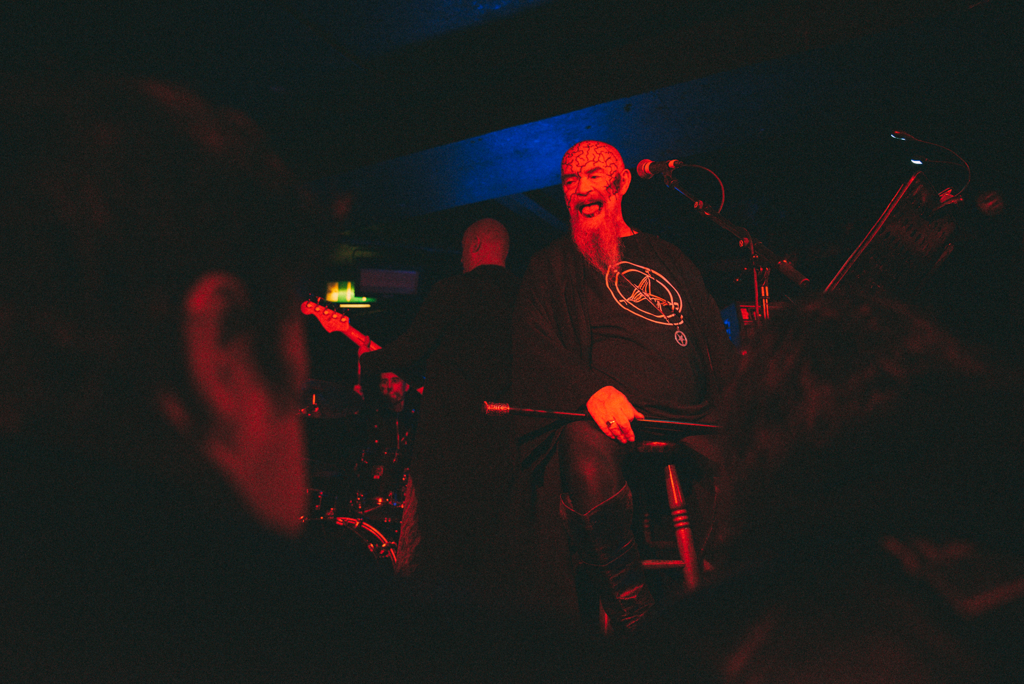 This is largely down to Big Boss himself, equipped with a walking stick, he spends a large portion of the set propped up a chair reading from a lectern resembling a leader of a sermon before gibbering and laughing away to a receptive crowd between songs. It’s hilariously brilliant, with one of the standout moments being where he allows his bandmates to take up vocal duties as he prowls the stage shouting the lyrics to those gathered front and centre, but there’s a feeling that the Satanic themes explored within their music is far from just a gimmick. With ROOT, and especially Big Boss as the founder of the Czech branch of the Church of Satan, that they are the real deal and it’s as intriguing as it is a match made in heaven. As they close their set with a triumphant rendition of 666, many in the audience were left scratching their heads at what they had just witnessed, but one thing is for sure, ROOT have made a lasting impression.