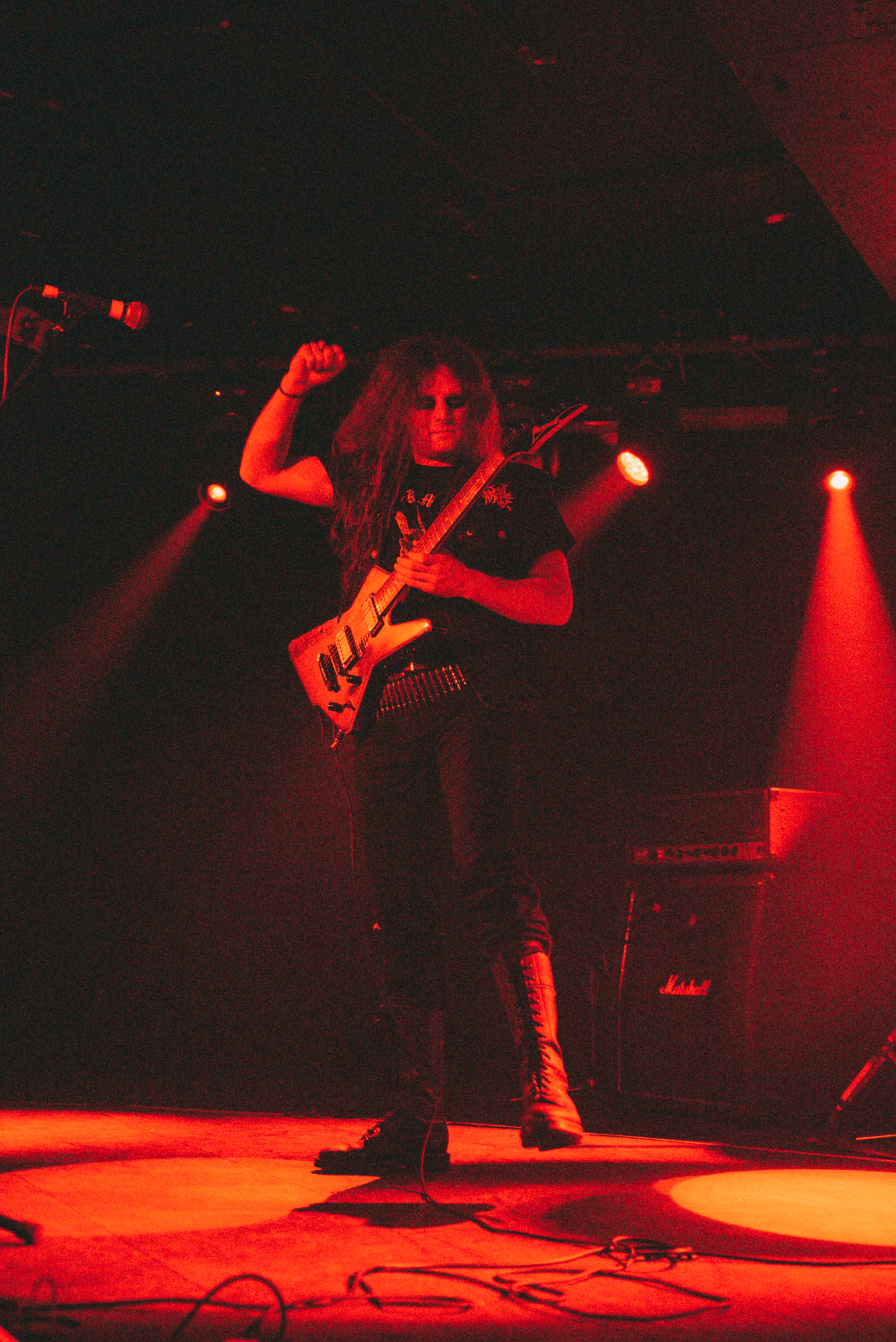 Upon reflection, ROOT‘s placement between DESASTER and ARCHGOAT is a curious one as their lesser intensity has staggered the aural onslaught and as such, it takes some time for DESASTER to restore the ferocity that ARCHGOAT had so effectively built and unleashed. But these German thrashers are no novices, tonight marks a celebration of over three decades of their brand of blackened thrash and their experience is apparent from the get-go.