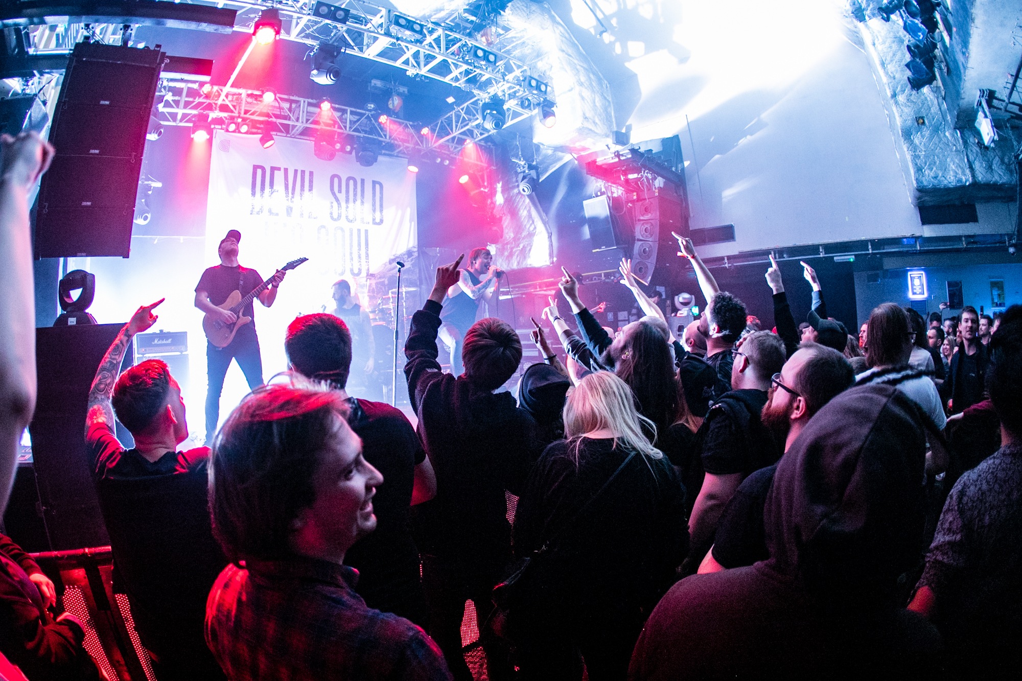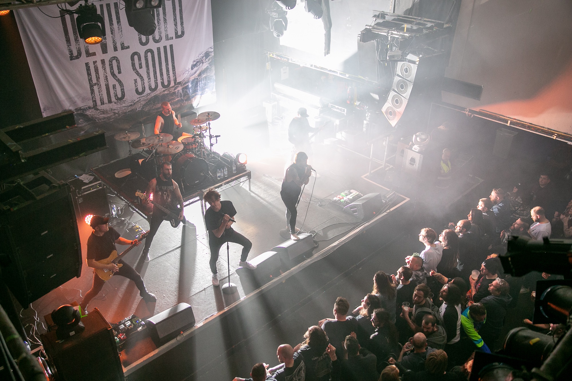 “Do you think they’ll sell it out tonight?” a concertgoer muses opposite the O2 Academy Islington at 5:55pm on a Saturday evening. “Looking at the queue, I wouldn’t say so” laughed his friend, as only a handful of punters waited for 6pm doors. It’s the first headline show in London in five years for DEVIL SOLD HIS SOUL. It’s their biggest, too. So, can they handle the heat of the big smoke – whether it’s tinned sardines or empty fishtanks in the venue?