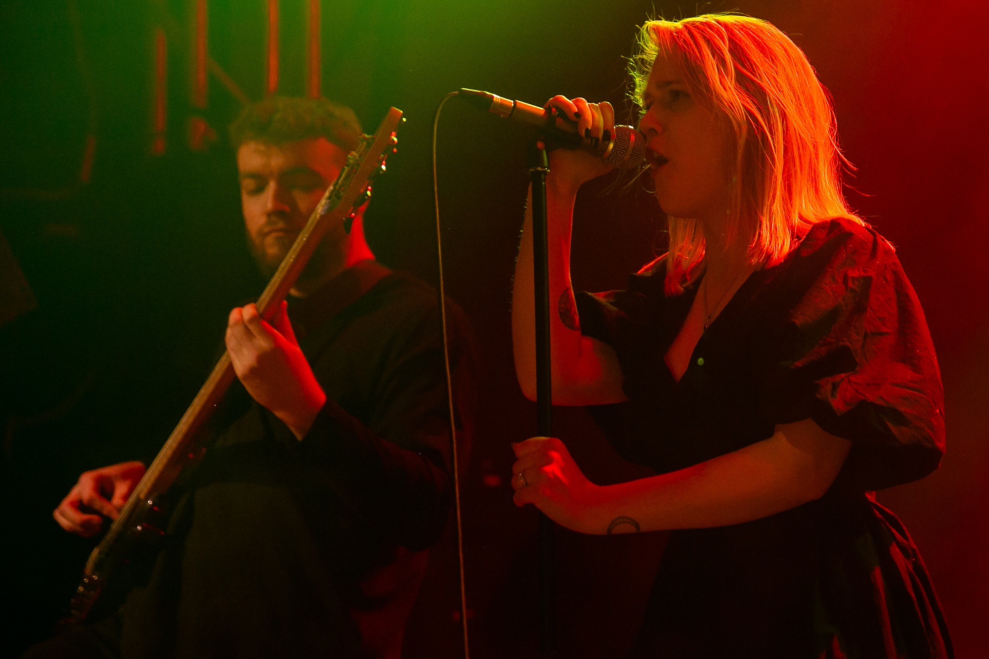 Shuffled in as last minute replacements for FRONTIERER, FORLORN feel like they’ve always been part of the bill. Drifting on stage like a gothic edition of Ari Aster’s Midsommar – ethereal vocalist Megan Elliott adorned with flower crown – they waste no time in diving into their set.